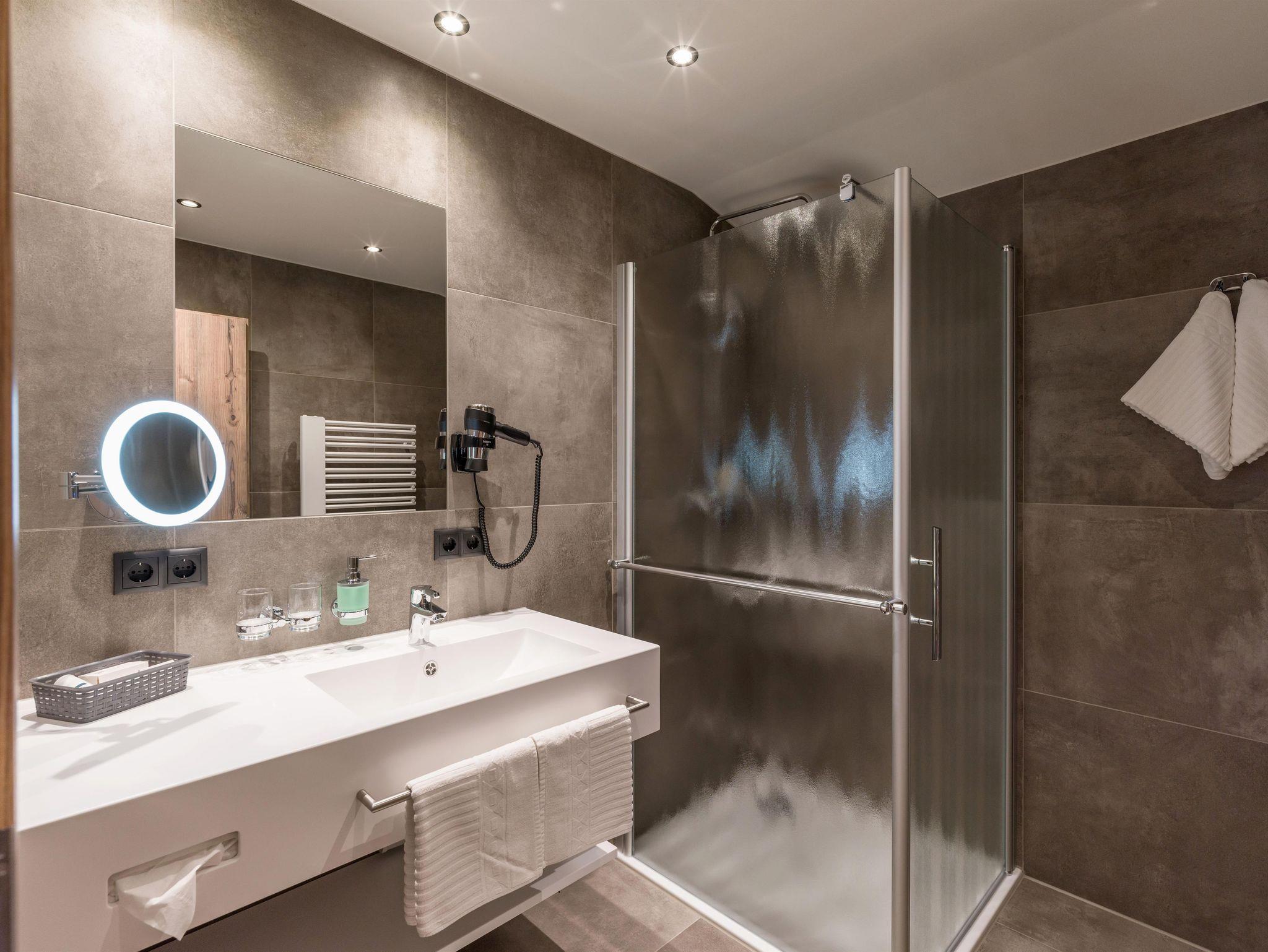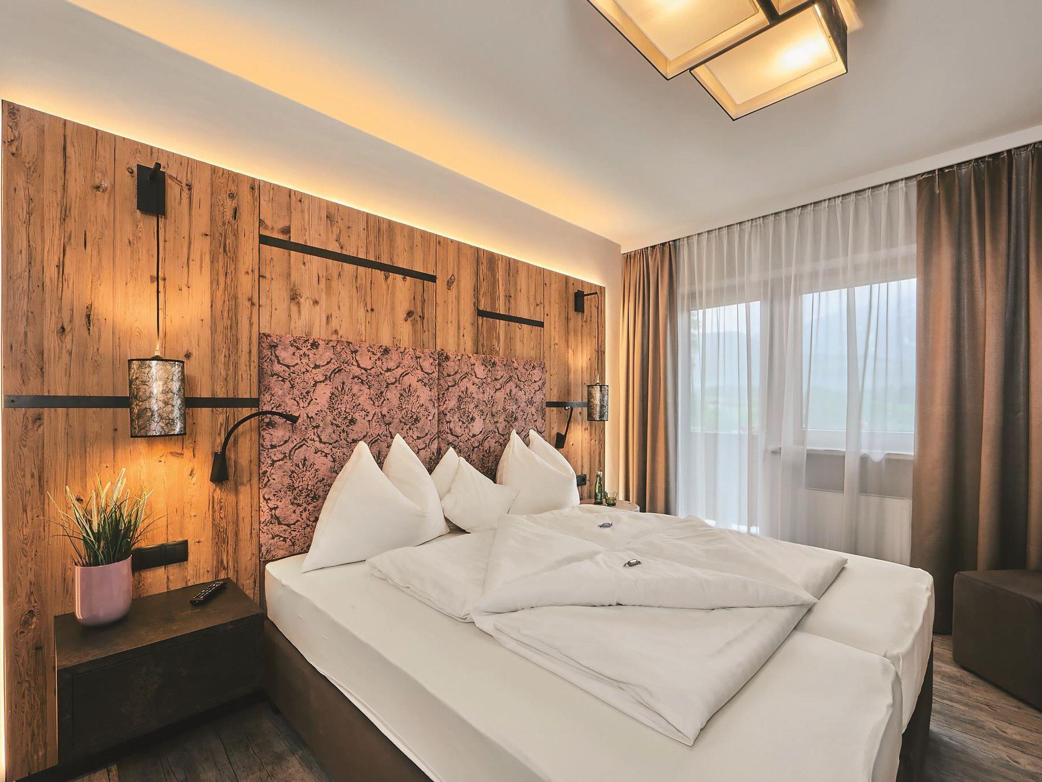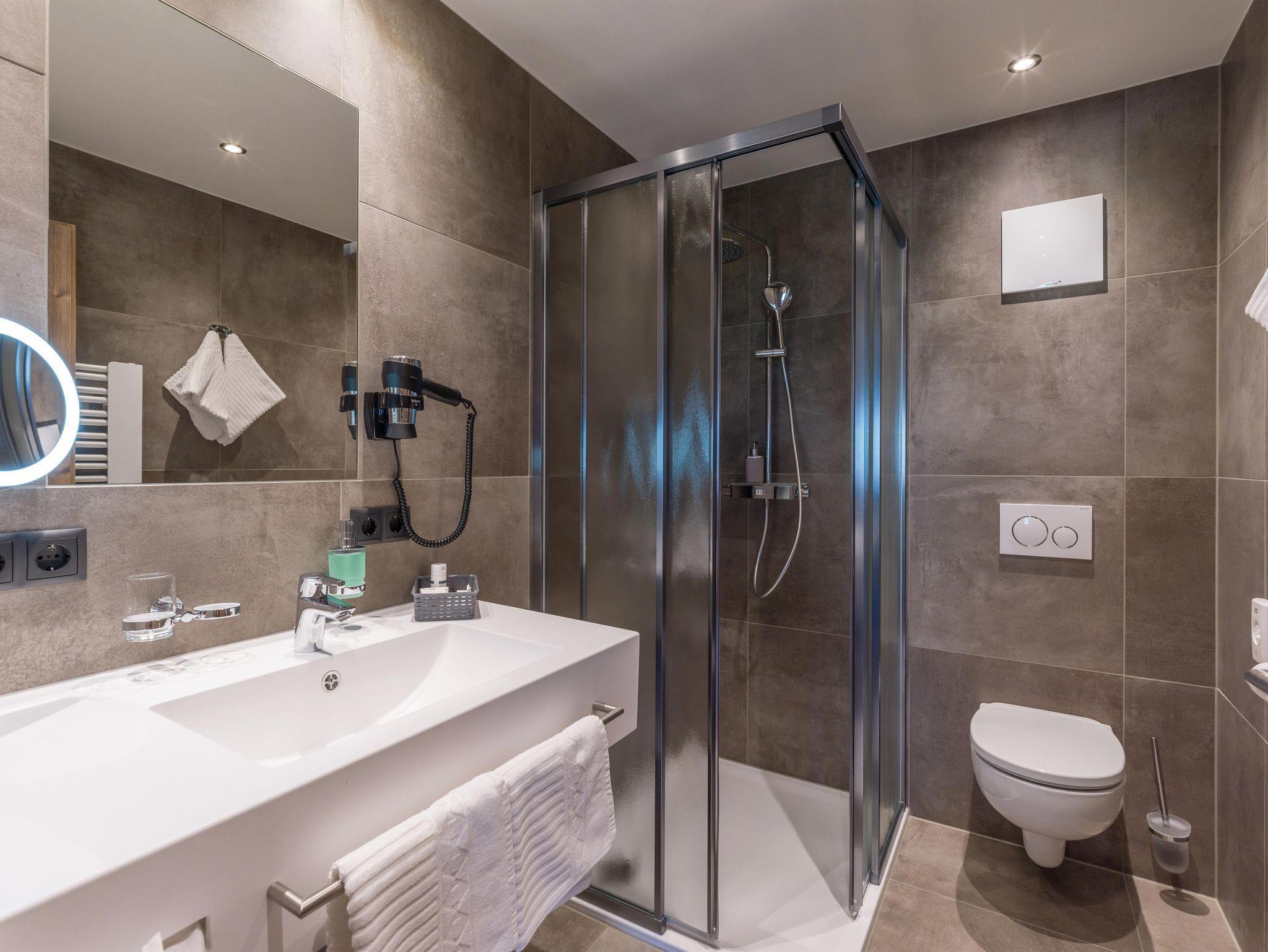 Unser Doppelzimmer Bergblick (ca. 22m²) ist komfortabel ausgestattet mit DU/WC, Föhn, Safe,