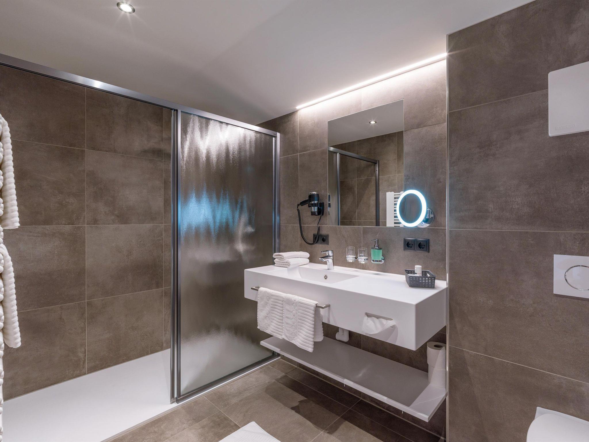 Aparthotel Bergland, Doppelzimmer Bergblick mit Dusche, WC, Balkon