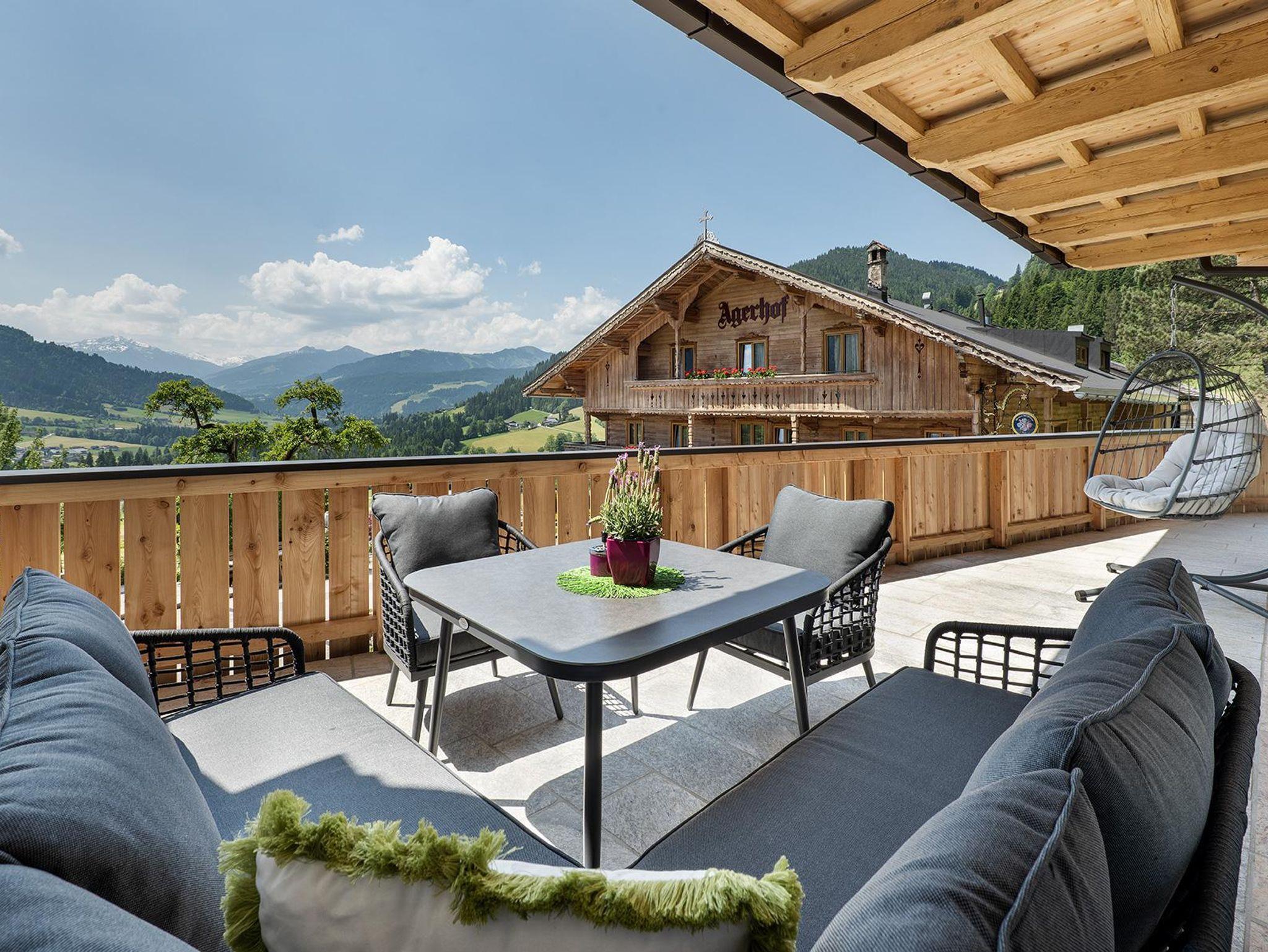 Von Ihrem eigenen Sonnenbalkon aus haben Sie einen traumhaften Blick auf Tirols Aussichtsberg - die Hohe Salve und den bezaubernden Schlösslgarten. Hier können Sie entspannen und die Seele baumeln lassen, während Sie die Schönheit der Kitzbüheler Alpen in vollen Zügen genießen. Wir laden Sie herzlich ein, sich zurückzulehnen und diese atemberaubende Aussicht auf sich wirken zu lassen.