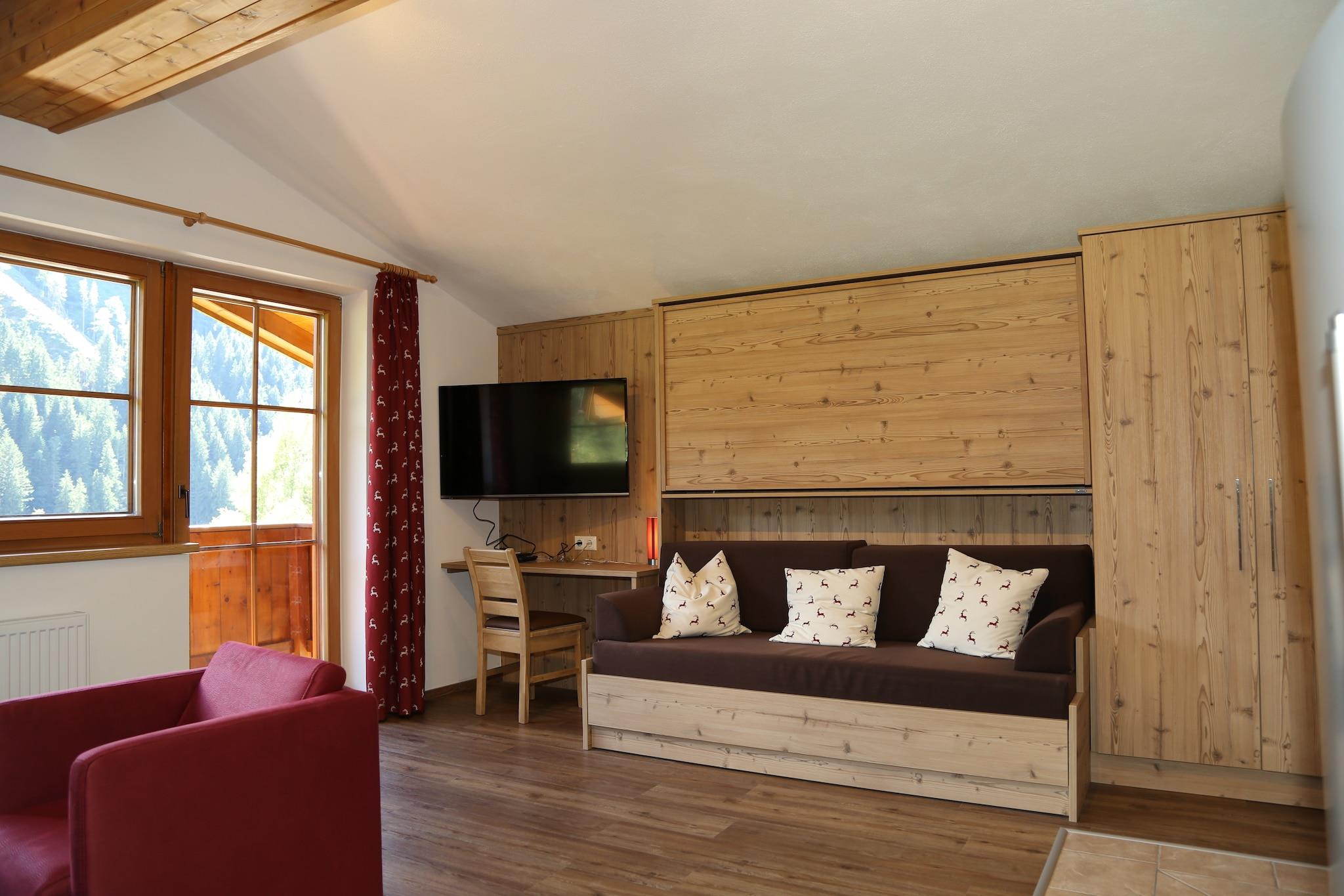 Denne vakre hytta, fullstendig renovert i 2016, ligger på den solfylte siden av den koselige landsbyen Viehhofen, ved siden av den berømte Saalbach Hinterglemmn. I hytta er det mange separate leiligheter, hver smakfullt og luksuriøst innredet. Leiligheten din ligger i første etasje. Den store stuen med åpen kjøkkenløsning, som er meget smakfullt og luksuriøst innredet, har en sittegruppe og spisestue og har direkte tilgang til den solfylte balkongen hvorfra du vil ha en fantastisk utsikt over de omkringliggende fjellene. På grunn av en genialt system, den vakre sofaen i stuen kan forvandles i en stor seng for tre. Det åpen kjøkkenet er utstyrt med alt moderne utstyr. Videre er det 2 bad og 2 soverom med svært komfortable senger. Fordi leiligheten din ligger litt høyere enn landsbyen, vil du nyte mye privatliv og en fantastisk utsikt. Beliggenheten er ideell for en vinter eller sommerferie. Skibussholdeplassen ligger like under den (litt skrånende) vei slik at du vil være i det vakre skistedet Saalbach Hinterglemm på bare noen få minutter. Om sommeren er det mange mulige fritidsfasiliteter, for eksempel terrengsykling, fotturer eller en sann anbefaling: rafting. Zell am See innsjøen er veldig nær og vil gi deg en hyggelig forfriskning på varme dager. Ny utvikling! Fra vinteren 2019/2020 vil det bli en heis fra Viehhofen direkte til skianlegget av Zell am See. Dette vil bety at Viehhofen vil være både forbundet med skianlegget Zell am See og med Saalbach-Hinterglemm gjennom en stigning fra skiområdet (heiser i skiområdet Saalbach Hinterglemm kan lett nås med gratis skibuss). Forventningen er at det vil være skibusser til begge skiområdene.
