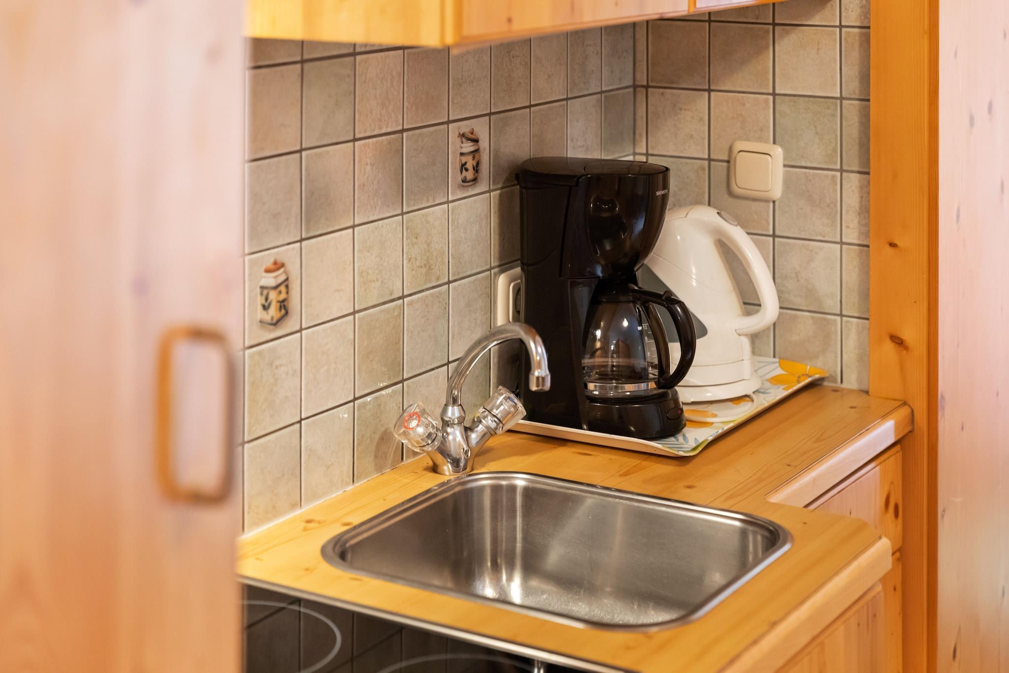 Åpent kjøkke(komfyr(komfyr med 2 kokeplater), kaffetrakter(kaffetrakter), mikrobølgeovn, kjøleskap), Stue/soverom(dobbeltseng, TV(kabel)), soveværelse(dobbeltseng), bad(dusj, håndvask, toalett, Hårtørker), oppbevaring av ski, badekar eller dusj, balkon, hage, sykkelparkering, grill, parkering