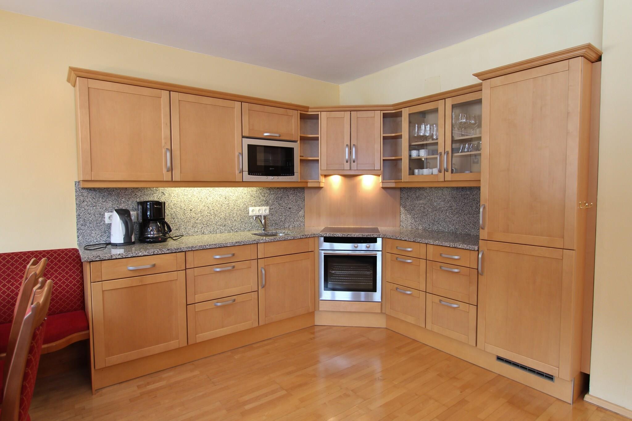 Denne hytta for maksimalt 14 personer er en del av et feriekompleks som ligger rett bak sentrum av Saalbach-Hinterglemm, på solsiden av Glemmtal og i nærheten av Skicircus Saalbach Hinterglemm Leogang Fieberbrunn skiområde. Beliggenheten i åssiden tilbyr en fantastisk utsikt over det omkringliggende fjellandskapet. Feriekomplekset består av 3 frittliggende hytter, som er forbundet med hverandre via en sentral trapp. Denne hytta består av 2 leiligheter kombinert, som begge har en stor stue med sovesofa, et åpent fullt utstyrt kjøkken, 2 soverom (ett med en ekstra stabelbar seng), 2 romslige bad og en vaskemaskin. Det er reservert parkeringsplasser for deg i garasjen. I feriekomplekset er det skibod med skistøvelvarmer (delt med andre gjester) samt 2 ladestasjoner for elbiler. Skibakken for nybegynnere med heis ligger kun 300 meter fra ferieanlegget. Den gratis skibussen starter også derfra, så på få minutter kan du være i det fantastiske Skicircus Saalbach-Hinterglemm - Leogang - Fieberbrunn skiområde med 270 kilometer med bakker og 70 moderne taubaner og heiser. Om sommeren er det mange muligheter for fotturer og terrengsykling. Utforløypa i verdenscuplandsbyen Leogang er bokstavelig talt rundt hjørnet. Eventyrbassenget Käpt"n Hook i Saalbach-Hinterglemm med et vannareal på 1000 m2 med vannsklie og villvannskanal byr på mye badegøy om sommeren, og du kan også være ved Zellsjøen i Zell am See på bare 20 minutter . Det er nok av butikker for dine daglige behov i byen eller i nabolandet Zell am See