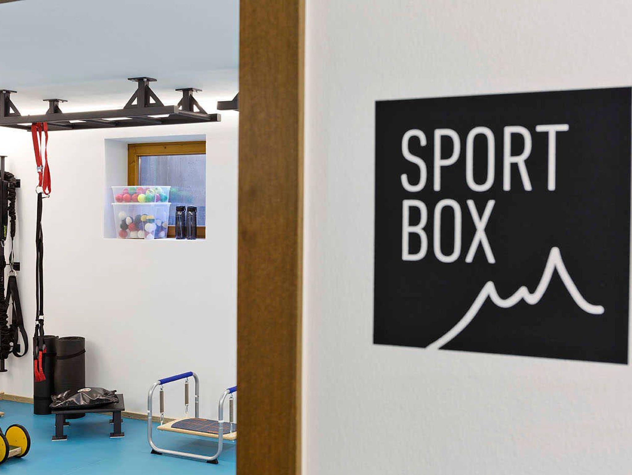 • „Sport Box“: Fitnessraum im Untergeschoß mit Trainingsgeräten für Functional Training oder Life Kinetik, der von allen Gästen genützt werden kann.