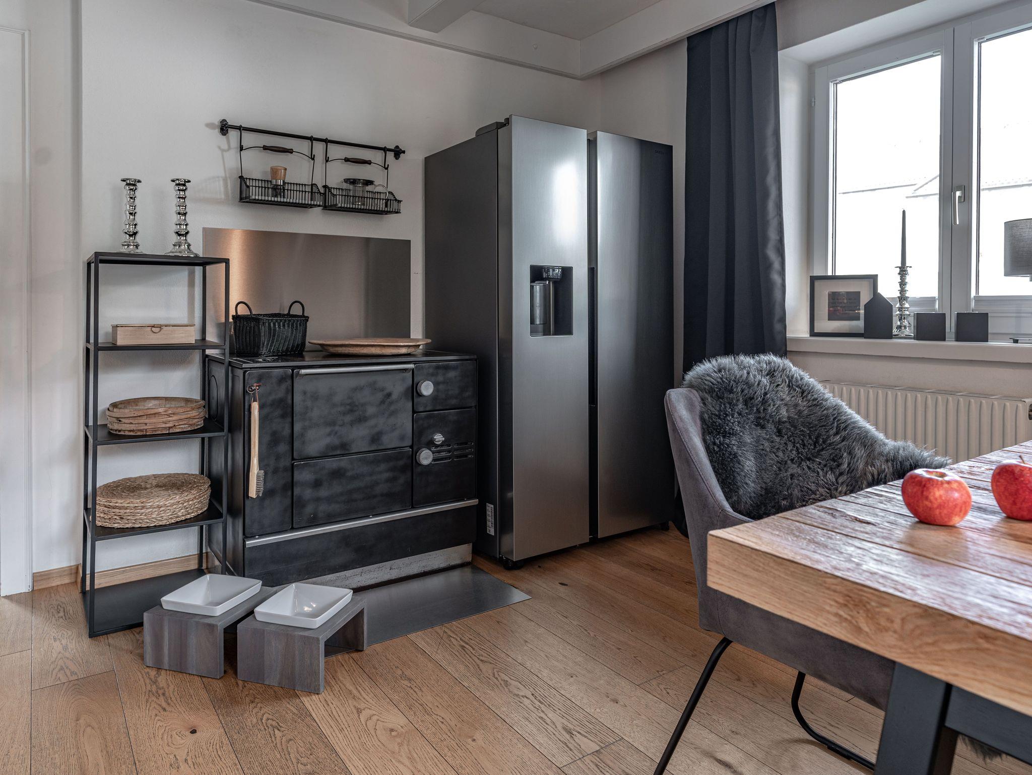 • Voll ausgestattete Küche mit Esstisch, Geschirrspüler, Geschirrtücher, E-Herd, Kühl - und Gefrierschrank, Nespresso-Kaffeemaschine (inkl. einer Packung Nespresso-Kapseln), Filterkaffeemaschine, Toaster, Wasserkocher, Backrohr