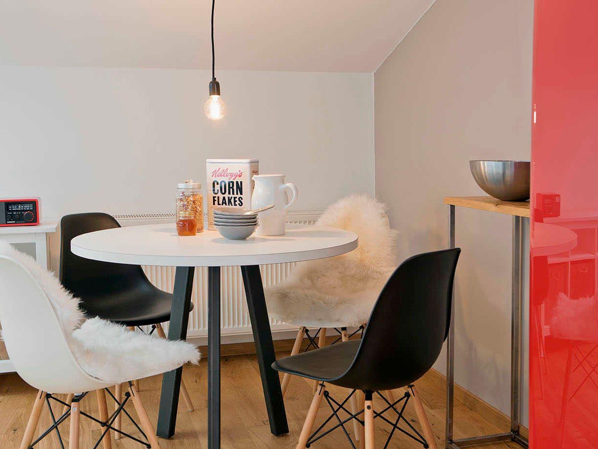 Das Apartment # 5 ist unser kuscheliges kleines „Refugium“. Es ist ideal für den romantischen Urlaub zu zweit. Auf Wunsch kann die Couch im Wohnzimmer aber auch für ein bis zwei Kleinkind(er) ausgezogen werden. Die Dachschrägen und -fenster verleihen der charmanten Wohnung einen besonders heimeligen Charakter und vom Südbalkon genießt du einen herrlichen Blick auf die umliegenden Berge.