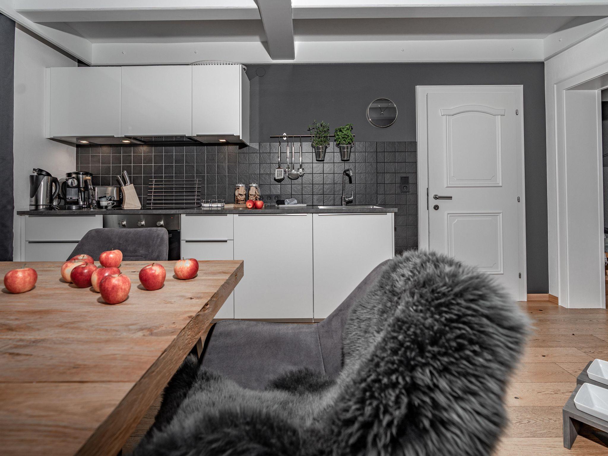 • voll ausgestattete Küche mit Geschirrspüler, E-Herd, Backofen, Toaster, Nespresso-Kaffeemaschine