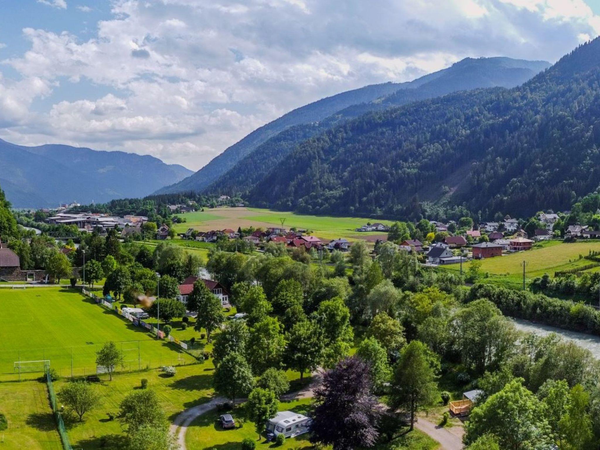 Sachsenburg 12 km from Spittal an der Drau: Small, cosy resort "Draucamping". On the outskirts, in a quiet position, directly by the river, in a cul-de-sac. For shared use: natural state property. Tennis (1 x clay court), children's playground. In the complex: reception, lounge, WiFi, table tennis, playroom, table football, storage room for bicycles, washing machine, tumble dryer (for shared use, extra), bicycle rental. Available: canoe, boat (extra). Bread roll service. Central parking spaces. Grocery, restaurant, café 400 m, bus stop "Mollbrücke Sachsenburg" 2 km, railway station "Sachsenburg Markt" 750 m, outdoor swimming pool 1.3 km. Cycle lane 100 m, cable car 13 km, mountain railway 10 km, skisport facilities 13 km. Nearby attractions: Heiliggrabkapelle 600 m, Burg Sommeregg 17 km, Raggaschlucht 27 km. Well-known ski regions can easily be reached: Goldegg 13 km. Well-known lakes can easily be reached: Millstättersee 14 km, Weissensee 30 km. Hiking paths: Mölltaler Alpen. Please note: suitable for families, baby equipment on request (included). The photograph shows a typical example. Guests enjoy free entry to the "Walderlebnisbad" Sachsenburg, which is only a few minutes' walk away. Free use of the fenced training area of the local football club. Depending on the weather, guided hikes or mountain bike tours are offered several times a week. Registration on site required.