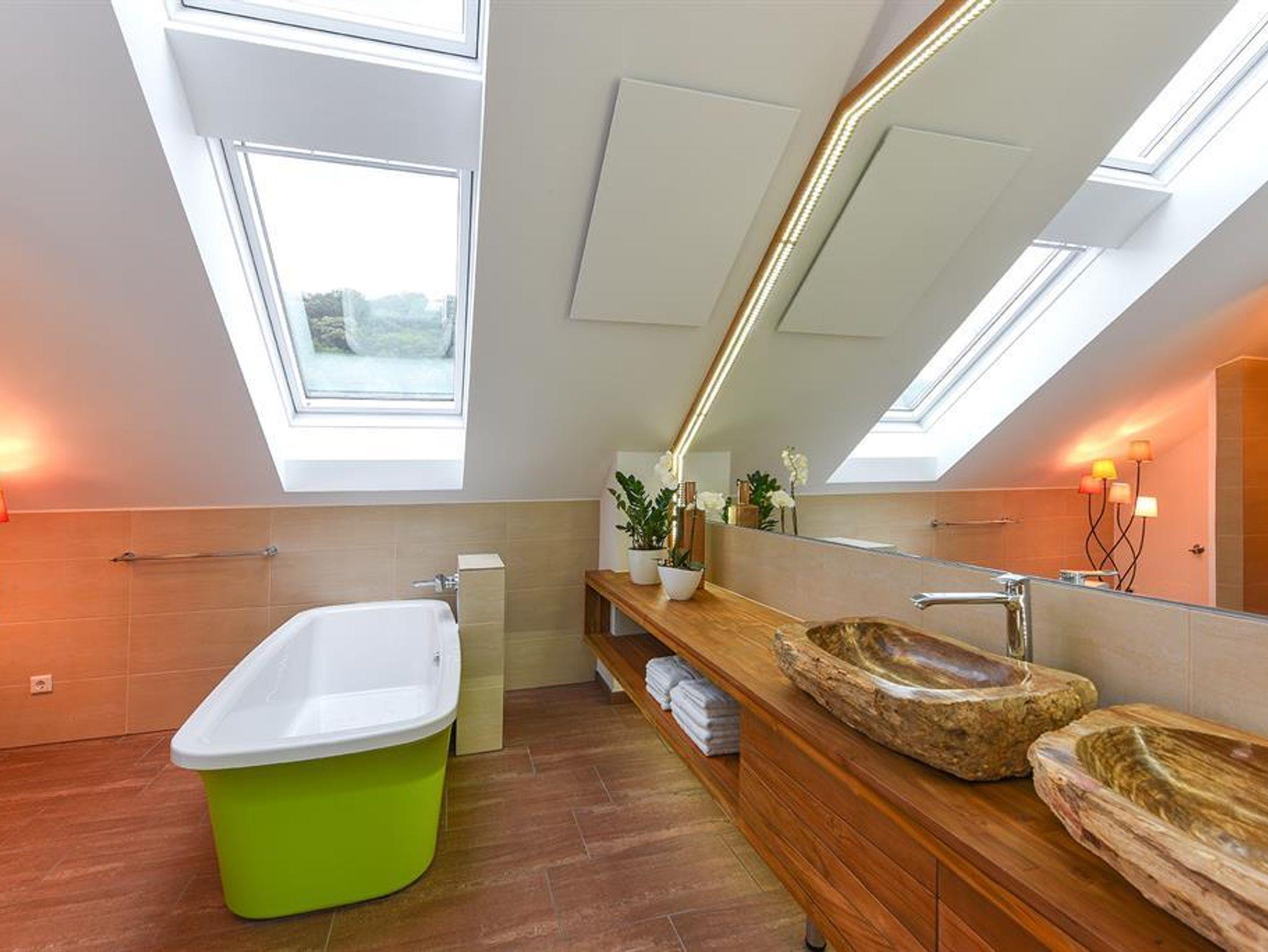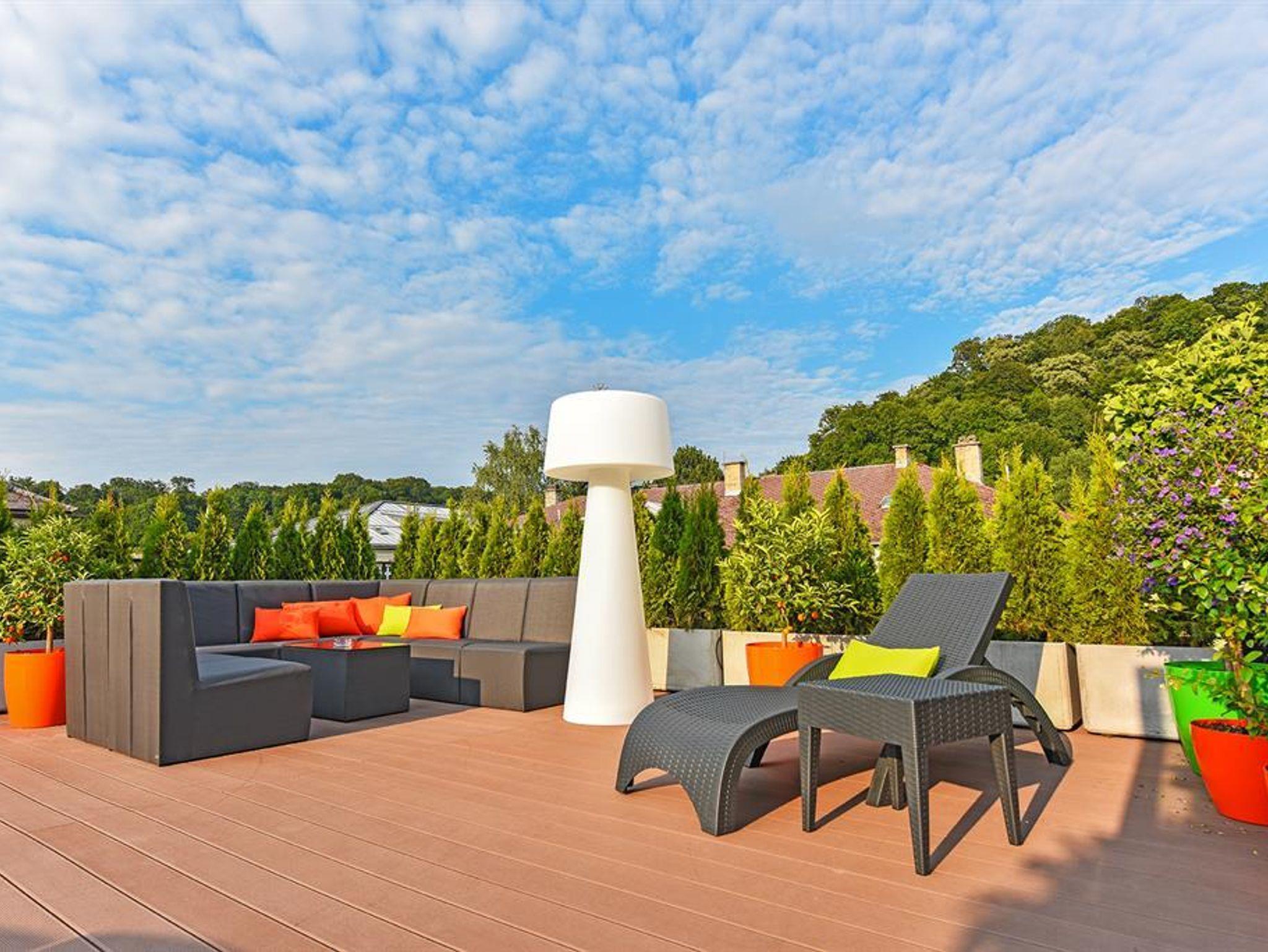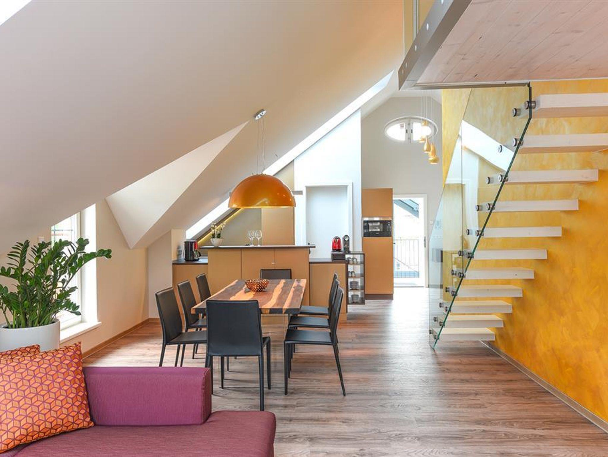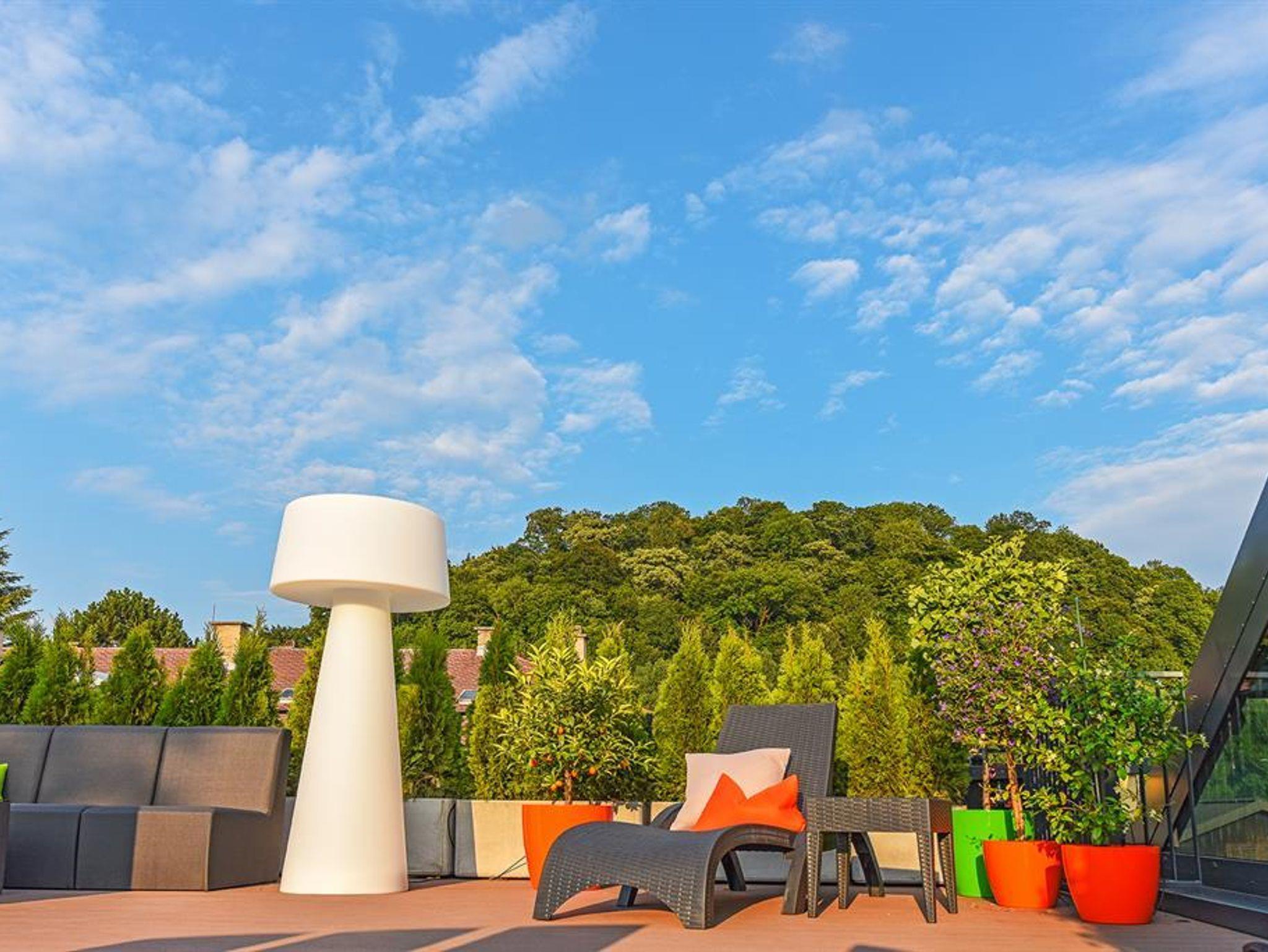Penthouse Festung Unser Penthouse Festung gehört wohl zu den schönsten und luxuriösesten Möglichkeiten den Urlaub in der Stadt Salzburg zu verbringen. Das Penthouse umfasst das gesamte Dachgeschoss der Villa Salzburg und verfügt über bis zu 5 m hohe Räume. Eingerichtet wurde die Wohnung mit Designermöbeln. Die verwendeten Materialien sind von höchster Qualität. Das Symposium von herrschaftlicher Architektur und modernem, extravagantem Design verleiht dem Penthouse ein einzigartiges Ambiente. Auf ca. 120 m² verfügt das Penthouse über 2 Schlafzimmer mit großen Doppelbetten. Das helle, lichtdurchflutete Wohnzimmer bietet dank der großen Fensterflächen wunderbare Ausblicke. Für gemütliche Abende steht der dänische Kamin im Wohn-Essbereich für Sie bereit. Das Highlight im Badezimmer ist die freistehende Badewanne, die sich direkt unter einem 3,5 m² großen Dachfenster befindet. Das Penthouse verfügt zudem über eine 10 m² großen Chill-Out Empore mit tollem Ausblick auf den Untersberg. Hier können Sie die Seele baumeln lassen und den Urlaub in Salzburg in vollen Zügen genießen. Das Penthouse im Überblick ca. 120 m² mit bis zu 5 m hohen Räumen für 4-8 Personen 2 Schlafzimmer mit Luxus-Boxspring-Doppelbetten 1 zusätzliches Doppelbett auf der Empore Die hochwertige Hotelcouch im Wohnzimmer kann zu einem zusätzlichen Bett für 2 Personen umfunktioniert werden. Wohnzimmer mit großen Dachfenstern und dänischen Kamin Entertainmentcenter mit HIFI-Anlage und DVD & Blu-ray Player UHD Flat TV im internationalen Sendern über Satellit (Astra) 10 m² große Chill-Out Empore komplett ausgestattete Küche Badezimmer mit Dusche und freistehender Badewanne, 3,5 m² Dachfenster, 2 Waschbecken, Haarfön, zuschaltbare Infrarotheizung und Handtüchern separat angelegte Toilette und Pissoir Safe Benützung der allgemein zugänglichen, sonnigen 70 m² großen Dachterrasse mit Liegestühlen und Lounge-Möbeln kostenloses W-Lan kostenloser Parkplatz Die Küchenausstattung im Detail WMF Töpfe Berndorf Besteck Design Porzellan Nespresso Kaffeemaschine Melitta Toaster, Kaffeemaschine, Stabmixer und Wasserkocher Siemens Küchengeräte - wie beispielsweise Herd, Geschirrspüler, Mikrowelle, Hochkühlschrank mit Tiefkühlfach etc. Babystuhl und Flaschenwärmer