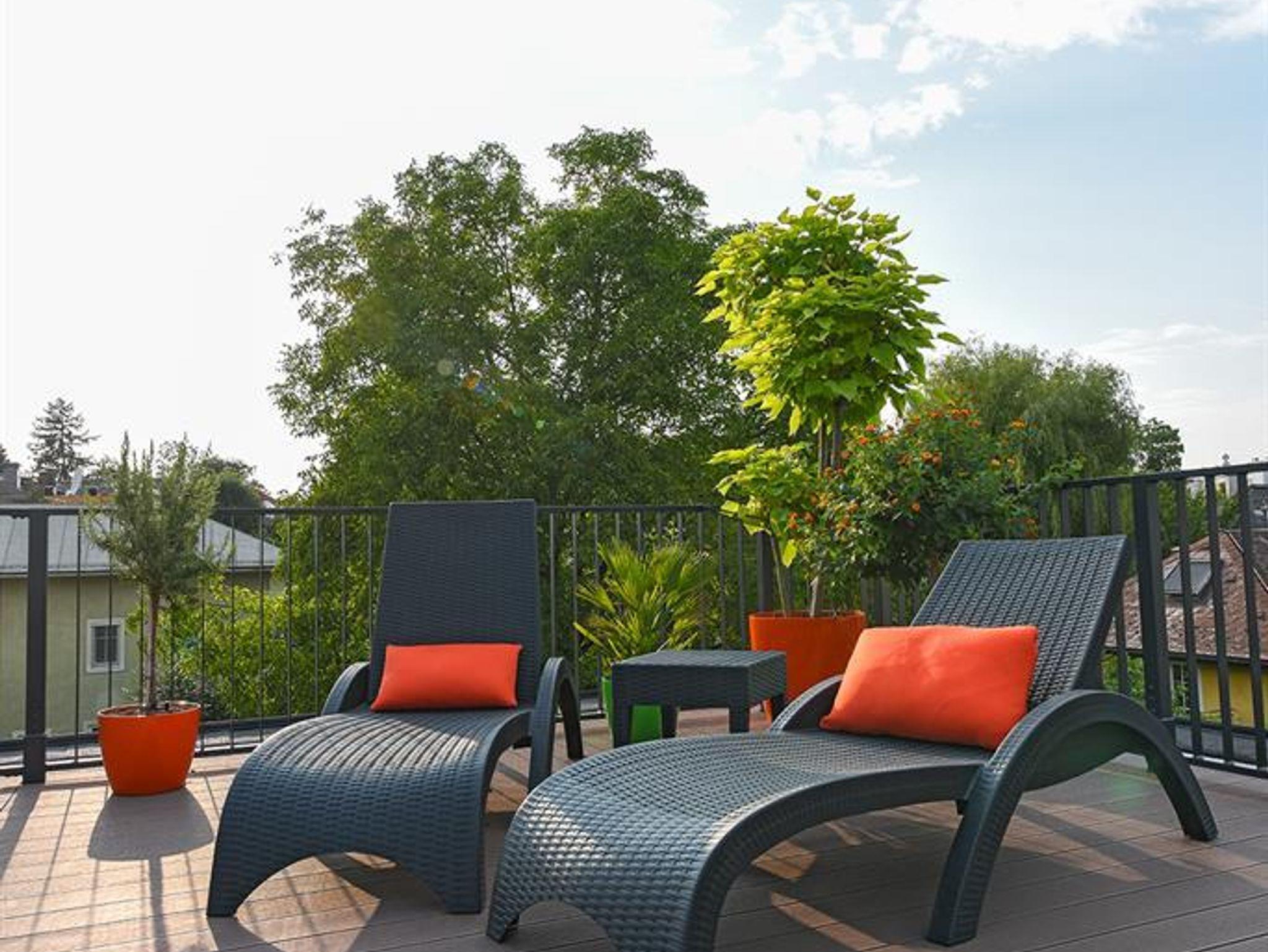 Ferienwohnung Hellbrunn In der Ferienwohnung Hellbrunn verbringen Sie Ihren Urlaub auf ca. 70 m². Die Wohnung bietet zwei Schlafzimmer mit Doppelbetten und ein gemütliches Wohnzimmer, in dem sich eine hochwertige, ausziehbare und bequeme Hotelcouch befindet. Die Ferienwohnung bietet zusätzlich einen Gartenzugang oder Balkon. Für kulinarische Genüsse steht Ihnen die komplett ausgestattete Küche zur Verfügung. Das hat die Ferienwohnung zu bieten ca. 70 m² für 4-6 Personen 2 Schlafzimmer mit Luxus-Boxspring-Doppelbetten gemütliches Wohnzimmer mit hochwertiger, ausziehbarer Hotelcouch für 2 Personen Entertainmentcenter mit HIFI-Anlage und DVD & Blu-ray Player UHD Flat TV im internationalen Sendern über Satellit (Astra) komplett ausgestattete Küche Badezimmer mit Dusche, Haarfön, zuschaltbare Infrarotheizung und Handtüchern separat angelegte Toilette und Pissoir Safe Gartenzugang oder Terrasse Benützung der allgemein zugänglichen, sonnigen 70 m² großen Dachterrasse mit Liegestühlen und Lounge-Möbeln kostenloses W-Lan kostenloser Parkplatz Die Küchenausstattung im Detail WMF Töpfe Berndorf Besteck Design Porzellan Nespresso Kaffeemaschine Melitta Toaster, Kaffeemaschine, Stabmixer und Wasserkocher Siemens Küchengeräte - wie beispielsweise Herd, Mikrowelle, Geschirrspüler, Hochkühlschrank mit Tiefkühlfach etc. Babystuhl und Flaschenwärmer