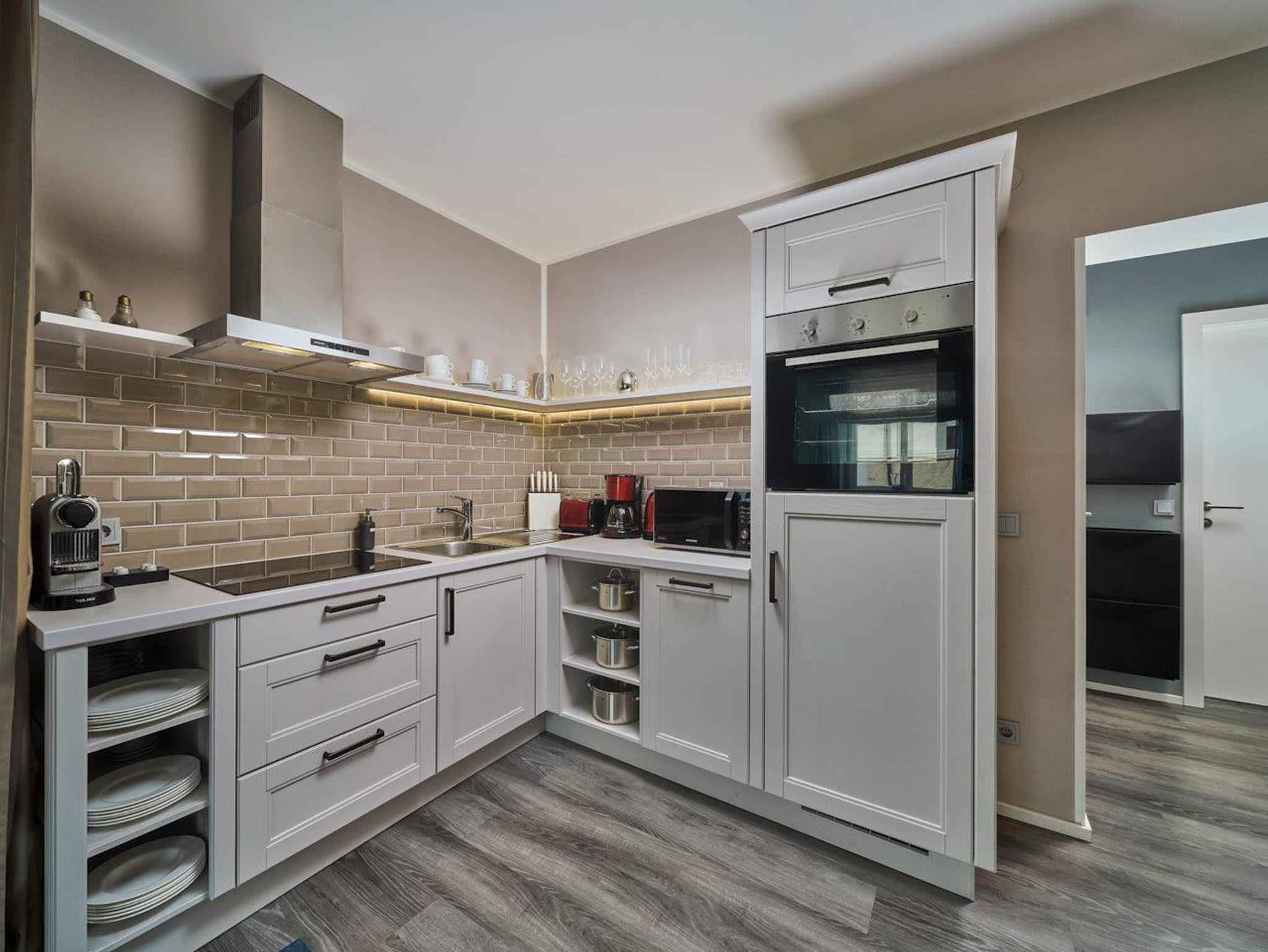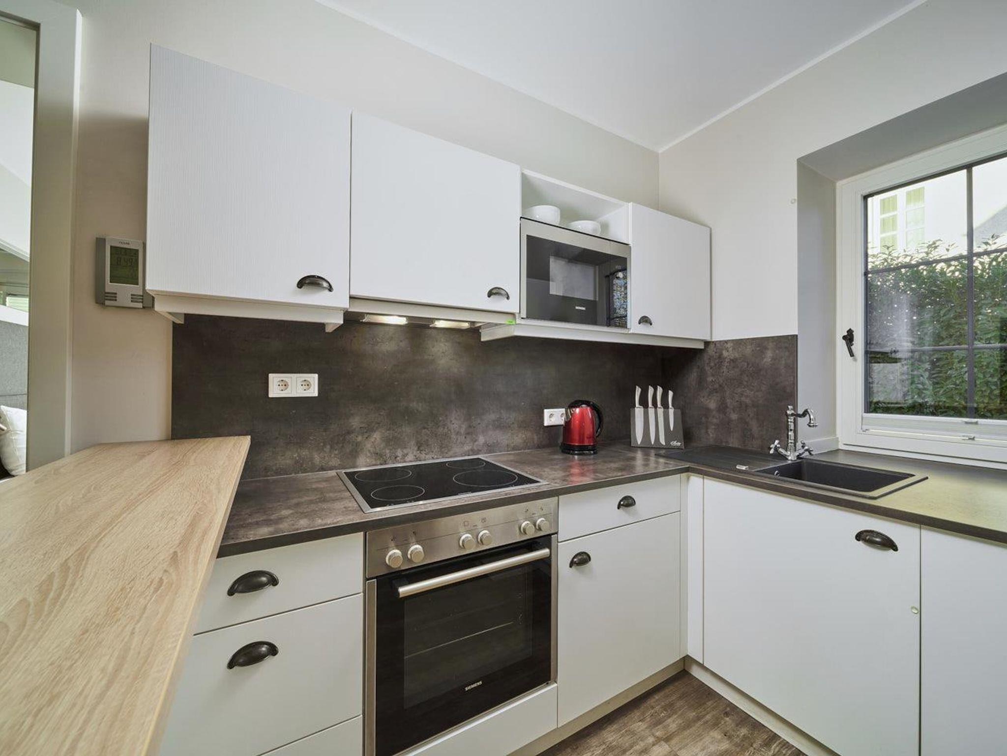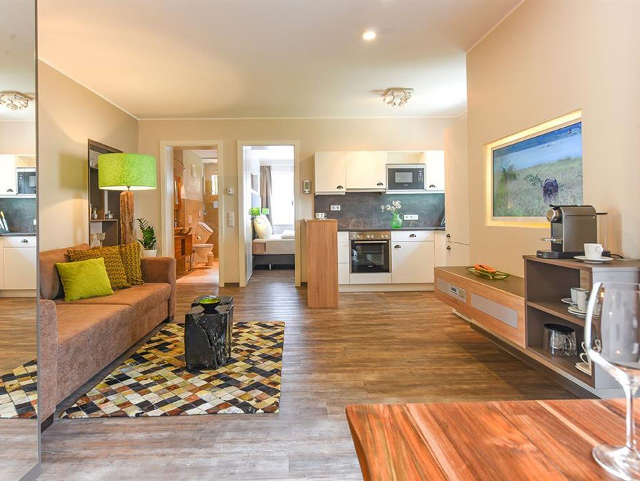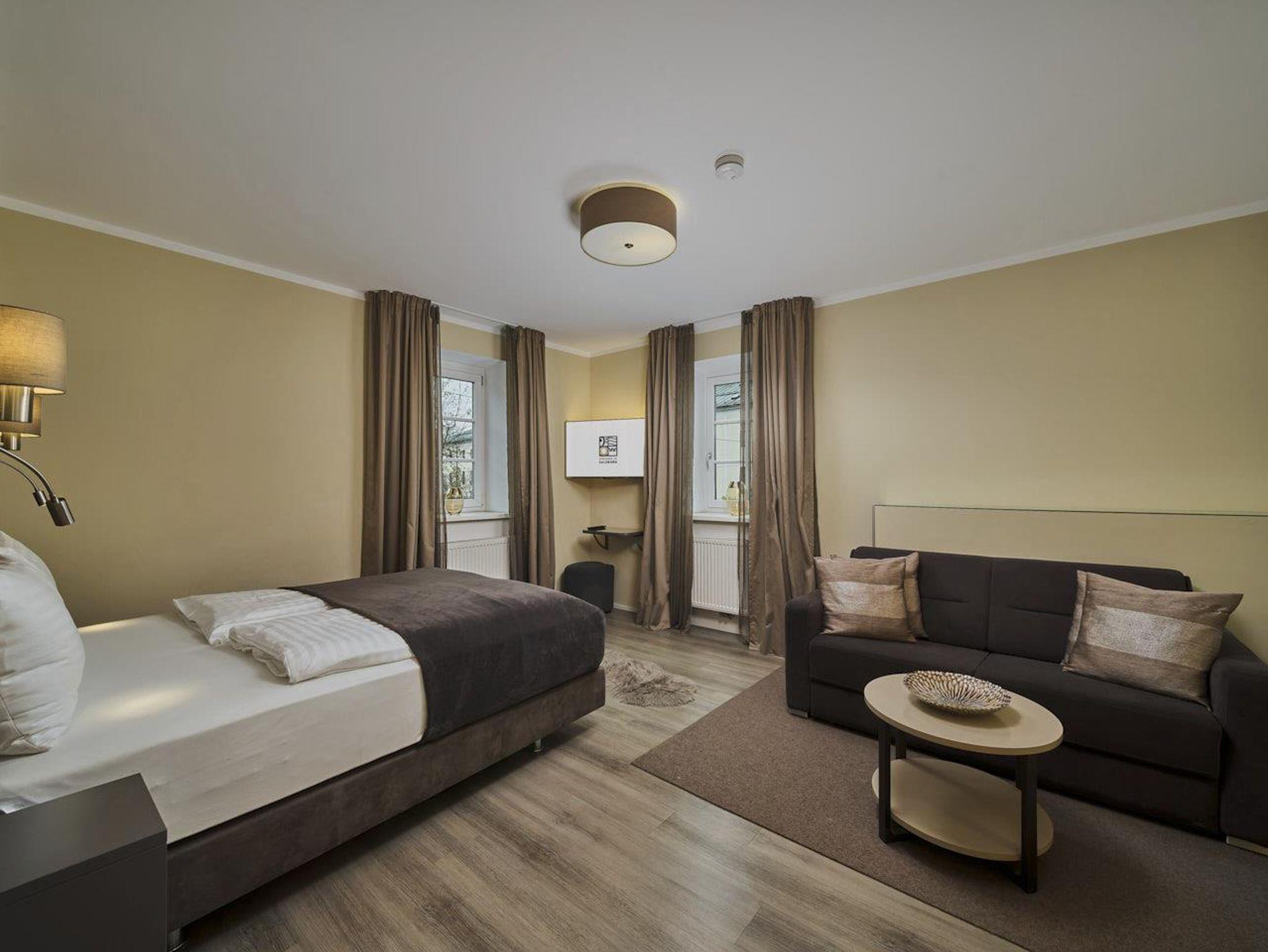 Ferienwohnung Mirabell Auf ca. 50 m² bietet die Ferienwohnung Mirabell ein ganz besonders elegantes Wohnerlebnis. Die Wohnung befindet sich im neu renovierten Altbau der Villa und ist mit edlen Möbeln und exklusiven Materialien eingerichtet. In der Ferienwohnung finden Sie eine geräumige und gemütliche Wohnküche, sowie ein Schlafzimmer mit Doppelbett und ein Badezimmer mit Dusche, WC und Pissoir. Für eine zusätzliche Person kann die hochwertige, ausziehbare Hotelcouch im Wohnzimmer zu einem Zusatzbett umgebaut werden. Das hat die Ferienwohnung zu bieten ca. 50 m² für 2-4 Personen 1 Schlafzimmer mit Luxus-Boxspring-Doppelbetten gemütliche Wohnküche mit hochwertiger, ausziehbarer Hotelcouch für 2 Personen Entertainmentcenter mit HIFI-Anlage und DVD & Blu-ray Player UHD Flat TV im internationalen Sendern über Satellit (Astra) komplett ausgestattete Küche Badezimmer mit Dusche, WC mit Pissoir, Haarfön, zuschaltbare Infrarotheizung und Handtüchern Safe teilweise Gartenzugang oder Terrasse Benützung der allgemein zugänglichen, sonnigen 70 m² großen Dachterrasse mit Liegestühlen und Lounge-Möbeln kostenloses W-Lan kostenloser Parkplatz Die Küchenausstattung im Detail WMF Töpfe Berndorf Besteck Design Porzellan Nespresso Kaffeemaschine Melitta Toaster, Kaffeemaschine, Stabmixer und Wasserkocher Siemens Küchengeräte - wie beispielsweise Herd, Geschirrspüler, Mikrowelle, Hochkühlschrank mit Tiefkühlfach etc. Babystuhl und Flaschenwärmer