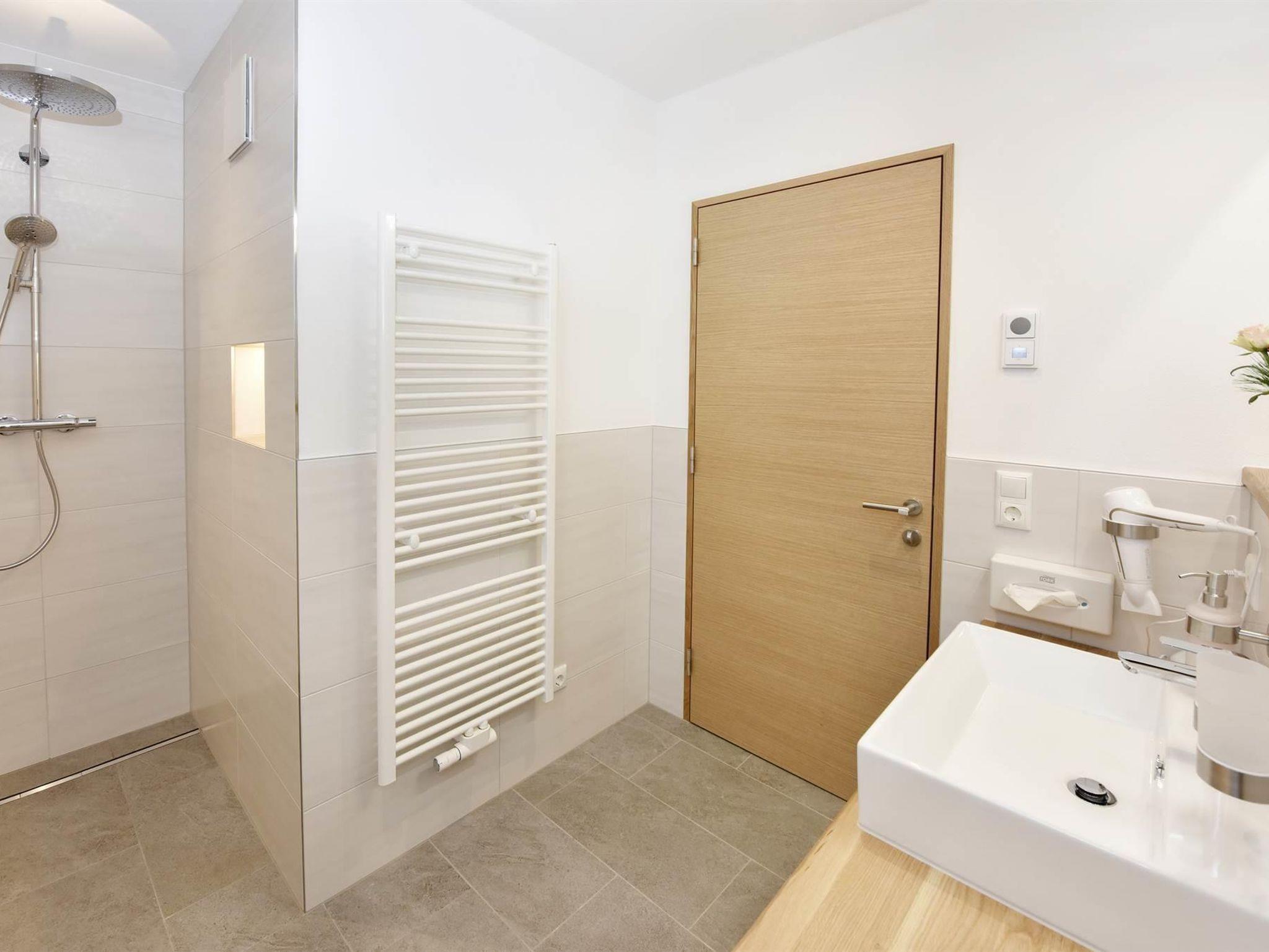 Begehbare Du mit WC u. separates WC, voll ausgestattete Küche mit Wohn-Essbereich, TV, WLAN, Balkon u. großzügige Terrasse, Handtücher u. Bettwäsche vorh.