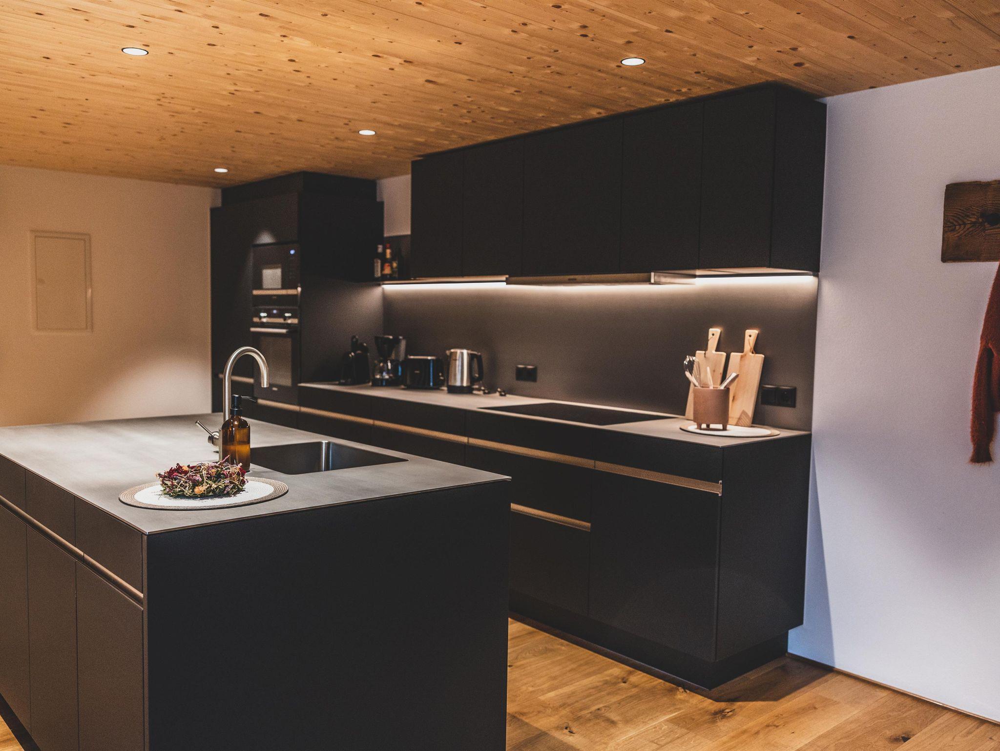 Im Montafonerhaus wurden in Wohn- und Schlafzimmern der ursprüngliche Stil des Hauses erhalten und revitalisiert, Küche und Badezimmer wurden modern und hochwertig gestaltet. Dadurch entstand ein interessanter Kontrast zwischen Alt und Neu.