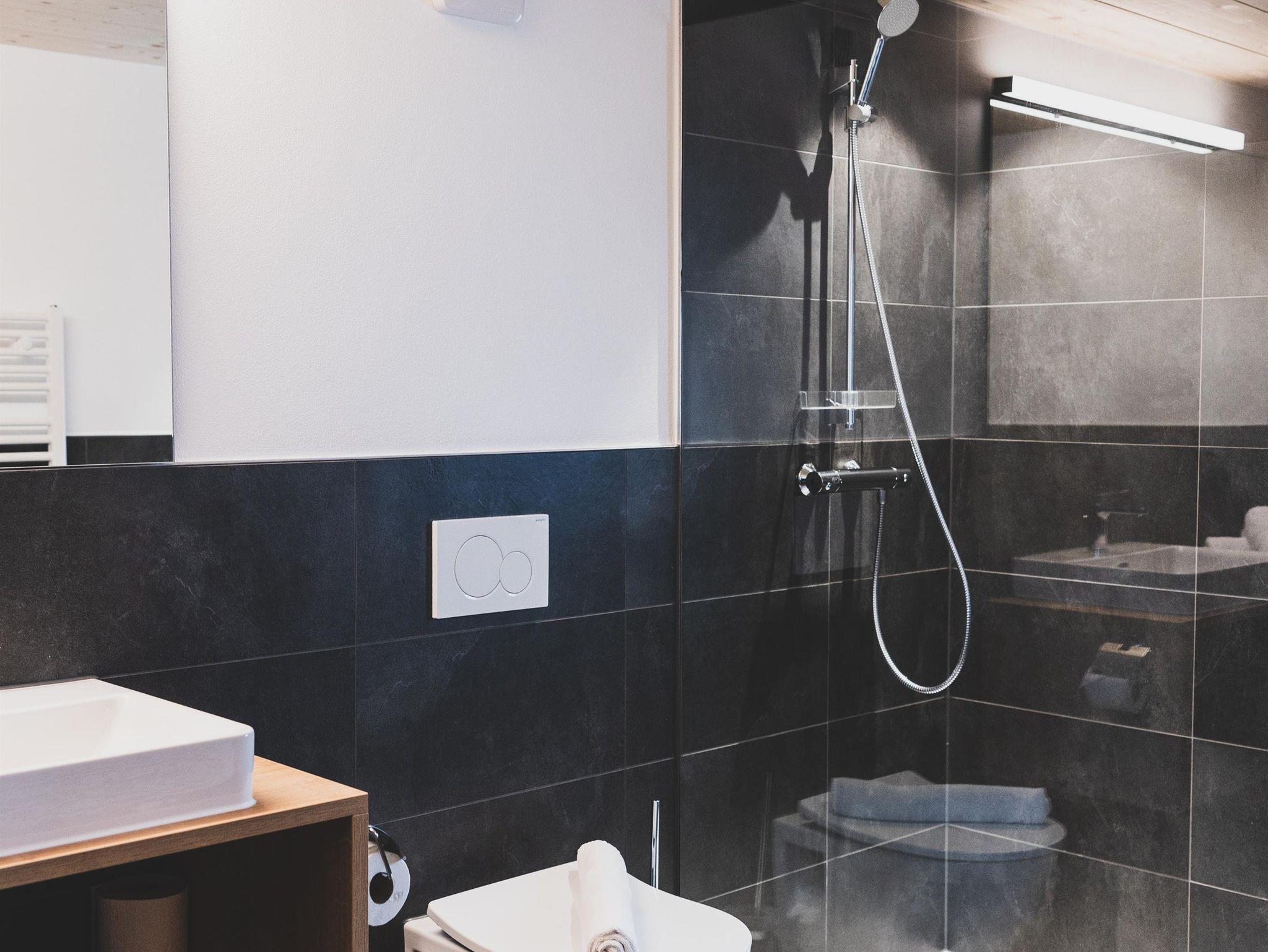 150m², 2-geschoßig, 3 Schlafzimmer mit Doppelbetten, 3 Badezimmer mit Dusche und WC, grosse Küche, Stube/Esszimmer, 1 Wohnzimmer mit 2 ausziehbaren Sofas. Eigene Terrasse mit Ausrischtung nach Süden. 4-10 Personen.