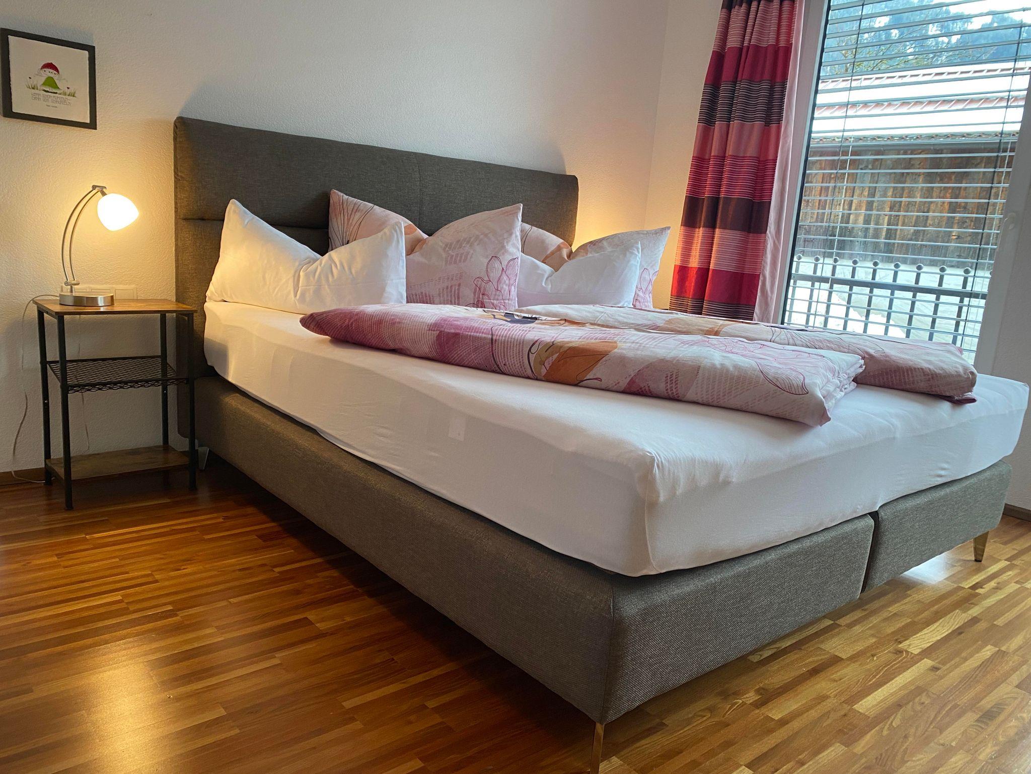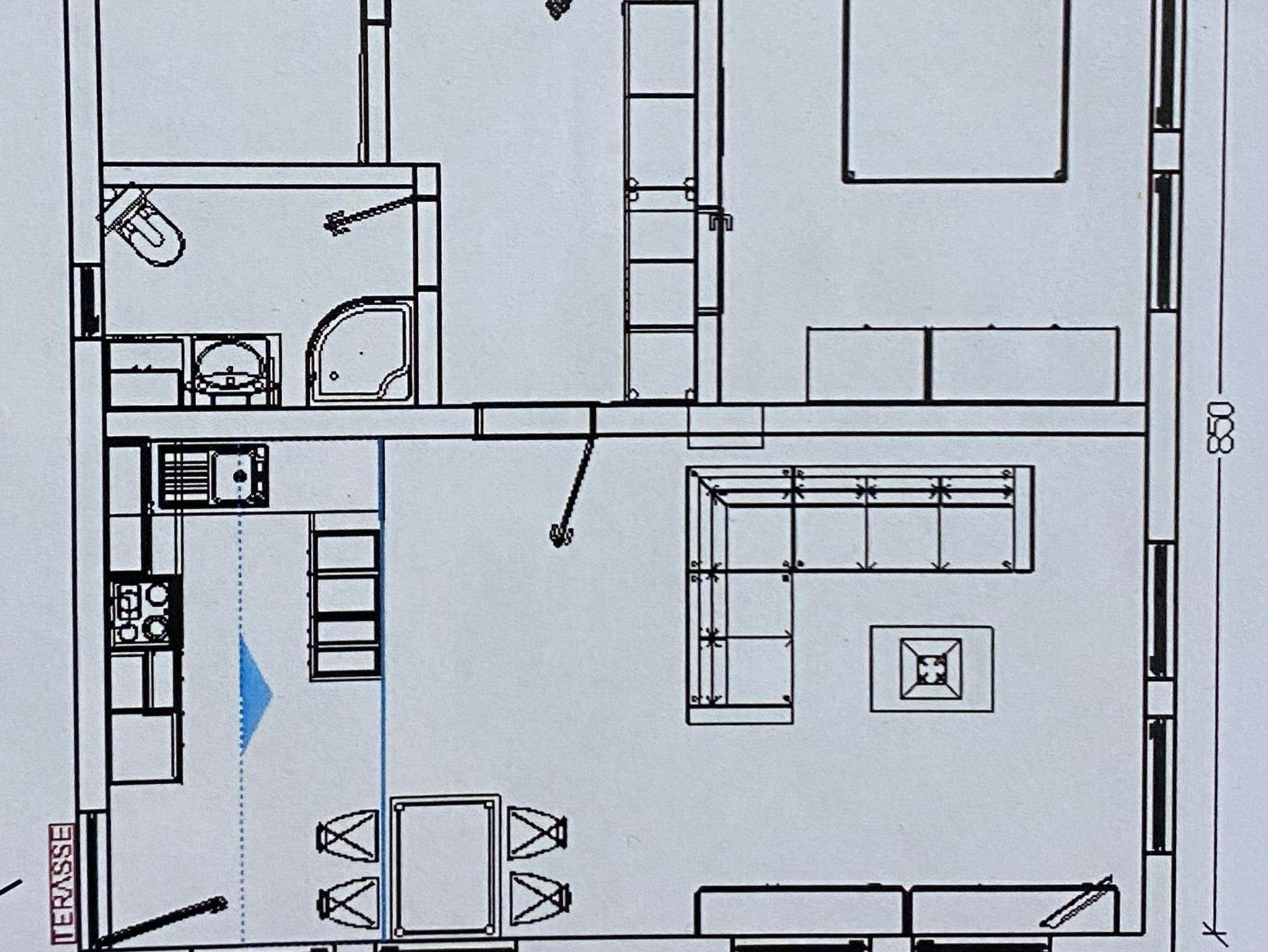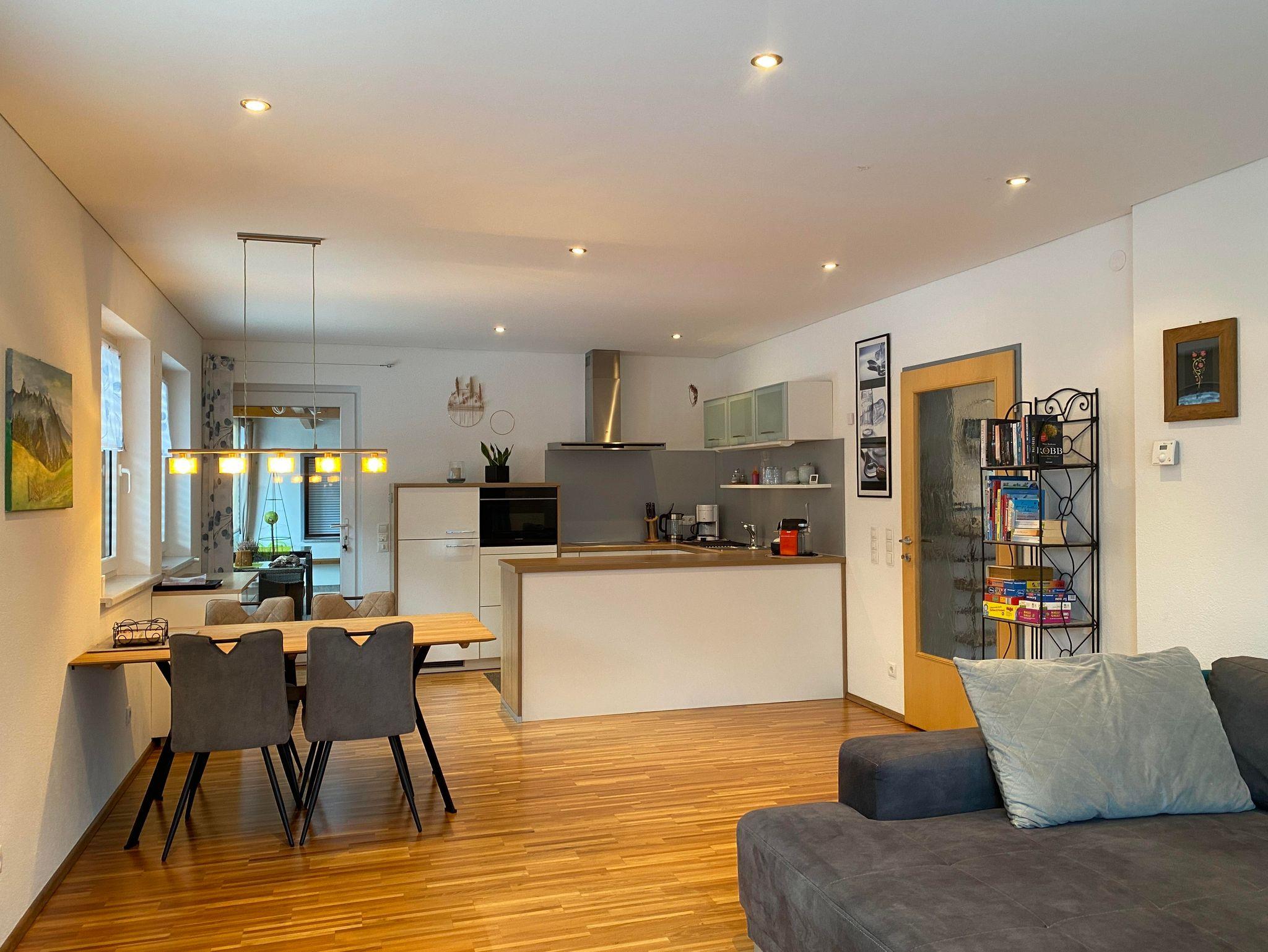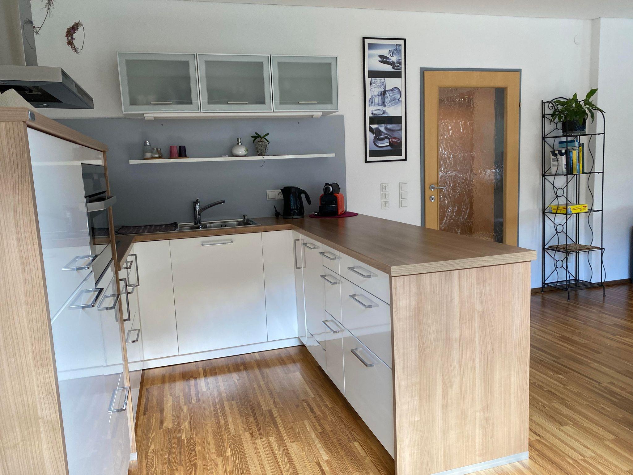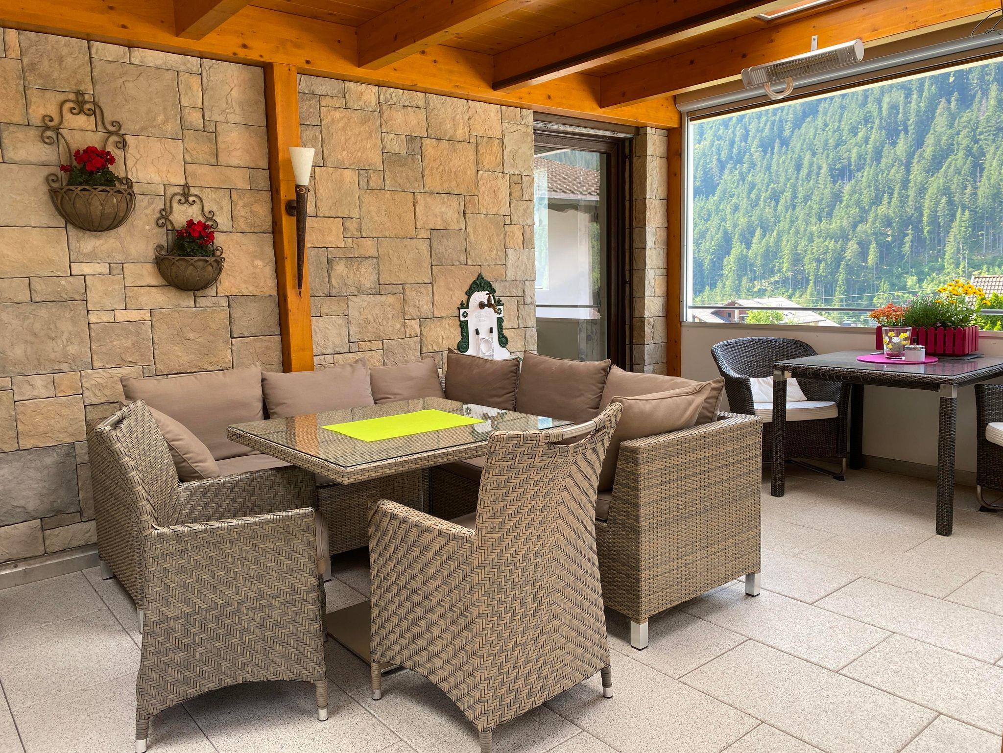 Sonnige Terrasse, 65m² Wohnfläche, ein Schlafzimmer, großes Ausziehsofa im Wohnraum, Dusche/WC, komplett ausgetattete Küche, Abstellraum (auch für Ski und Skischuhe)