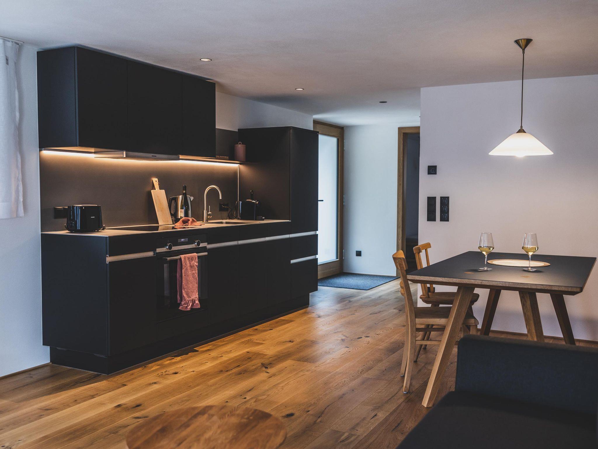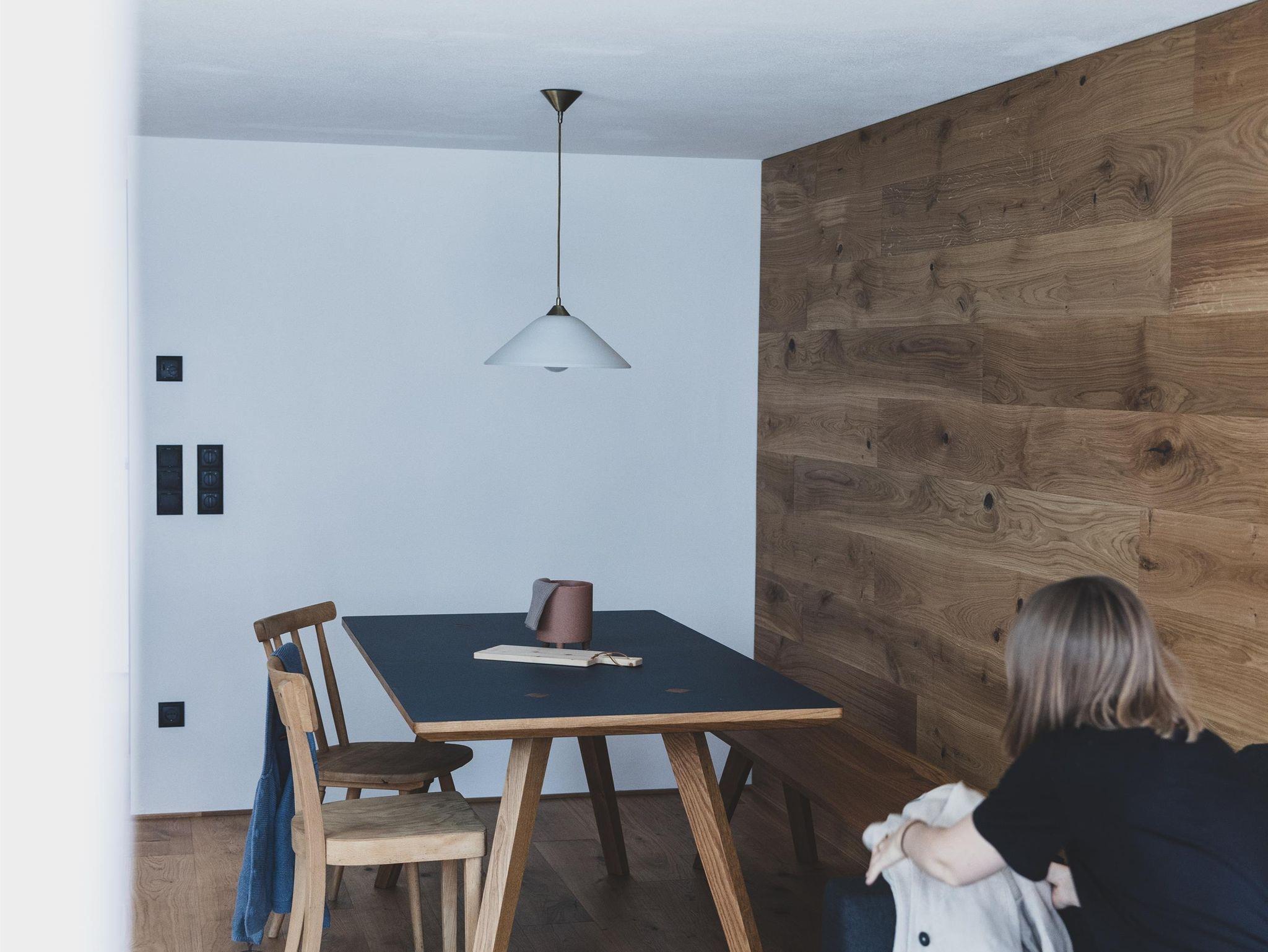 Im Montafonerhaus wurden in Wohn- und Schlafzimmern der ursprüngliche Stil des Hauses erhalten und revitalisiert, Küche und Badezimmer wurden modern und hochwertig gestaltet. Dadurch entstand ein interessanter Kontrast zwischen Alt und Neu.