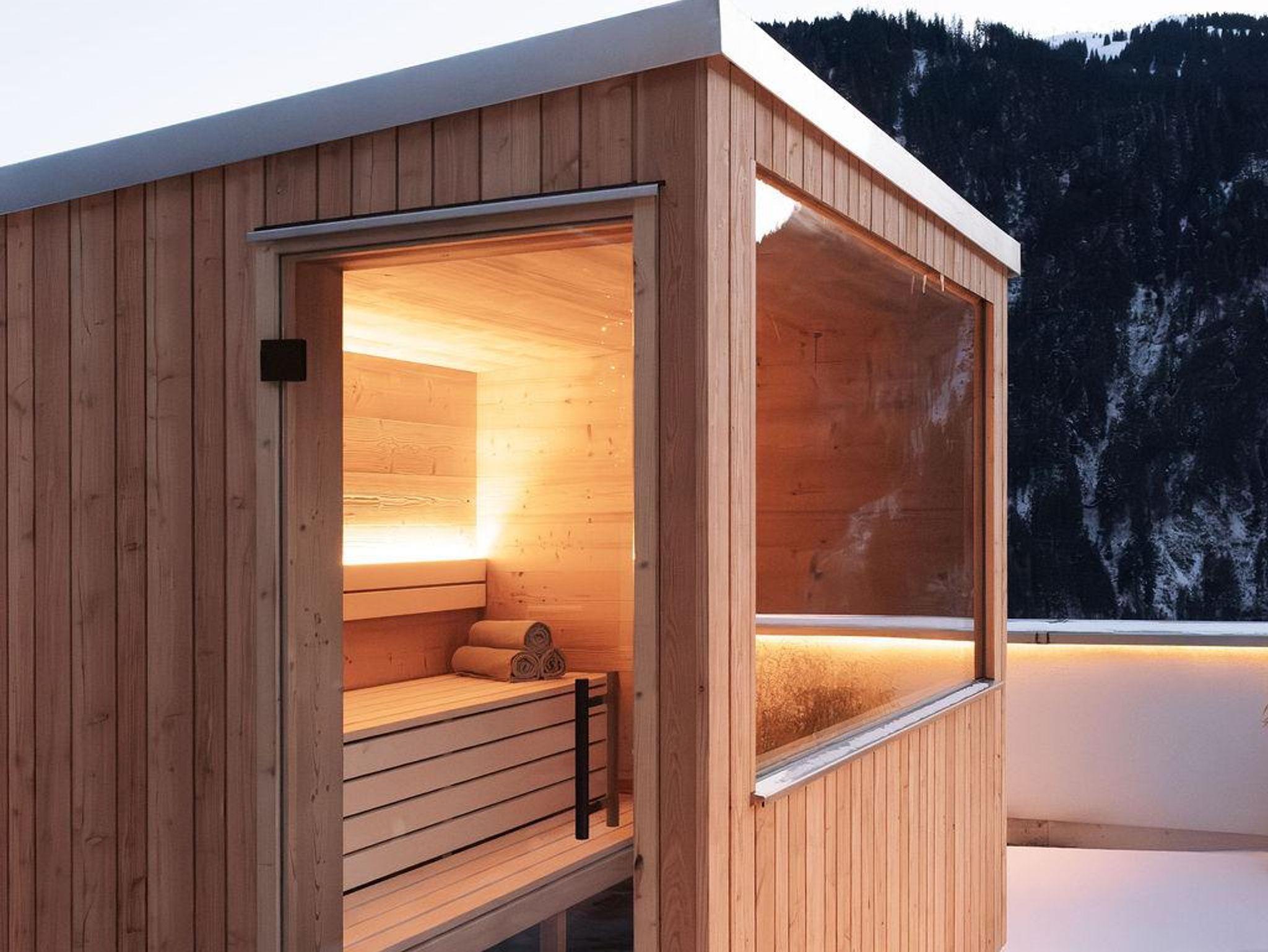 50m², 1 Schlafzimmer mit Doppelbett, 1 Badezimmer, 1 WC, Wohnzimmer mit Sofabett, vollausgestattete Küche. Balkon (14m²) mit privater Panorama-Sauna. 2-4 Personen.