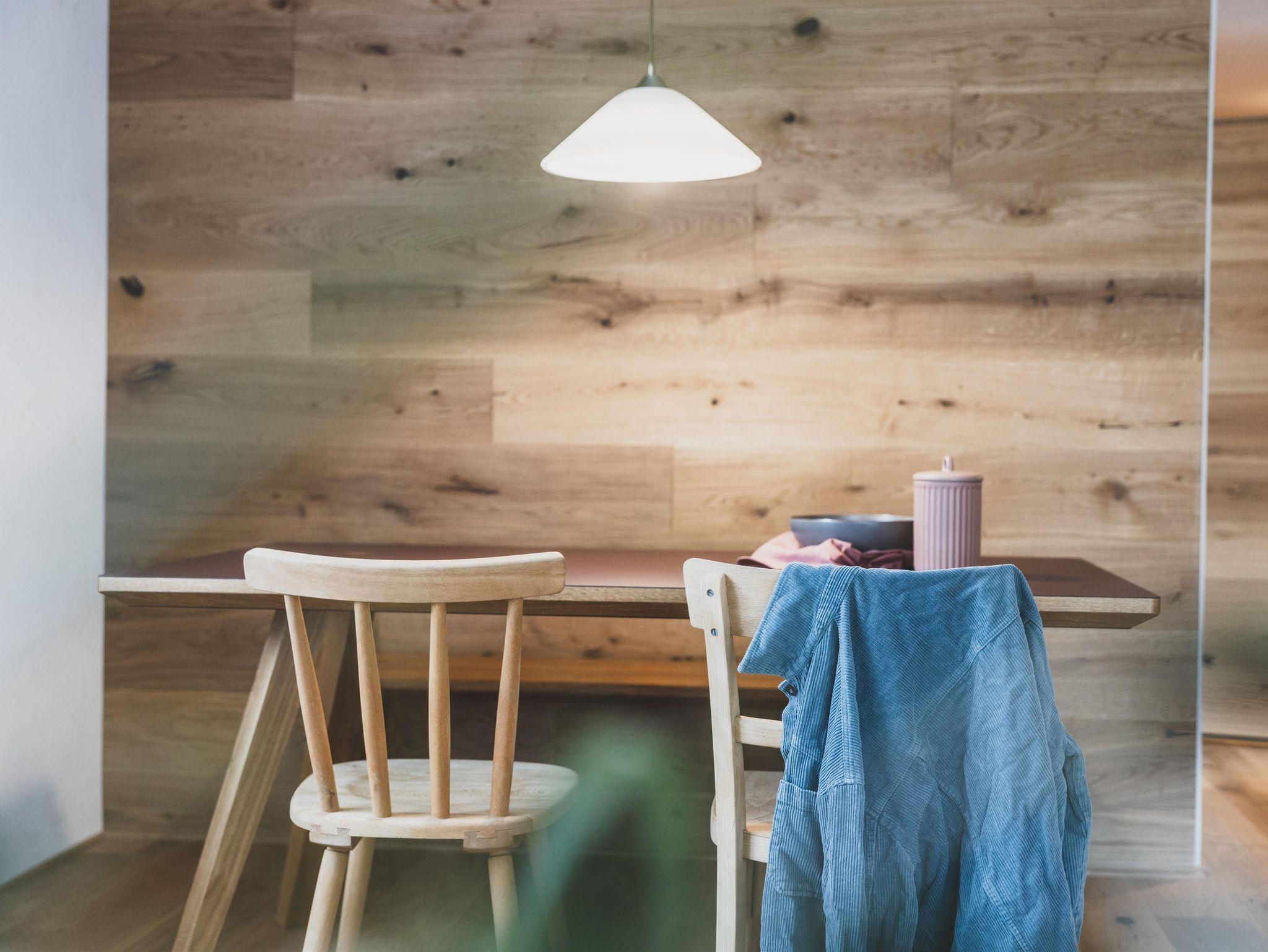 Im Montafonerhaus wurden in Wohn- und Schlafzimmern der ursprüngliche Stil des Hauses erhalten und revitalisiert, Küche und Badezimmer wurden modern und hochwertig gestaltet. Dadurch entstand ein interessanter Kontrast zwischen Alt und Neu.