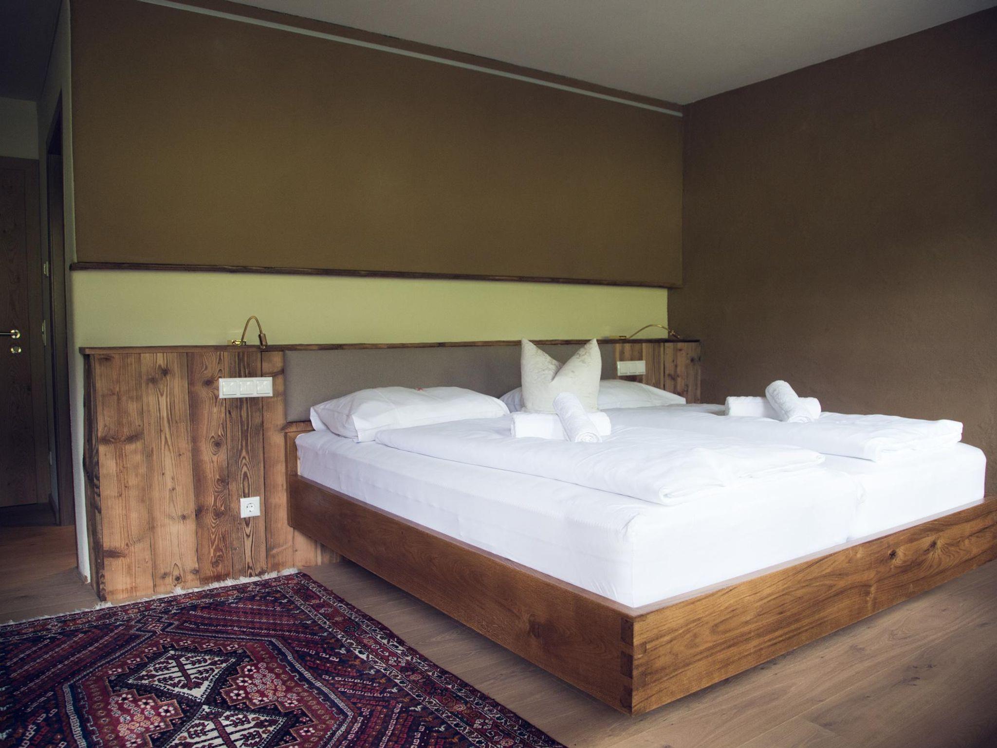 Unsere behaglichen Schlafzimmer sind mit Lehmputz und Wandheizung ausgestattet,