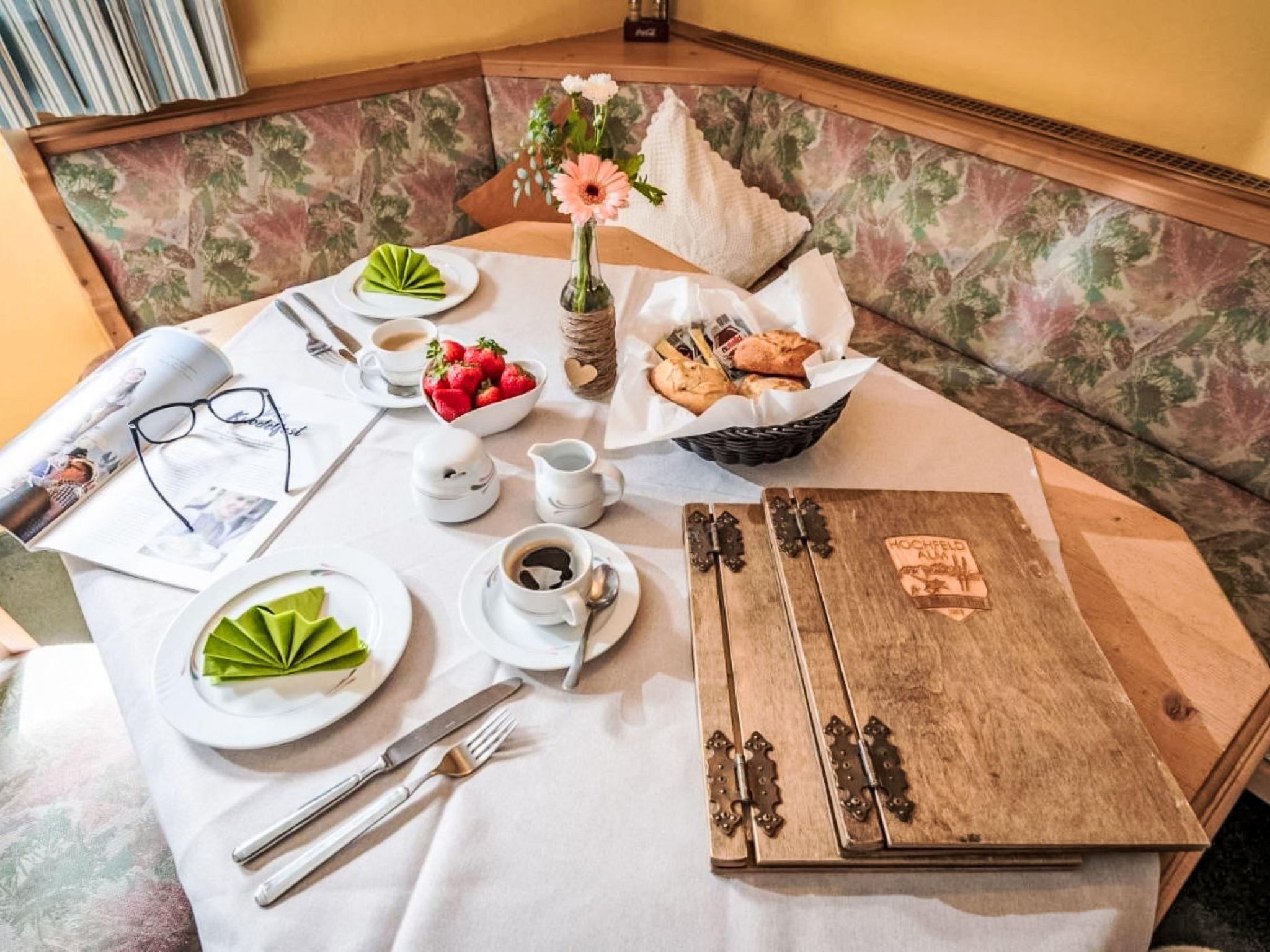"Kitzbüheler Horn", 3-room apartment 88 m2 on 1st floor. Cosy furnishings: 2 rooms, each room with 1 double bed (180 cm, length 200 cm). Living room with 2 sleeping facilities (140 cm, length 200 cm), TV and flat screen. Exit to the balcony. Open kitchen (oven, 4 ceramic glass hob hotplates, toaster, kettle, electric coffee machine) with dining table. Bath/shower, sep. WC, double hand-basin. Balcony. Balcony furniture. View of the forest. Facilities: Internet (WiFi, free). Please note: non-smokers only. Maximum 1 pet/ dog allowed. Smoke alarm. All divan beds are fully functional beds with a slatted frame and mattress.