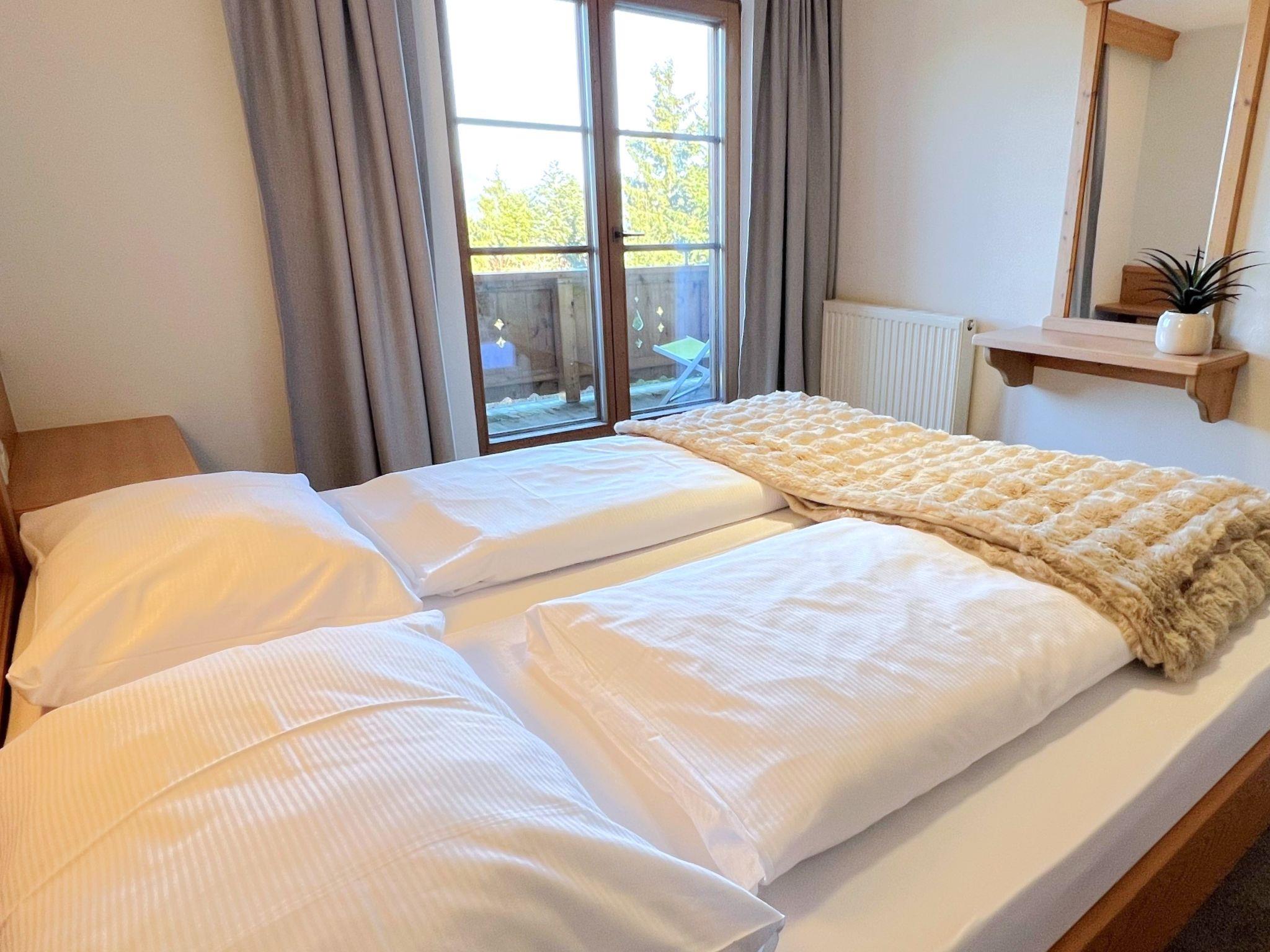 "Unterberg", 2-room apartment 50 m2 on 1st floor. Cosy furnishings: 1 room with 1 double bed (180 cm, length 200 cm). Exit to the balcony. Living room with 1 double sofabed (140 cm, length 200 cm), TV and flat screen. Exit to the balcony. Kitchen (oven, 4 ceramic glass hob hotplates, toaster, kettle, electric coffee machine). Sep. WC, bath or shower, double hand-basin. Balcony. Balcony furniture. Very beautiful panoramic view of the mountains. Facilities: Internet (WiFi, free). Please note: non-smokers only. Maximum 1 pet/ dog allowed. Smoke alarm. All divan beds are fully functional beds with a slatted frame and mattress.