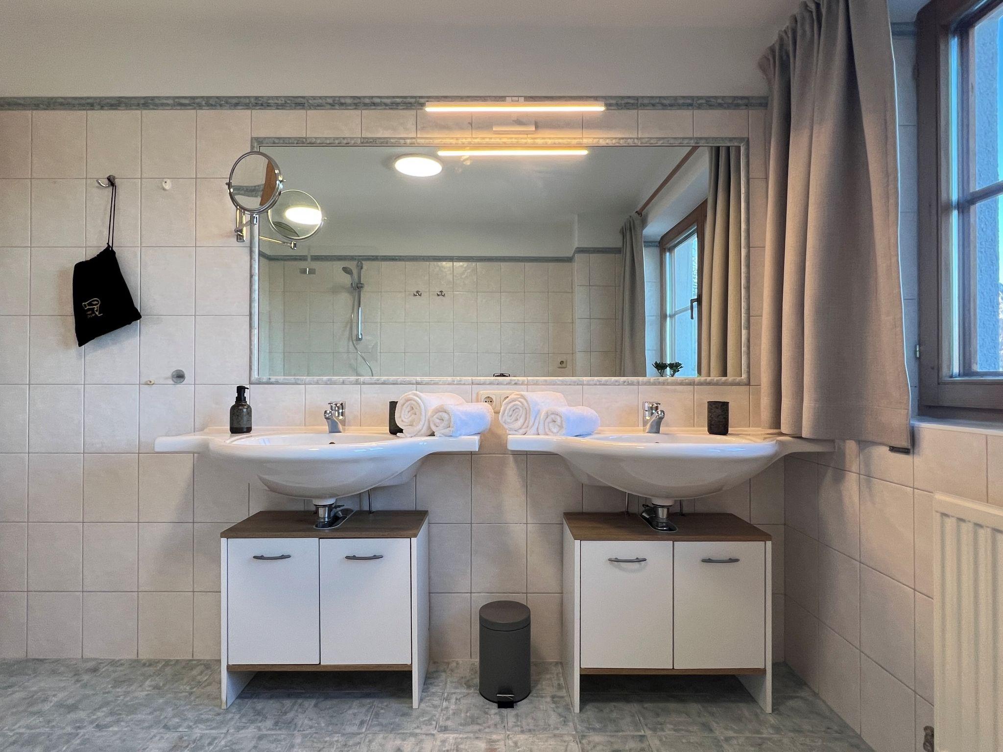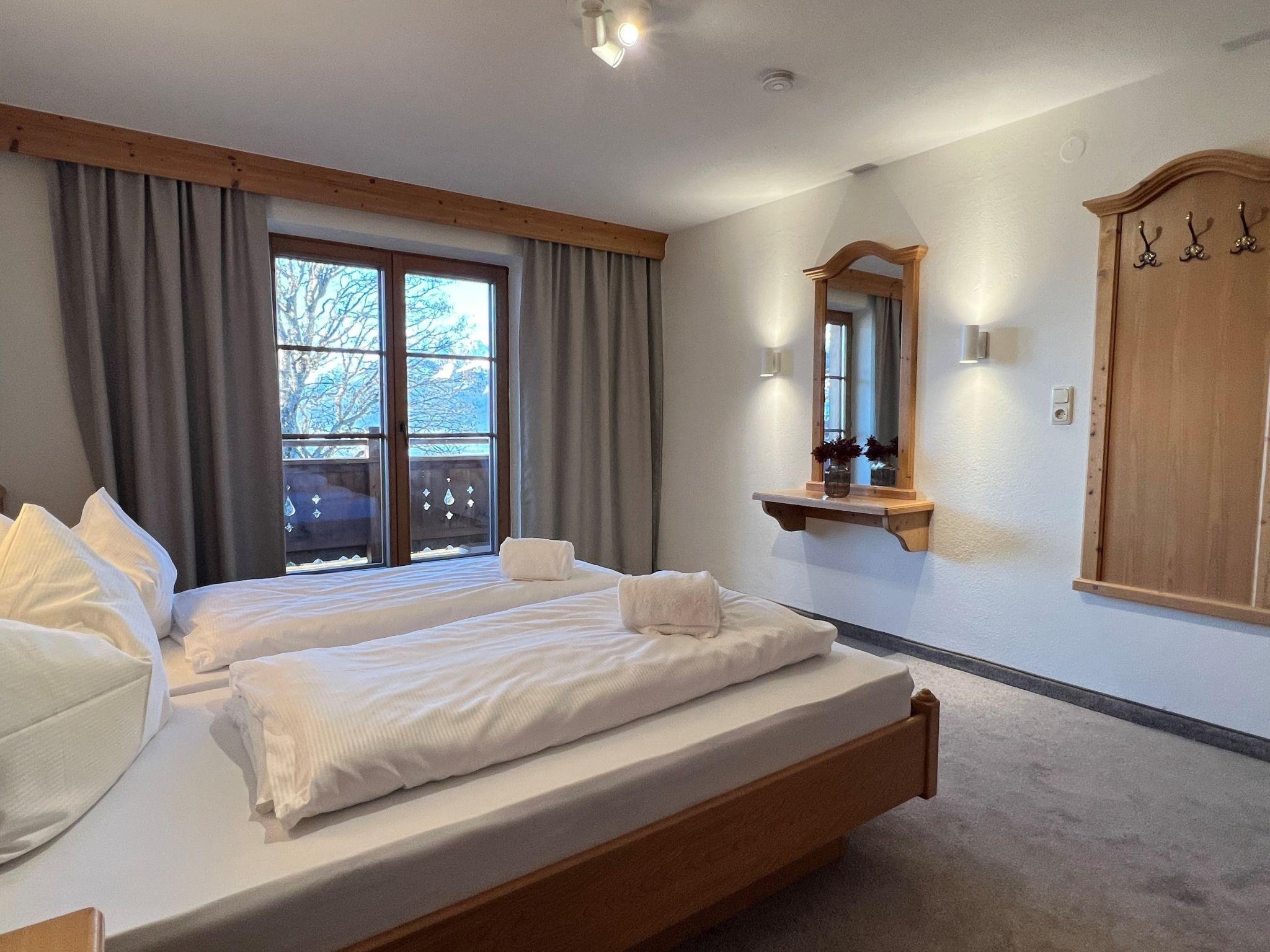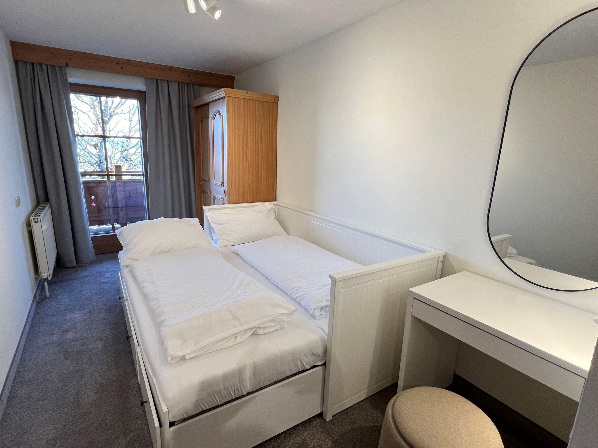 "Wilder Kaiser", 3-room apartment 76 m2 on 1st floor. Cosy furnishings: 1 room with 1 double bed (180 cm, length 200 cm). Exit to the balcony. 1 children's room with 2 pull-out beds (2 x 80 cm, length 200 cm). Exit to the balcony. Living room with 1 double sofabed (140 cm, length 200 cm), TV and flat screen. Exit to the balcony. Open kitchen (oven, 4 ceramic glass hob hotplates, toaster, kettle, electric coffee machine) with dining table. Sep. WC, bath or shower/WC, double hand-basin. Balcony. Balcony furniture. Very beautiful panoramic view of the mountains. Facilities: Internet (WiFi, free). Please note: non-smokers only. Maximum 1 pet/ dog allowed. Smoke alarm.