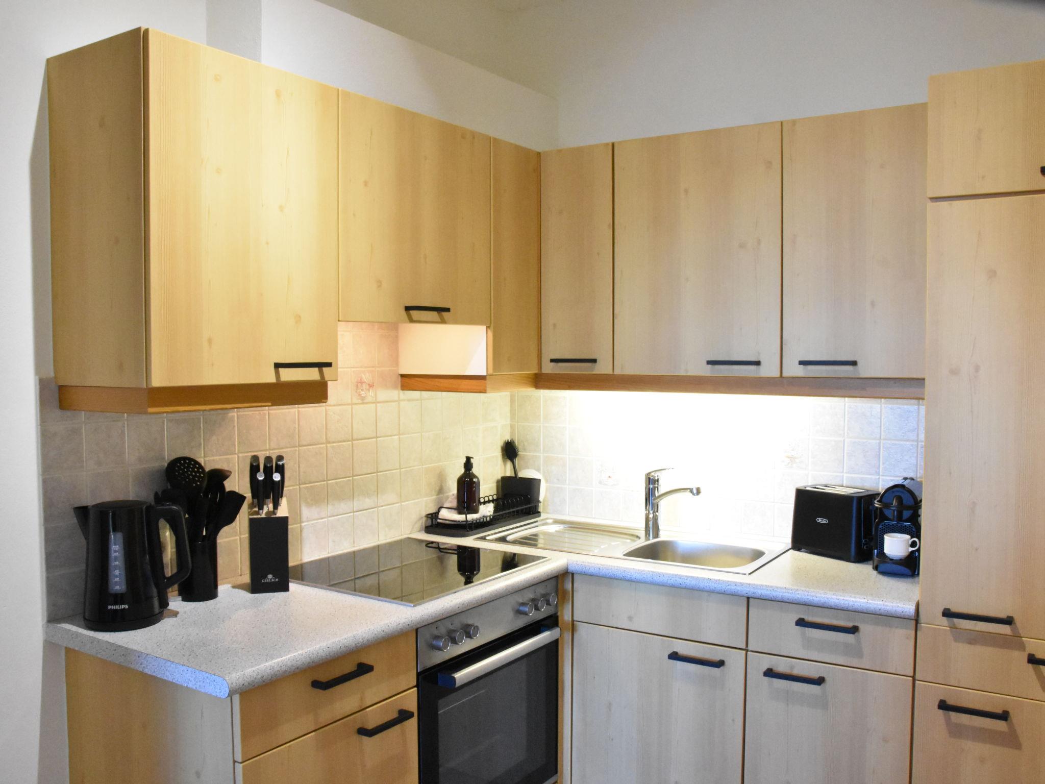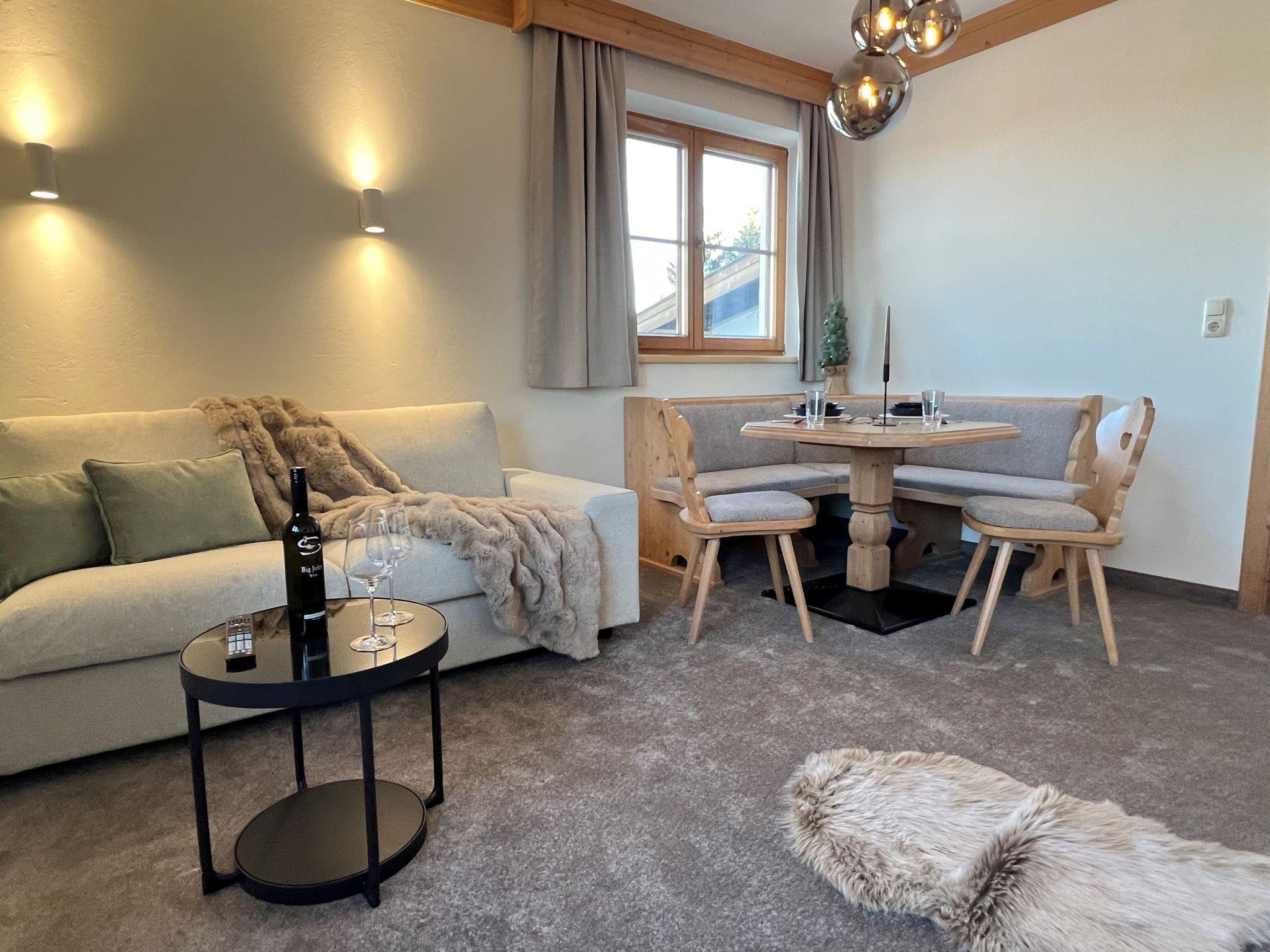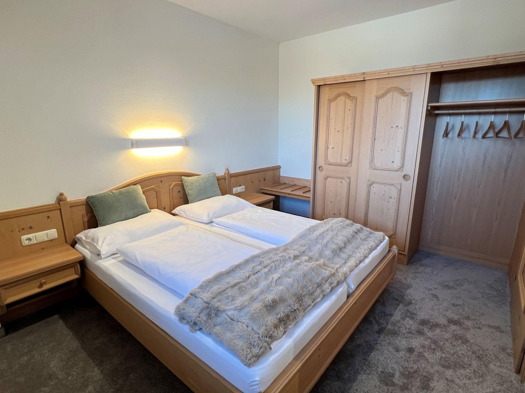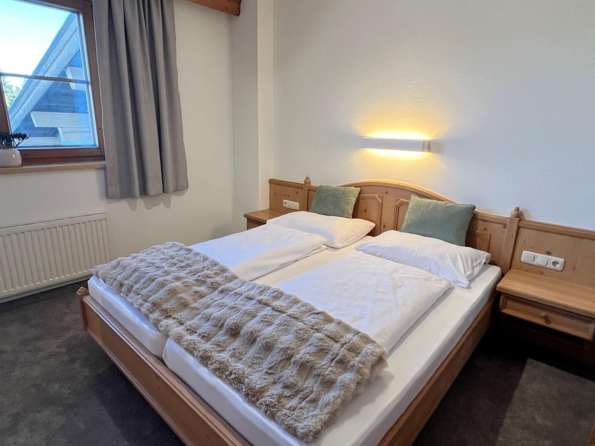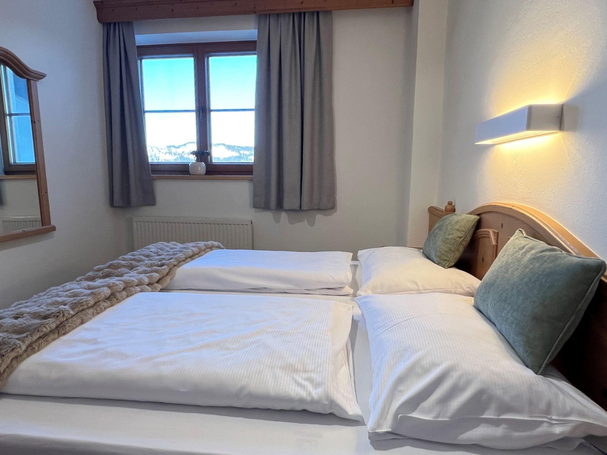 "Fellhorn", 2-room apartment 48 m2, on the ground floor. Cosy furnishings: 1 room with 1 double bed (180 cm, length 200 cm). Living room with 1 double sofabed (140 cm, length 200 cm), TV and flat screen. Kitchen (oven, 4 ceramic glass hob hotplates, toaster, kettle, electric coffee machine) with dining table. Sep. WC, bath or shower, double hand-basin. Very beautiful panoramic view of the mountains. Facilities: Internet (WiFi, free). Please note: non-smokers only. Maximum 1 pet/ dog allowed. Smoke alarm.
