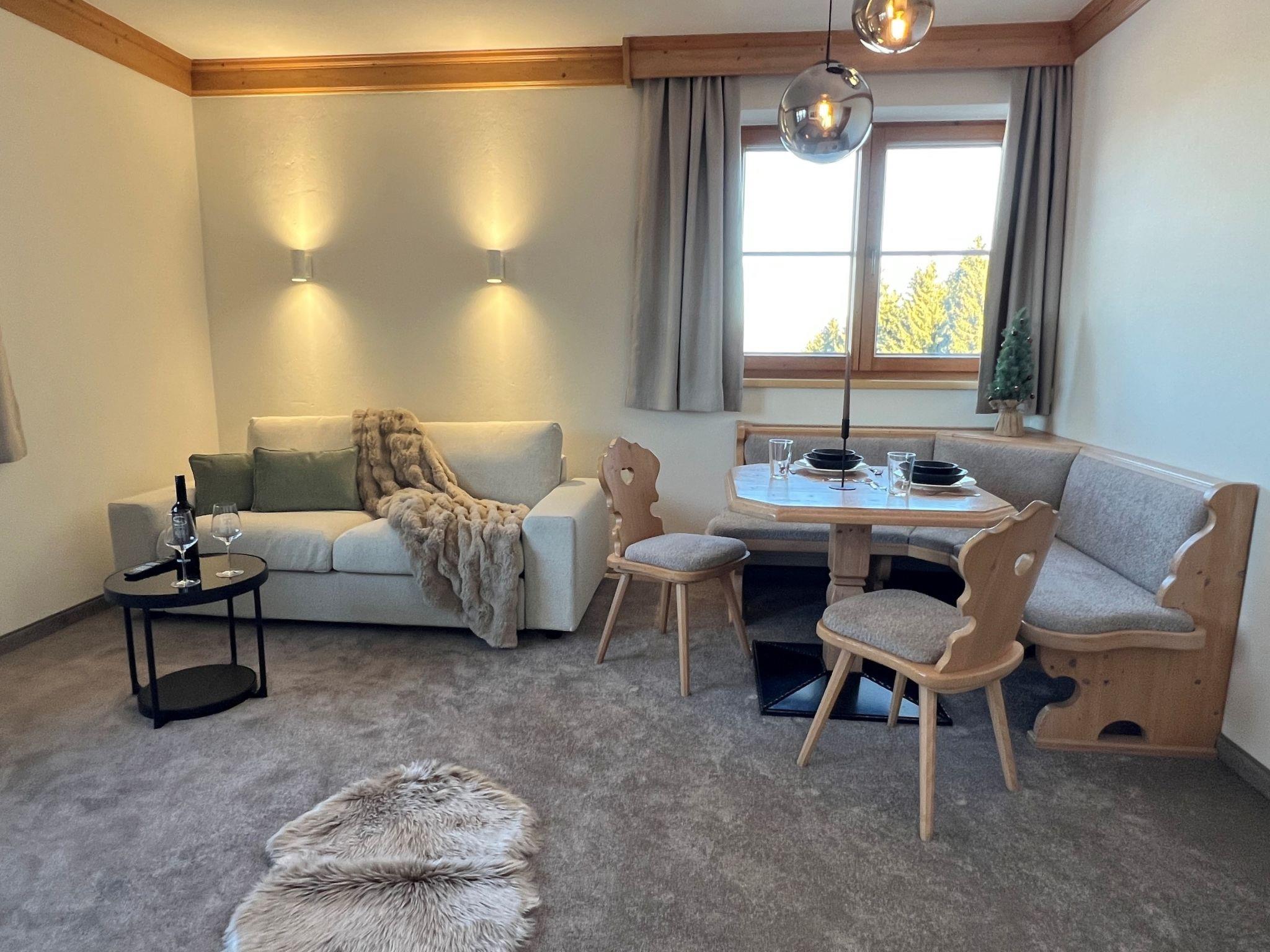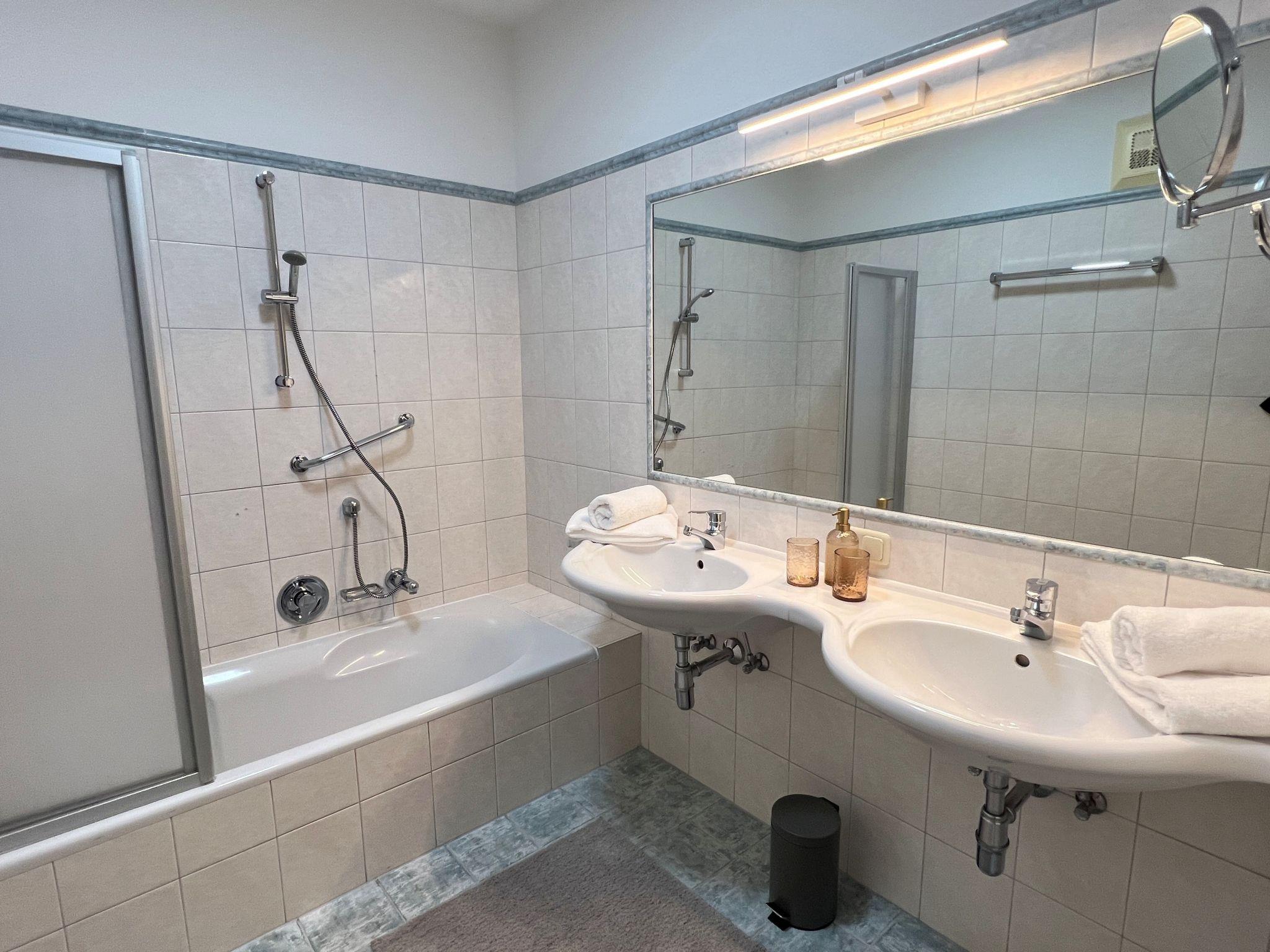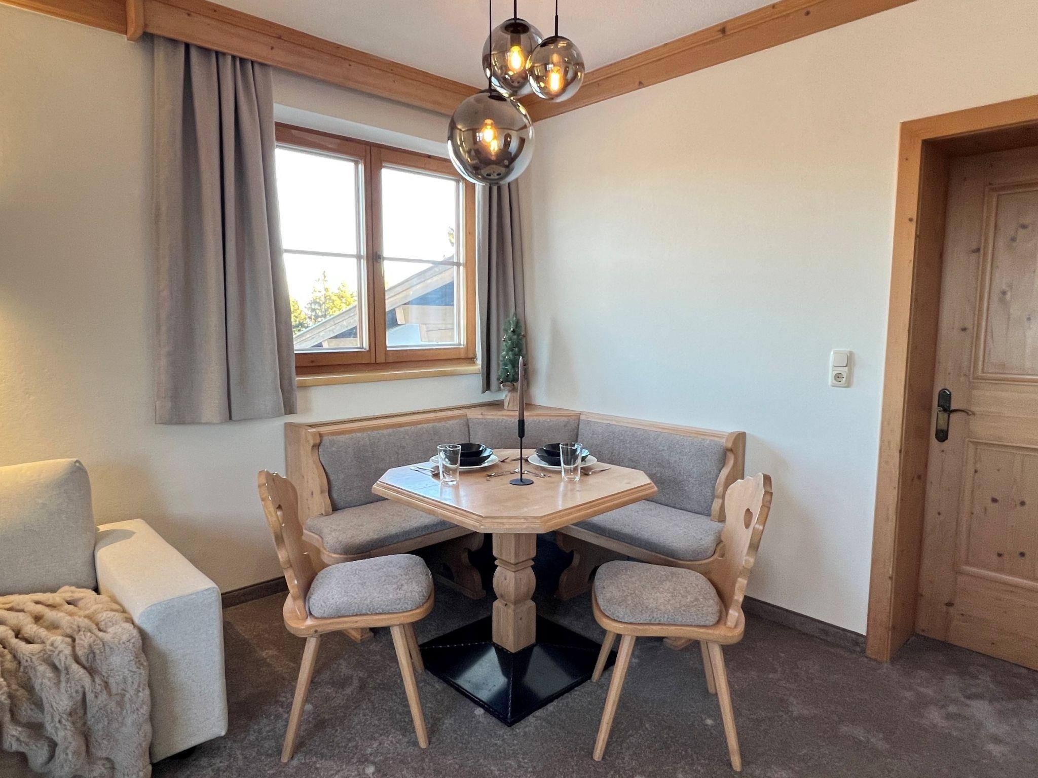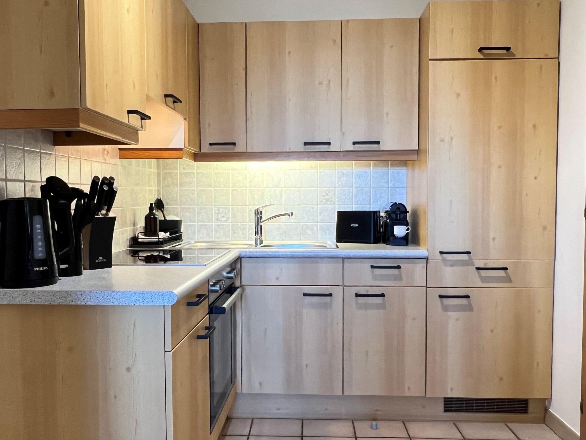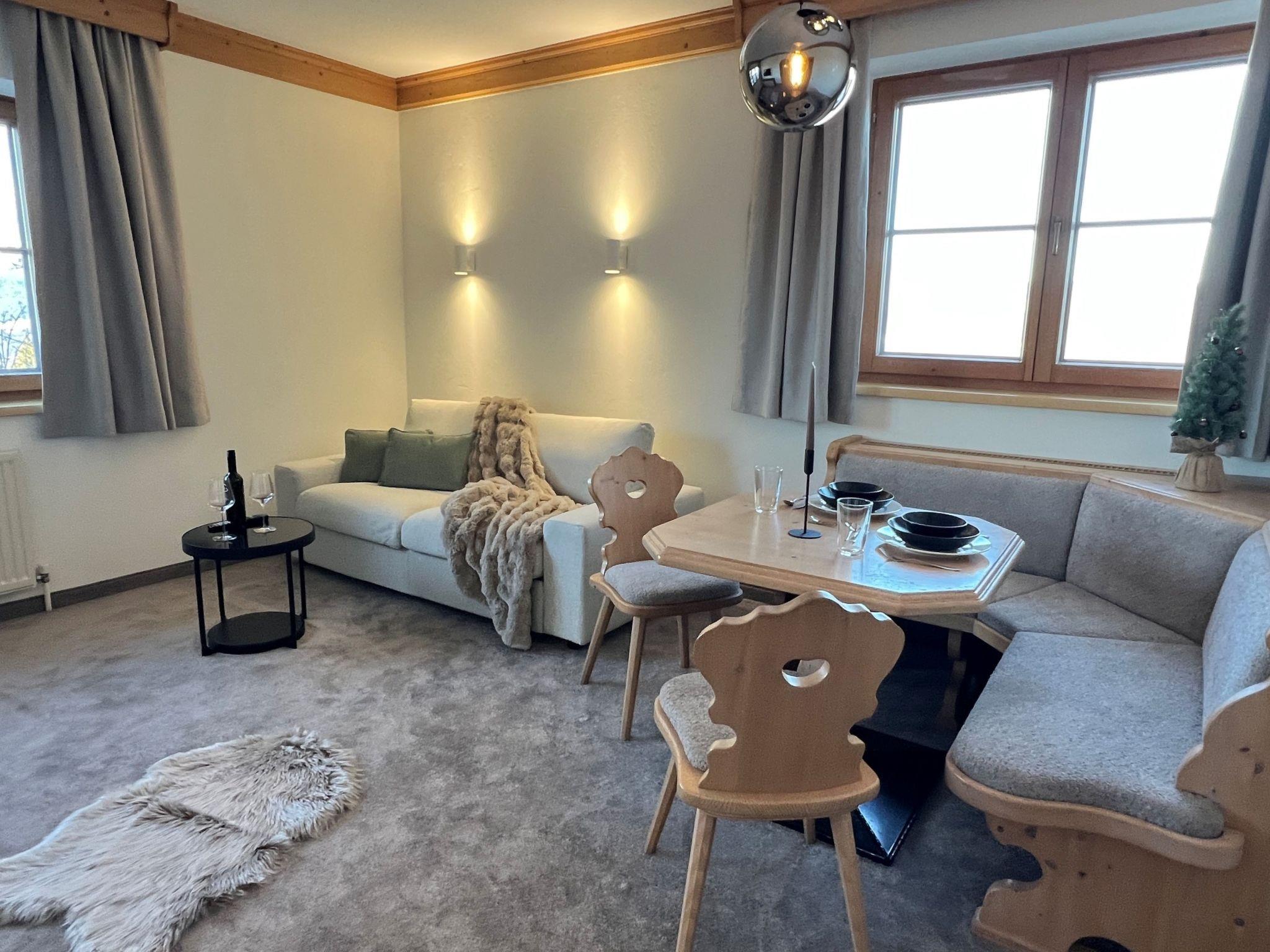 "Fellhorn", 2-room apartment 48 m2, on the ground floor. Cosy furnishings: 1 room with 1 double bed (180 cm, length 200 cm). Living room with 1 double sofabed (140 cm, length 200 cm), TV and flat screen. Kitchen (oven, 4 ceramic glass hob hotplates, toaster, kettle, electric coffee machine) with dining table. Sep. WC, bath or shower, double hand-basin. Very beautiful panoramic view of the mountains. Facilities: Internet (WiFi, free). Please note: non-smokers only. Maximum 1 pet/ dog allowed. Smoke alarm.