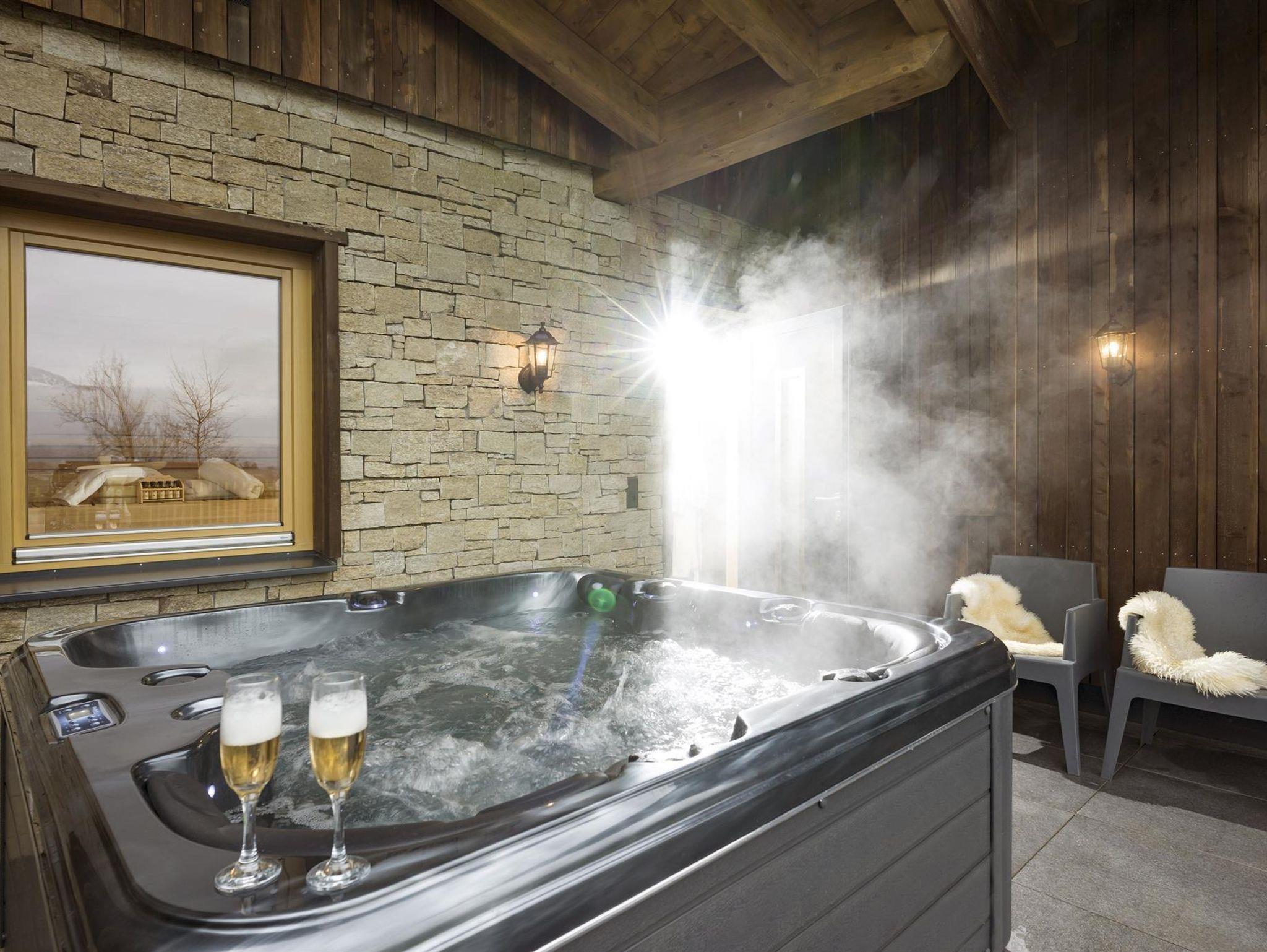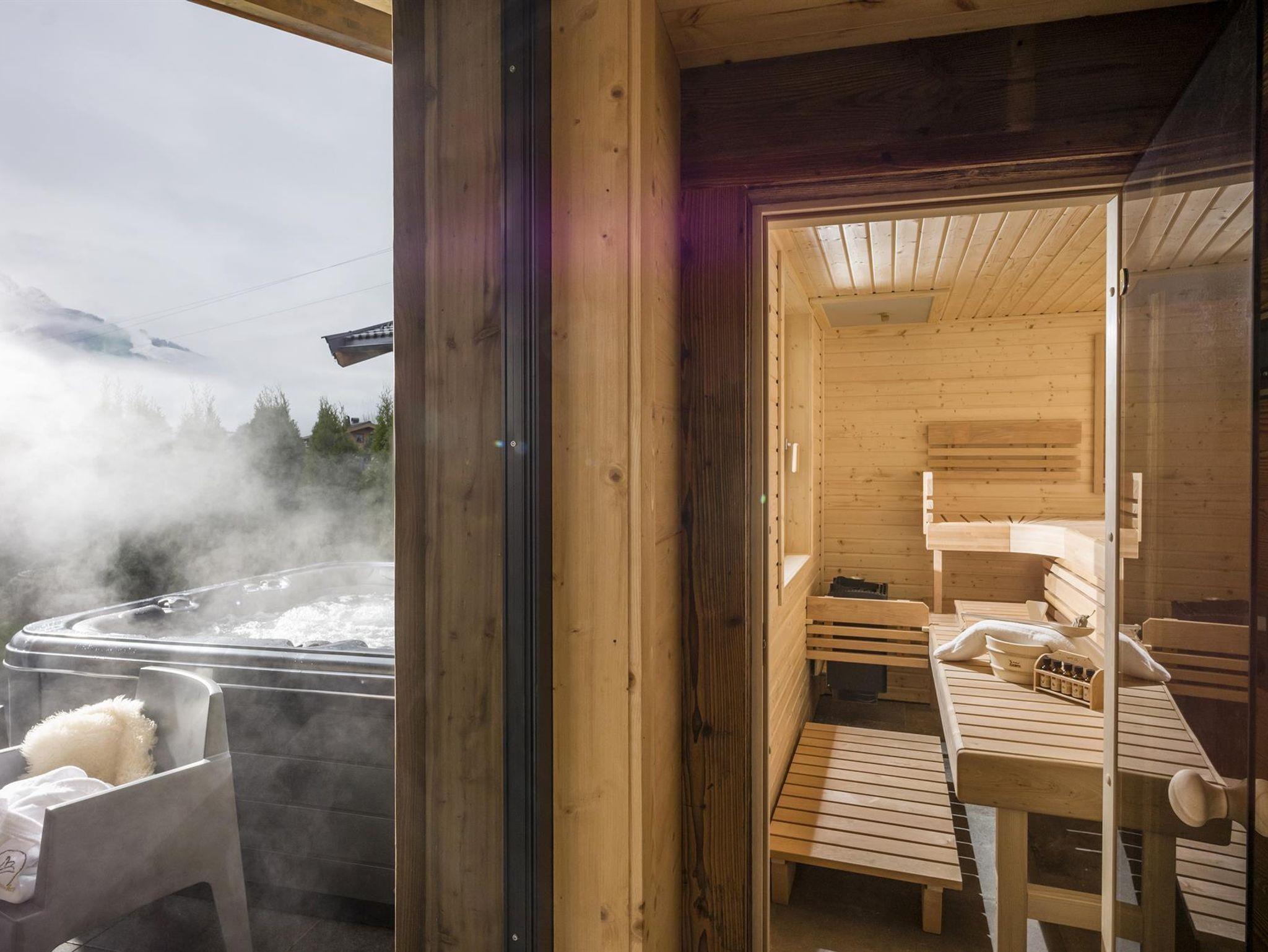 Luxus-Chalet, ca. 120 m² privatem Spa Bereich, Sauna und Außenwhirlpool. Inkl.75 m²abgeschlossenen Gartenbereich.