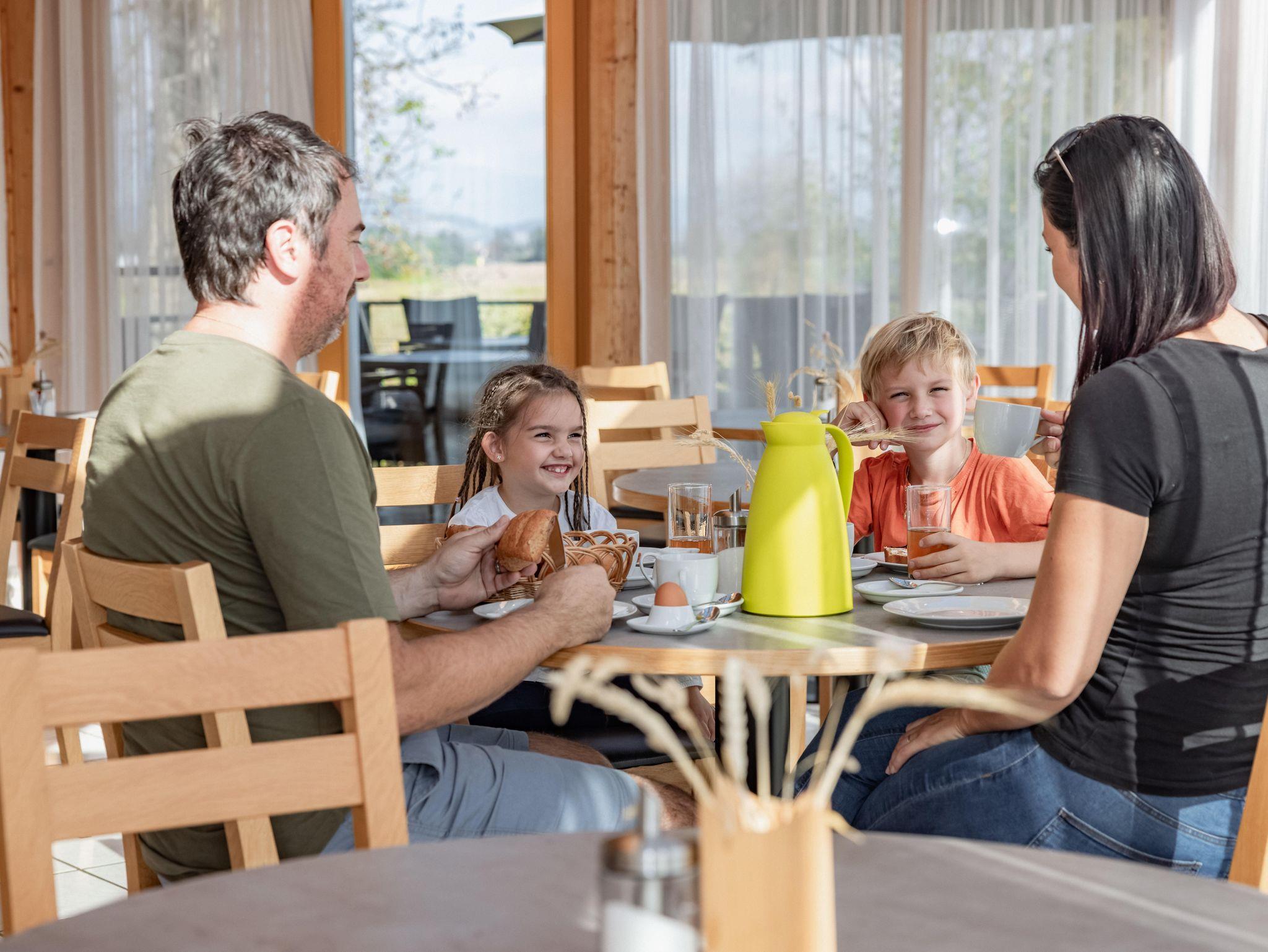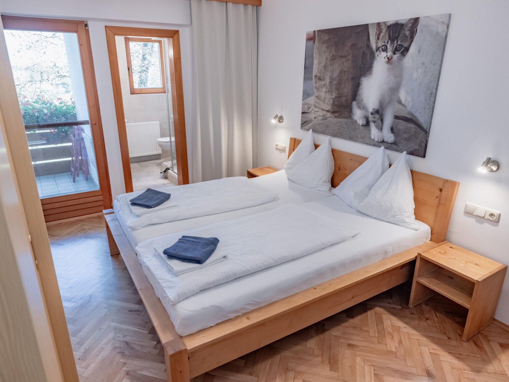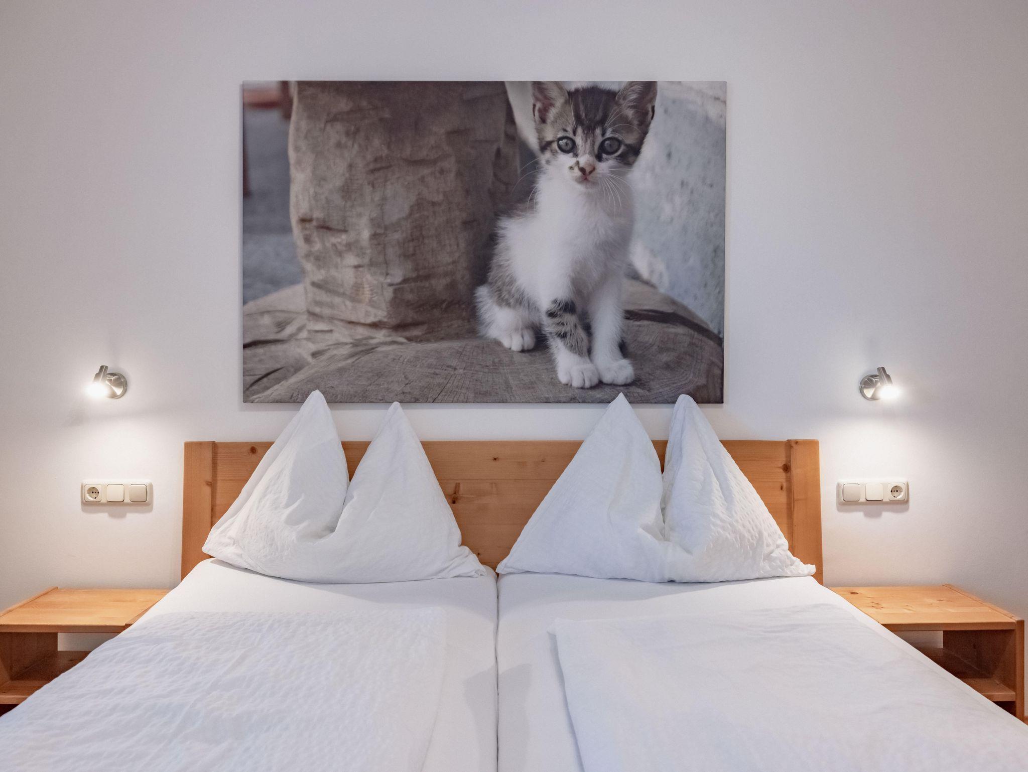 Gemütlich eingerichtetes Doppelzimmer mit DU/WC und eigenem Balkon ausgerichtet großteils Richtung Osten. Genießen Sie den Sonnenaufgang und den Ausblick auf unseren Obstgarten und die umliegenden Felder. Für unsere kleinen Gästen stehen selbstverständlich Zustellbetten zur Verfügung.