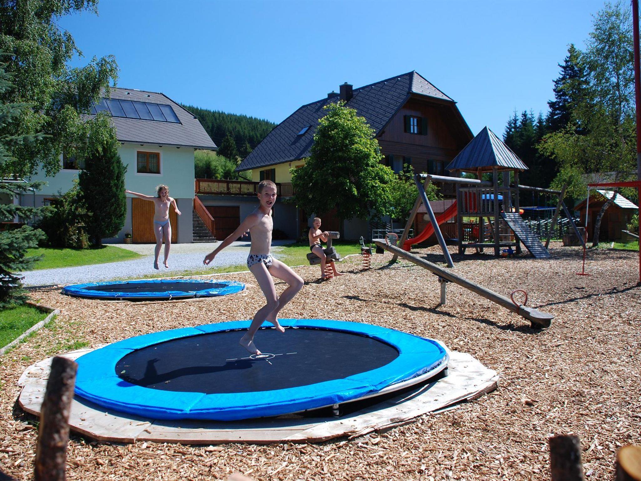 Die gemütliche Sonnenterrasse und ein großer Kinderspielplatz sind ideal für die schönen Sonnenstunden im Almenland.