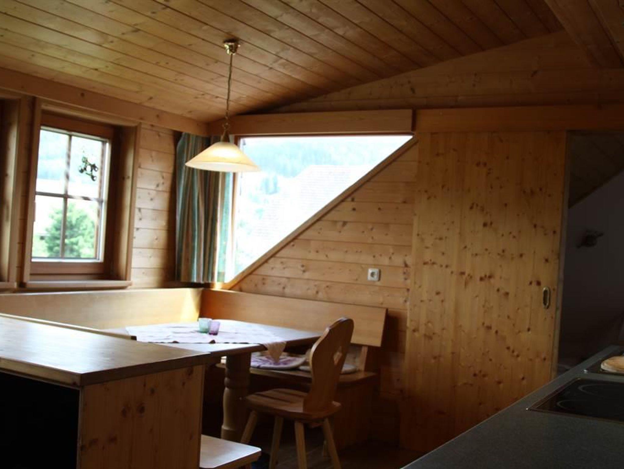 Mit viel Holz, baubiologisch eingerichtete Ferienwohnung so richtig zu Wohlfühlen. Großer Wohnraum mit Küchenzeile ( E-Herd mit 4 Platten und Backrohr, Kaffeemaschine, Kühlschrank, Geschirrspülmaschine), Essecke, gemütliche Ecke mit Sofa und Kabel-TV Stiege zur (heißgeliebten) Schlafempore wo noch für bis zu 3 Personen Platz ist. DU, WC getrennt, Balkon