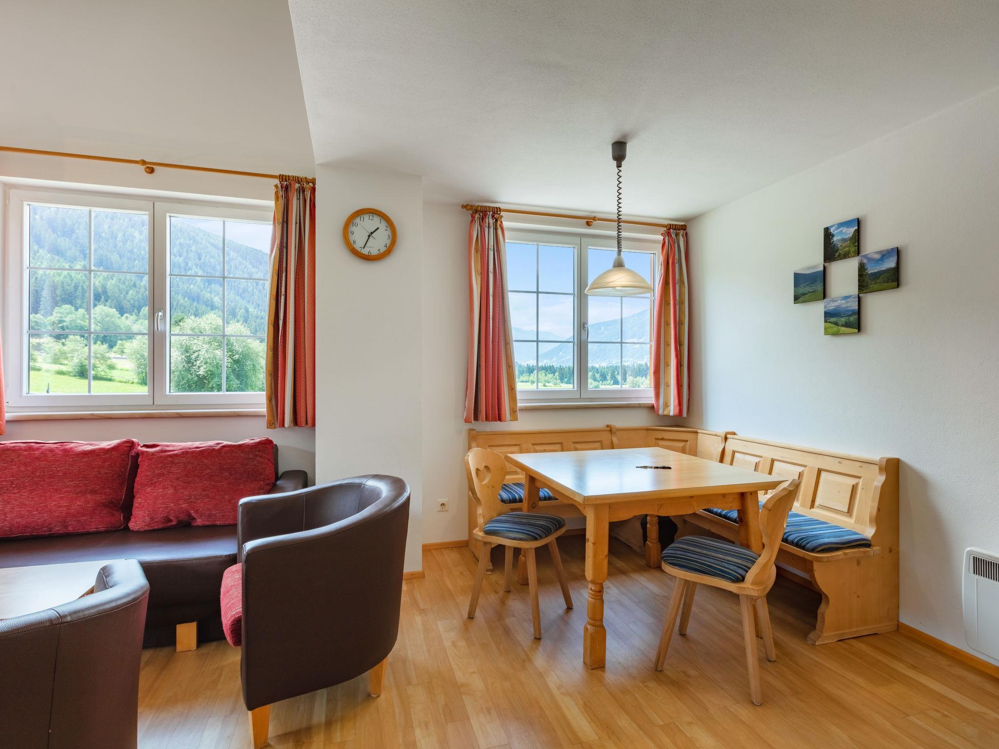 St. Margarethen: Located directly at the valley station of the Aineck-Katschberg ski area (16 ski lifts, 70km of slopes), as well as directly on the Mur Cycle Path. The snow-sure Obertauern ski area is also just a 25-minute drive away. NEW from May 2025: Mobility ticket for guests (allowing free use of all public transport in the state of Salzburg). Modern apartment block "Aineckblick". In the resort St. Margarethen, 100 m from the skiing area. In the house: storage room for bicycles, storage room for skis, central heating system, ski boot dryer. Parking at the house, public parking extra. Grocery 700 m, restaurant 300 m, bus stop 100 m, railway station "Mauterndorf" 6 km, outdoor swimming pool 5 km. Golf course (27 hole) 2 km, minigolf 5 km, riding stable 1 km, cable car, skisport facilities 100 m, ski rental, ski school, children's ski school, sled run 50 m, cross country ski track 300 m. Nearby attractions: UNESCO Biosphärenpark Lungau, Burg Mauterndorf 9.6 km, Schloss Moosham 4 km, Silberbergwerk Ramingstein 24 km. Well-known ski regions can easily be reached: Aineck-Katschberg 100 m, Grosseck-Speiereck 5 km, Obertauern 25 km. Well-known lakes can easily be reached: Prebersee 13 km, Millstätter See 50 km. Hiking paths: Katschberg/Aineck, Riedingtal, Lessachtal. Free ski bus service to the ski region Großeck -Speiereck, Fanningberg and Obertauern. Please note: Additional accommodations can be booked.