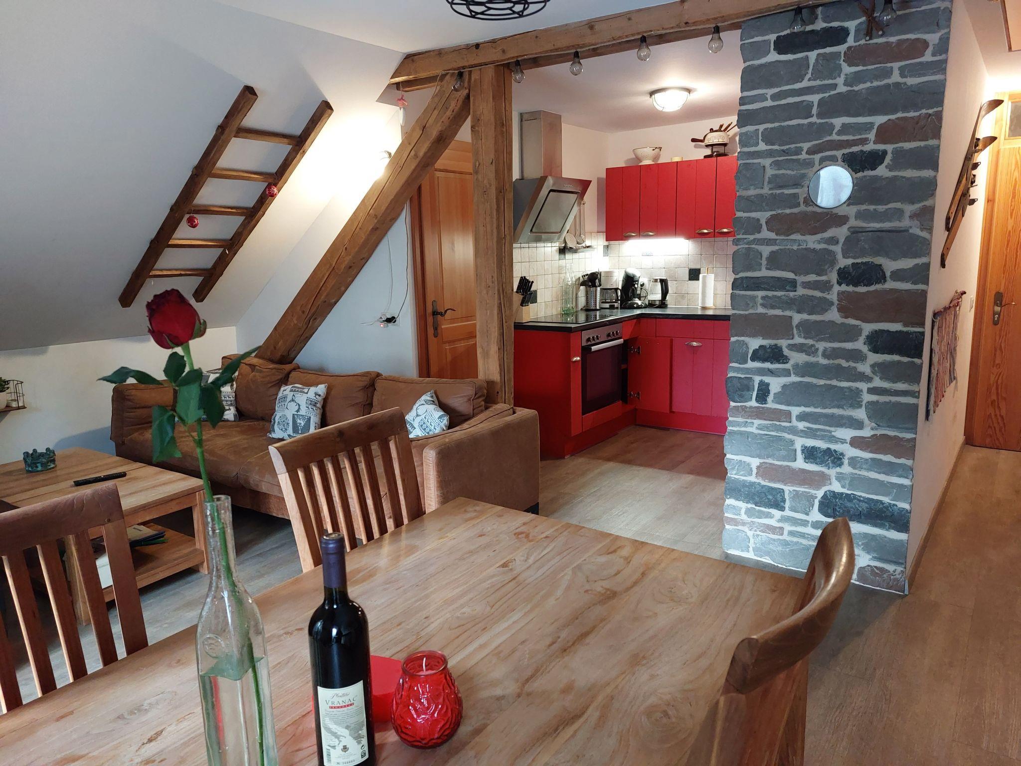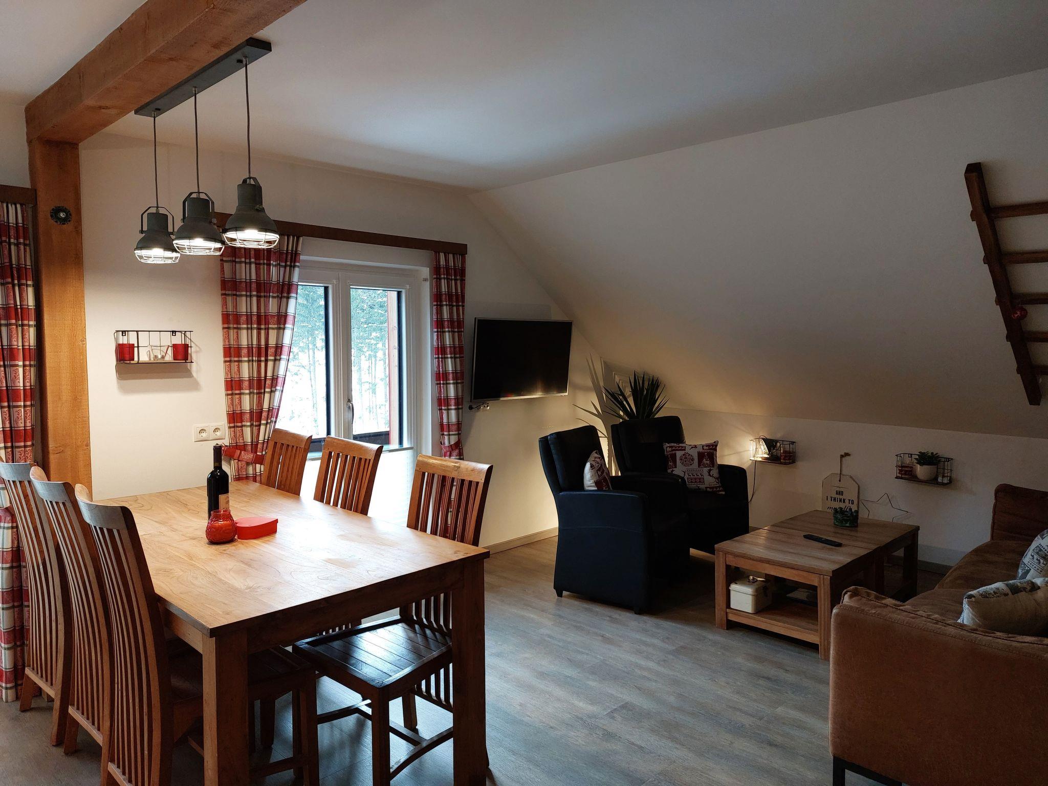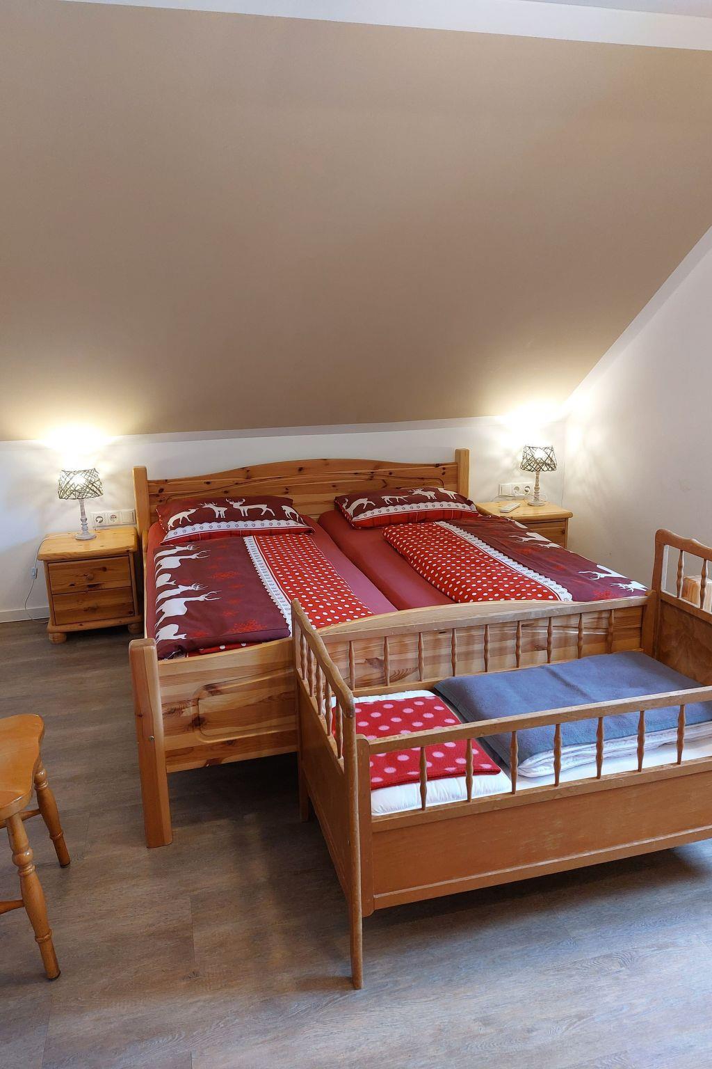 The holiday flat on the top floor is equipped with everything you need for a relaxing stay: a living room with satellite TV and balcony, a fully equipped kitchen with microwave, dishwasher, kettle and a Senseo coffee machine. There is also a double room with bunk beds, two further double rooms with satellite TV, two bathrooms (shower/WC) and an anteroom. Underfloor heating and a ski and ski boot drying facility in the house provide additional comfort.