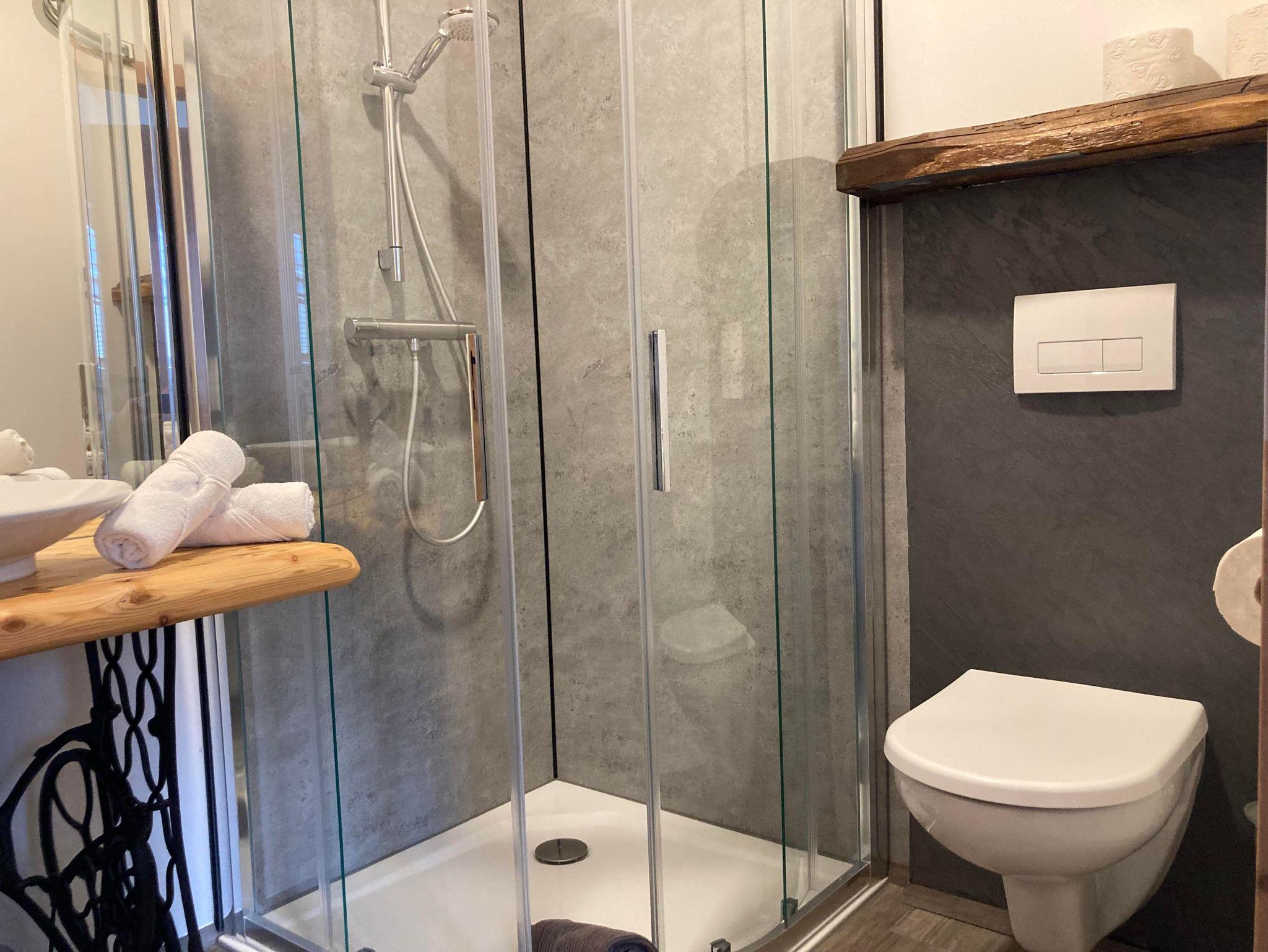 Für zusätzlichen Kompfort verfügt das Zusatzzimmer über ein eigenes Badezimmer mit WC und Dusche, Handtüchern, Handtuchtrockner und Föhn.