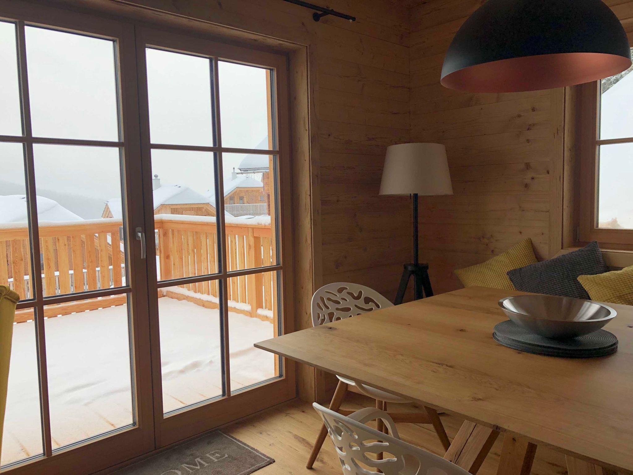 Freuen Sie sich auf eine stilvolle Almhütte mit Charme, modernster Ausstattung und viel Komfort direkt an der Skipiste.
