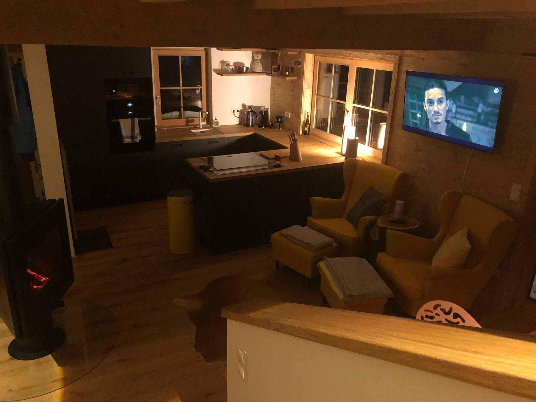 Nach einem erlebnisreichen Tag entspannen Sie auf der 30m² großen Terrasse mit Grillplatz und Blick auf die Berge, vor dem 360° Sichtkamin oder in der hauseigenen Sauna.