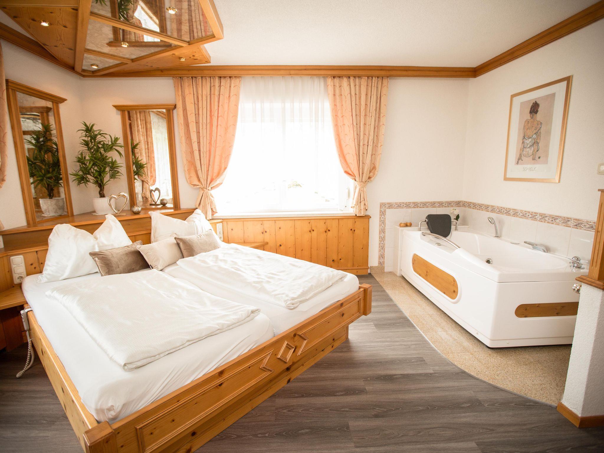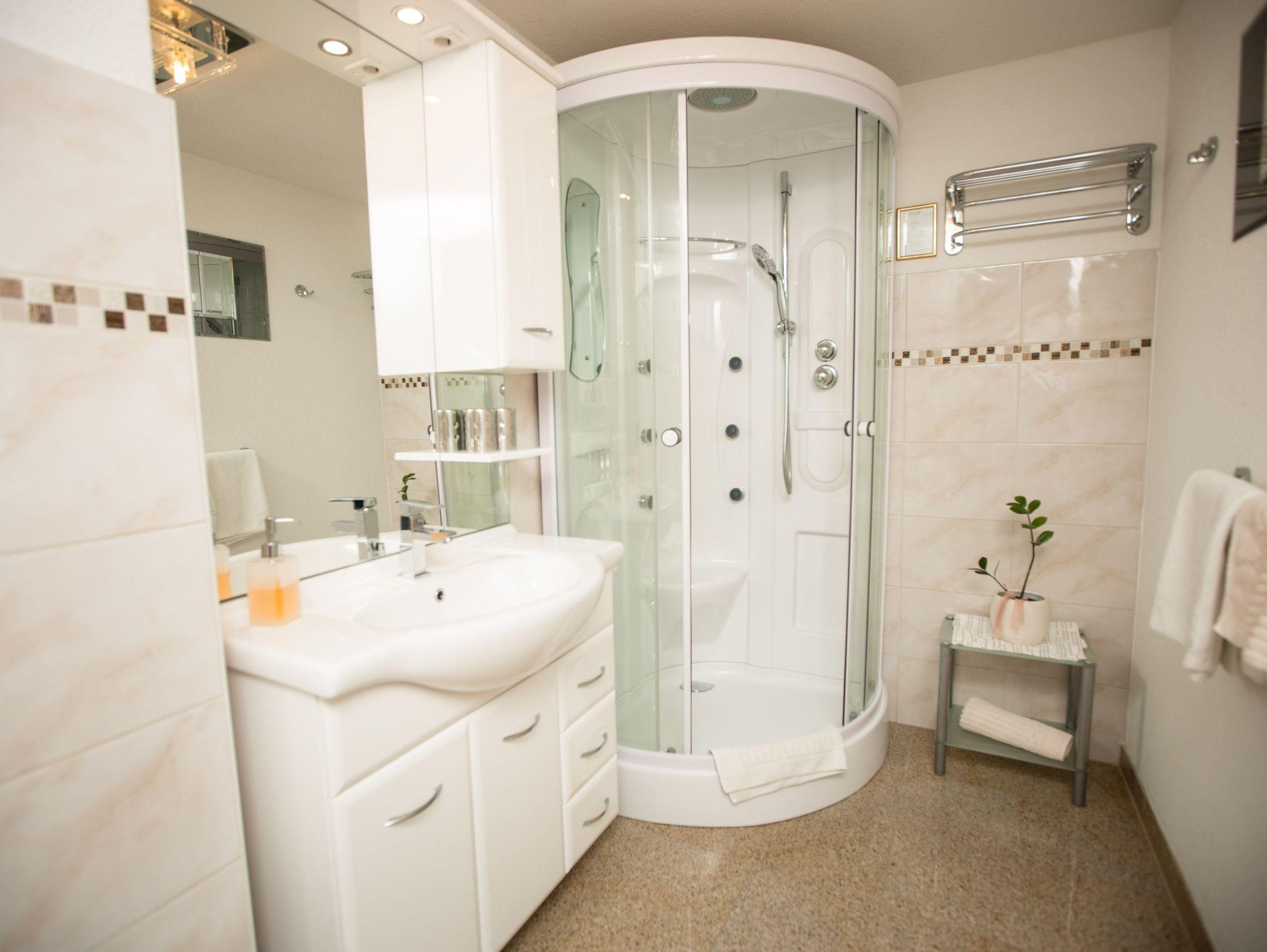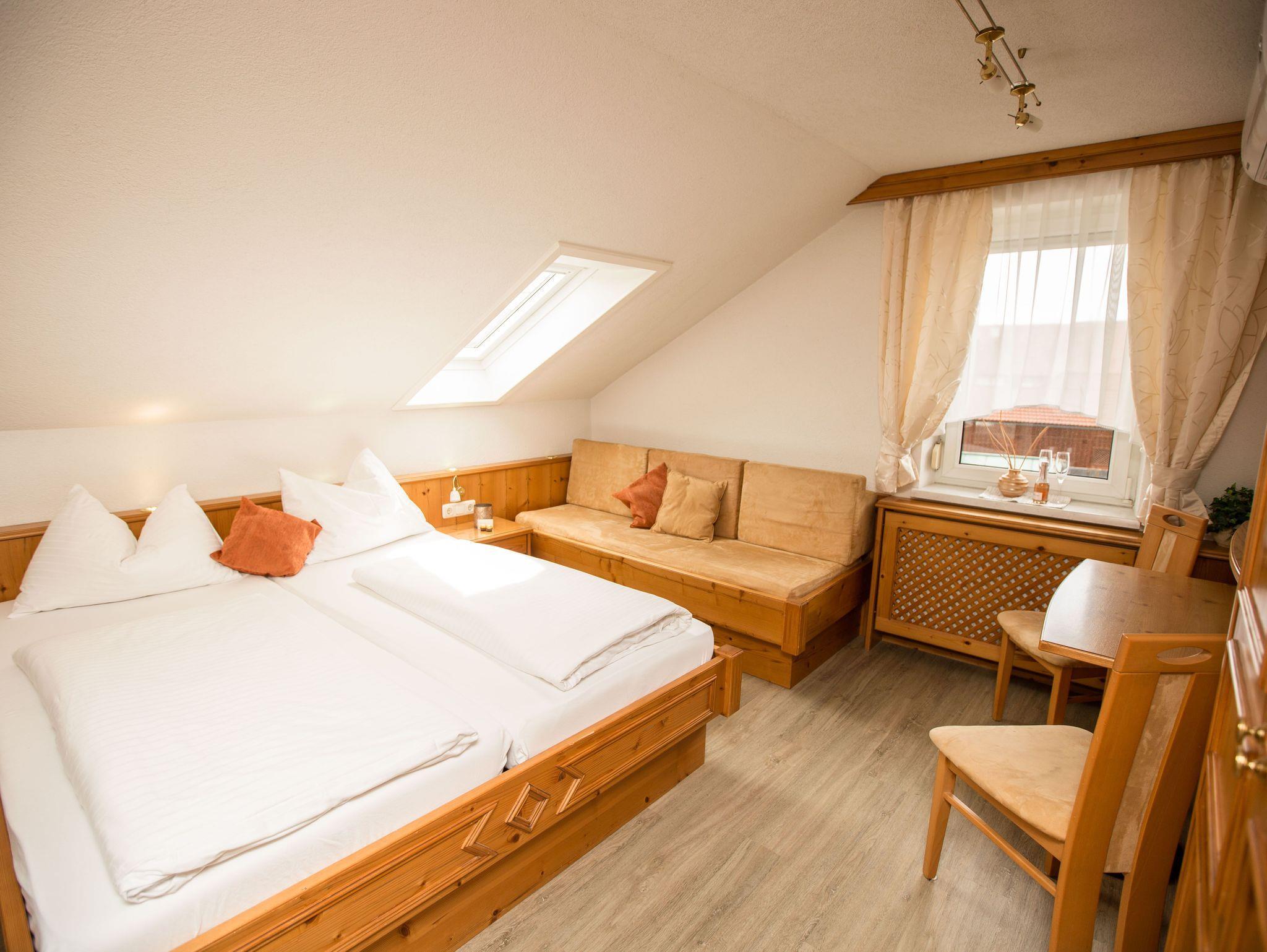 Unsere 4 de luxe Zimmer sind sehr stilvoll ausgestattet. Die Zimmer verfügen teilweise neben dem Doppelbett auch über eine gemütliche Sitzcouch zum Entspannen (als 3. Bett geeignet). Ein Flat-Screen oder Kabel-TV sowie W-Lan Anschluss und Klimaanlage runden das Angebot ab. Badezimmer mit DU, Waschbecken, WC und Fön.