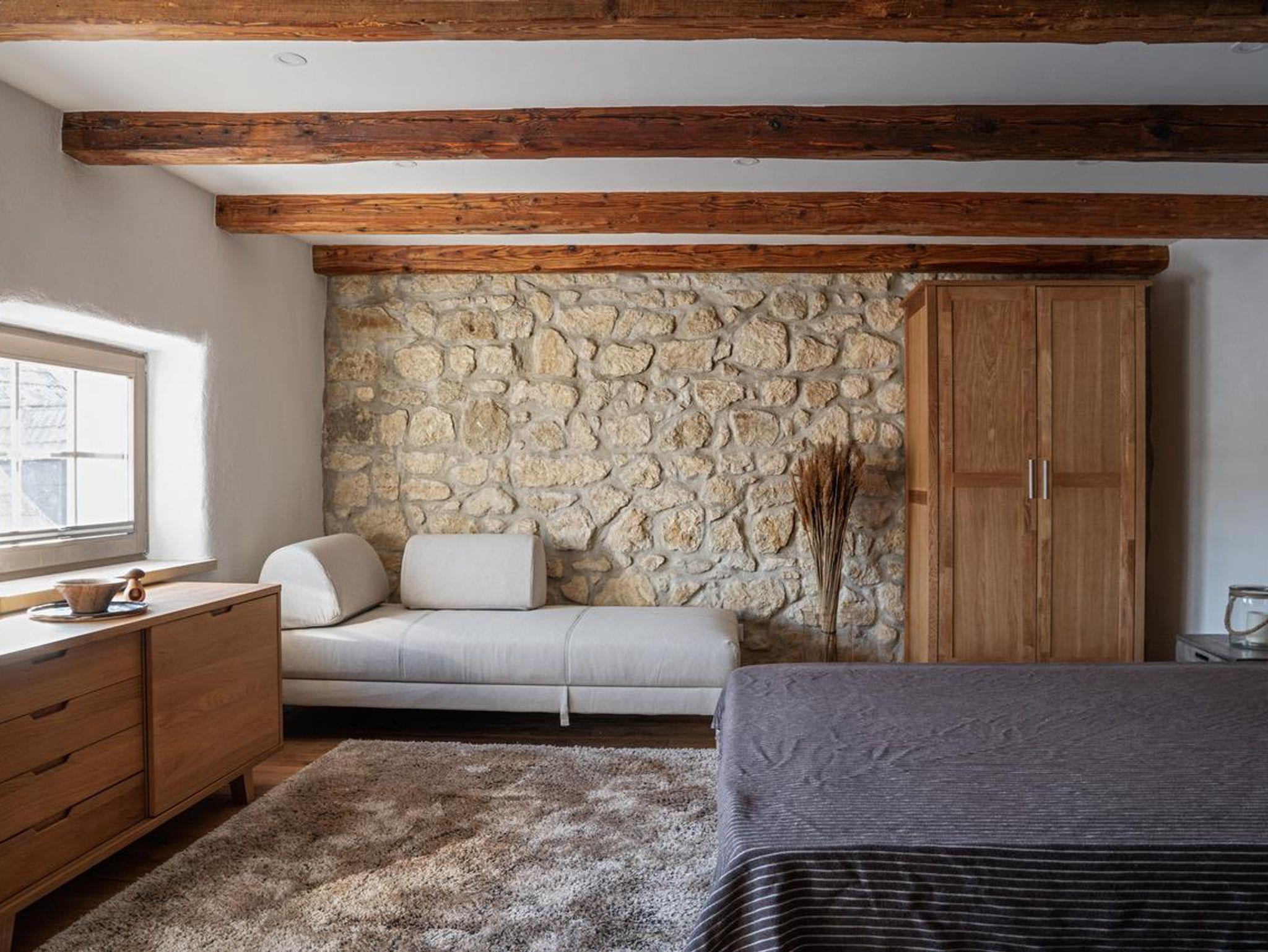 Das sorgfältig renovierte, geschmackvoll und hochwertig ausgestattete Presshaus ruft Erinnerungen an die Ursprünge der burgenländischen Weinproduktion wach. Hier, wo romantische Weinbaugeschichte auf modernen Zeitgeist trifft, lässt sich jeder Urlaubstag mit allen Sinnen genießen. Der Blickfang im Eingangsbereich des Hauses ist die über 100 Jahre alte Weinpresse und ein Panoramakamin. Die Wohnküche mit integriertem Aufenthaltsraum sowie die Terrasse mit Freiküche und Sitzgelegenheit laden zu gemütlichen Beisammensein ein. Das Presshaus bietet auf seinen 140m² Platz für ein bis acht Personen.