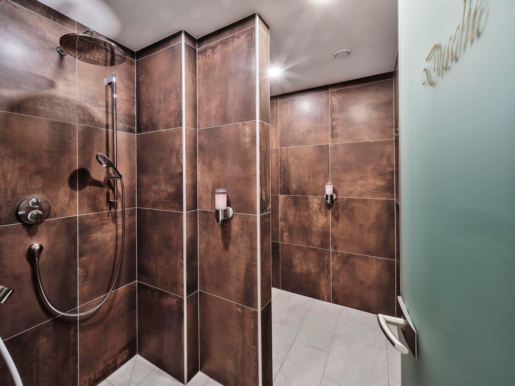 Saunalandschaft mit Almsauna, Kristalldampfbad, Infrarotlounge, Erlebnisduschen, Ruheraum und Tee-Eck (täglich von 15:00 Uhr - 18:30 Uhr).