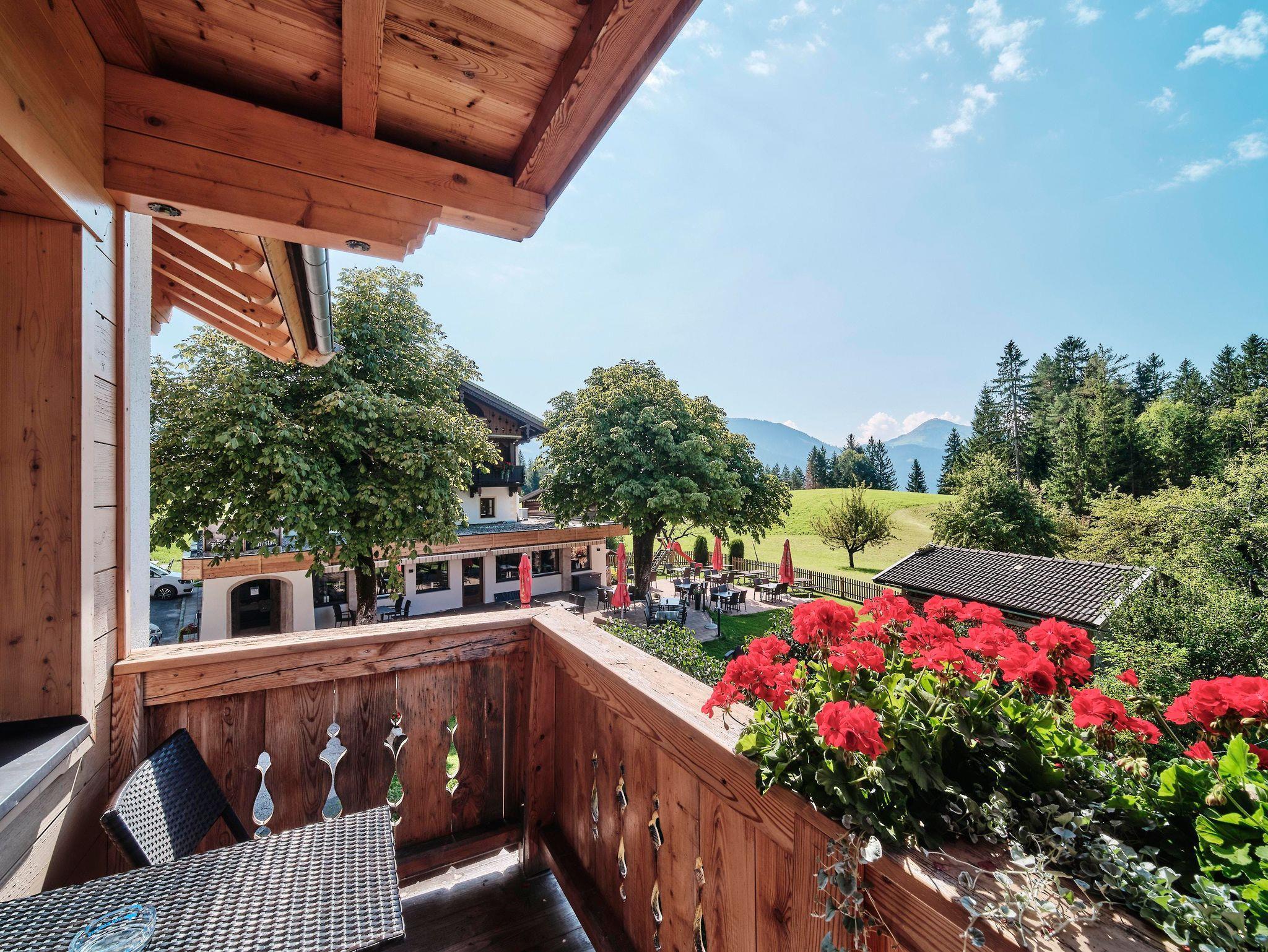 Studio mit Doppelbett, 1 Einzelbett und 1 Doppelcouch ca. 54 m², Bettwäsche, Sitzgruppe und Wohnlandschaft, Küchenzeile, Bettdecken & Polster für Allergiker, Flat-SAT-TV mit Radio, W-LAN, Laminatboden, Dusche/WC, Handtücher, Handtuchtrockner, Haartrockner, Toilettenartikel, Kosmetikspiegel, Bodenheizung, Safe. Für 2-5 Gäste geeignet. Bergpanorama Wilder Kaiser, Südseite mit Terrasse.