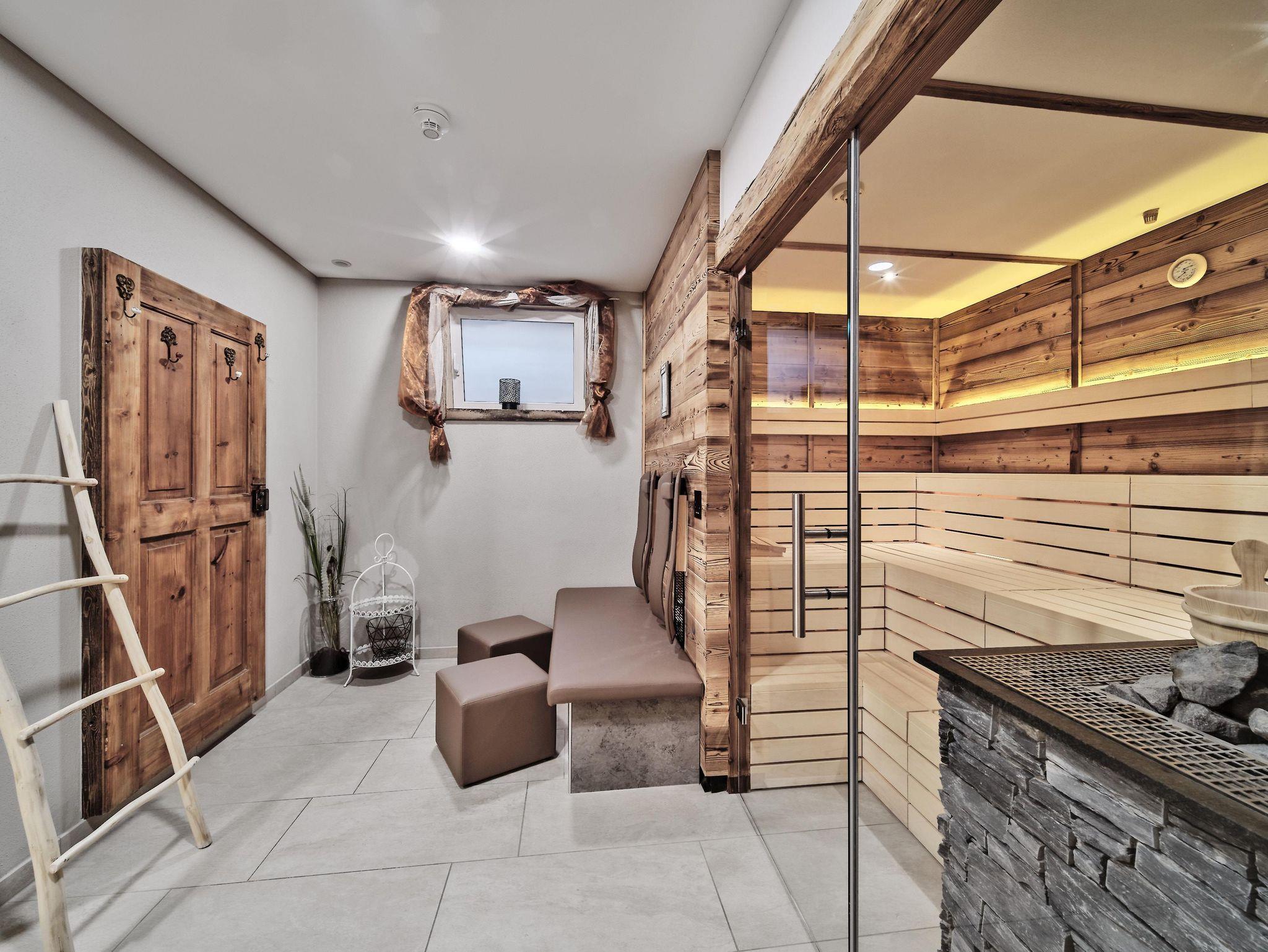 Saunalandschaft mit Almsauna, Kristalldampfbad, Infrarotlounge, Erlebnisduschen, Ruheraum und Tee-Eck (täglich von 15:00 Uhr - 18:30 Uhr).