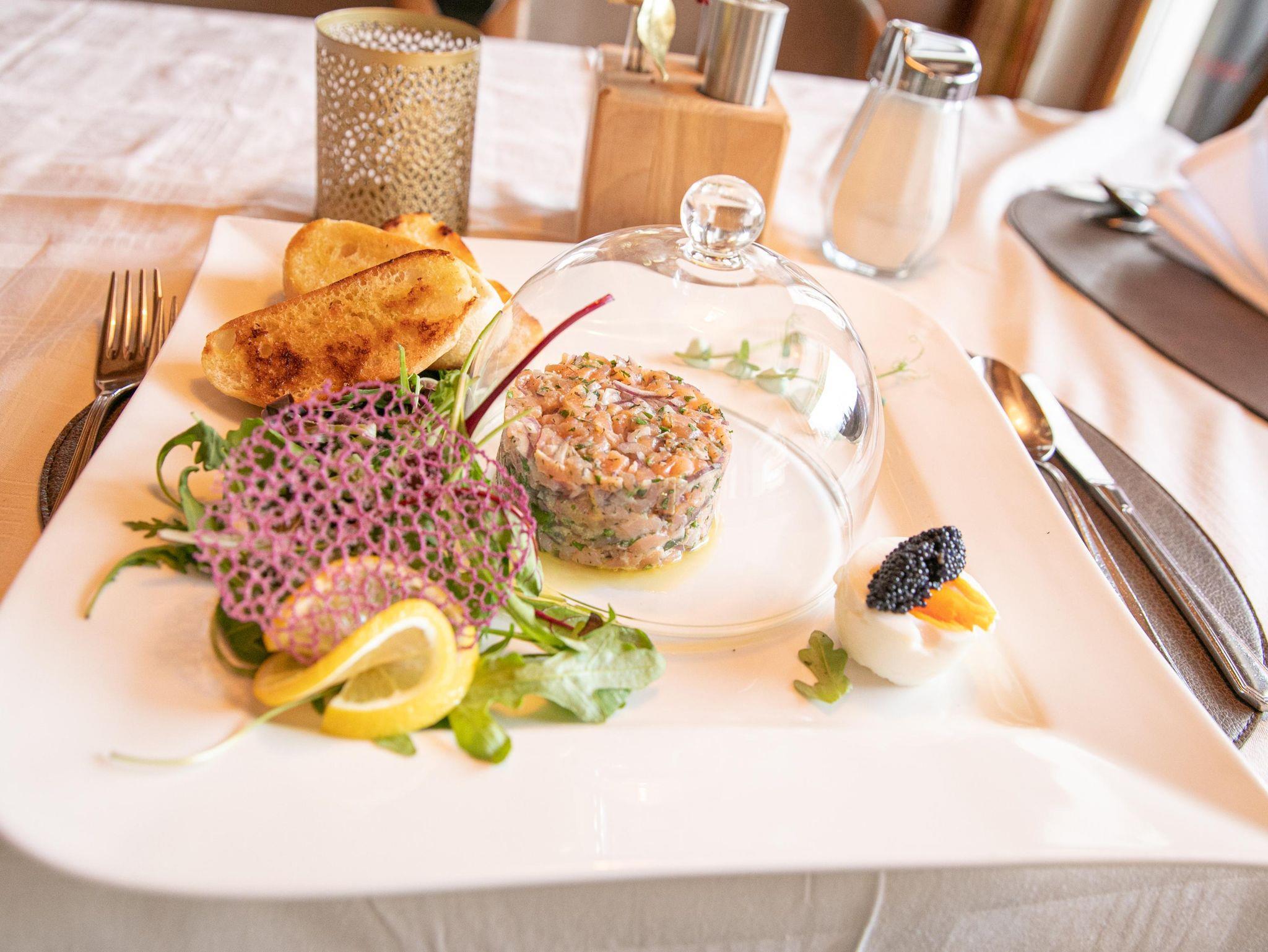 Frühstück in Buffetform und Halbpension bestehend aus Wahlmenü. Silvestermenü und Weihnachtsmenü sind in den Preisen inkludiert.