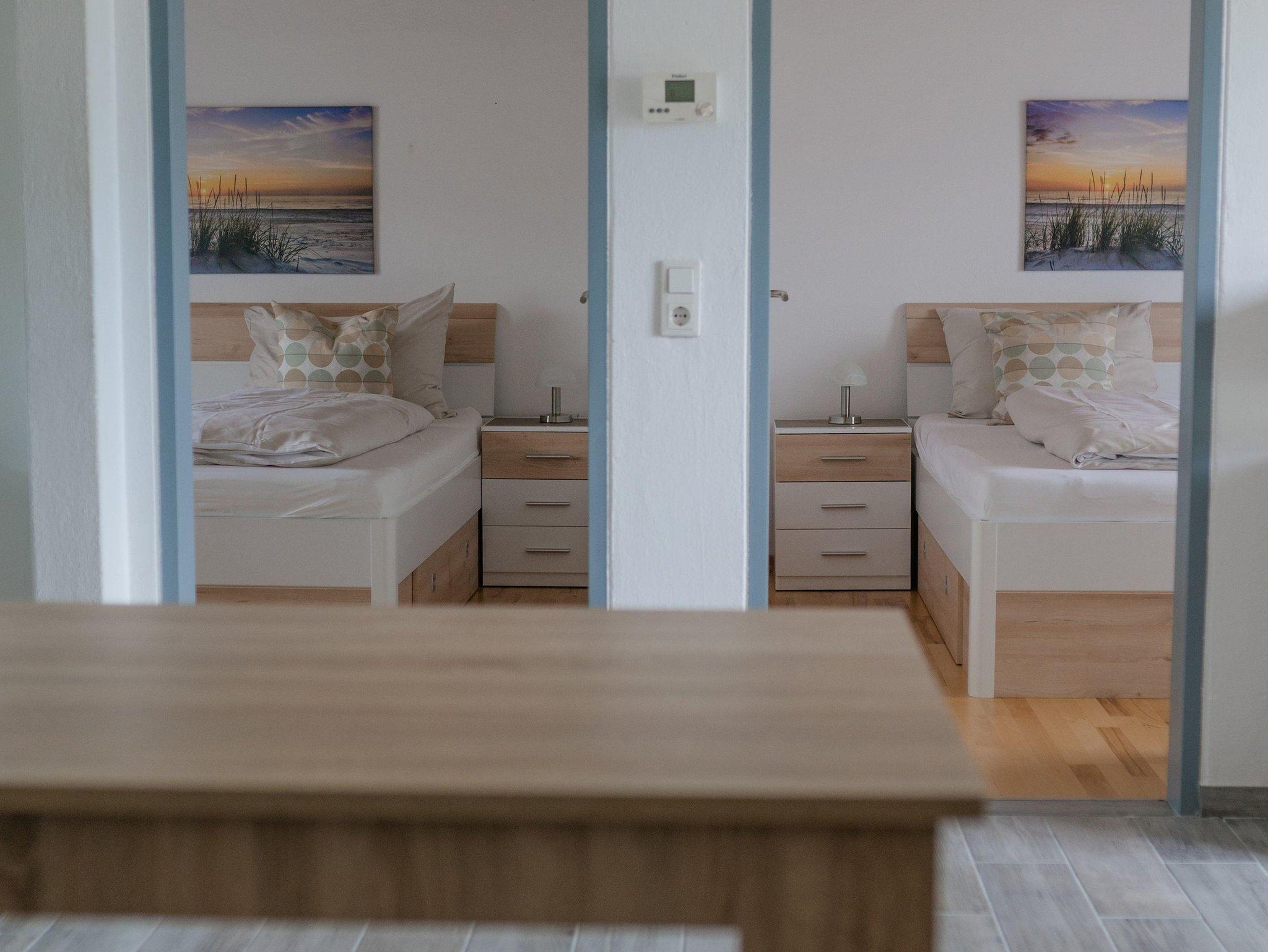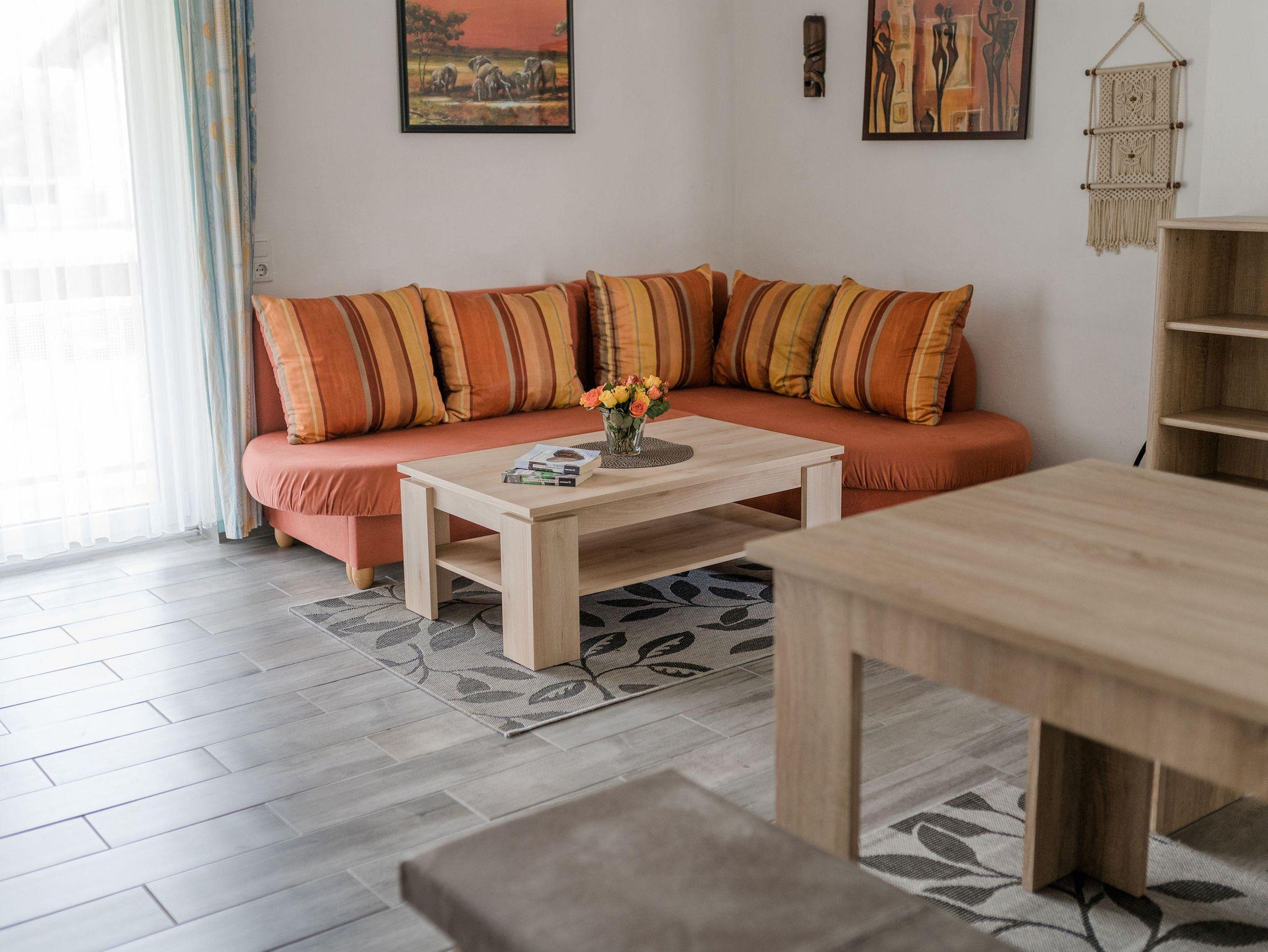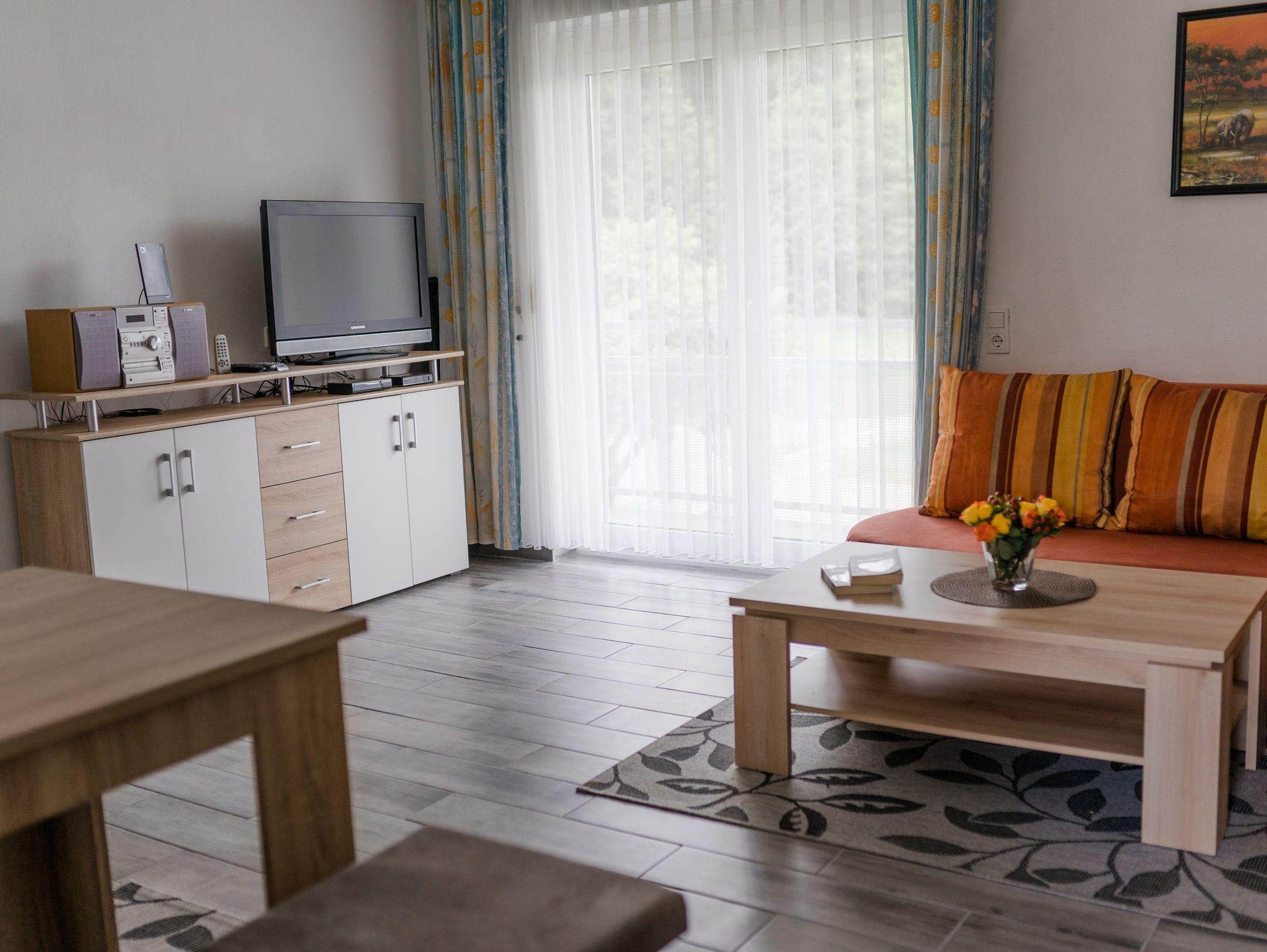 60 m2 Die Ferienwohnung hat zwei getrennte Schlafzimmer, ein gemütliches Wohnzimmer mit Essbereich, SAT-TV, Radio, Kochnische, Mikrowelle, Kühlschrank, Minibackofen, Kaffeemaschine, Wasserkocher, Koch- und Essgeschirr, Vorraum mit Garderobe, WC, Dusche und einen großen Balkon.