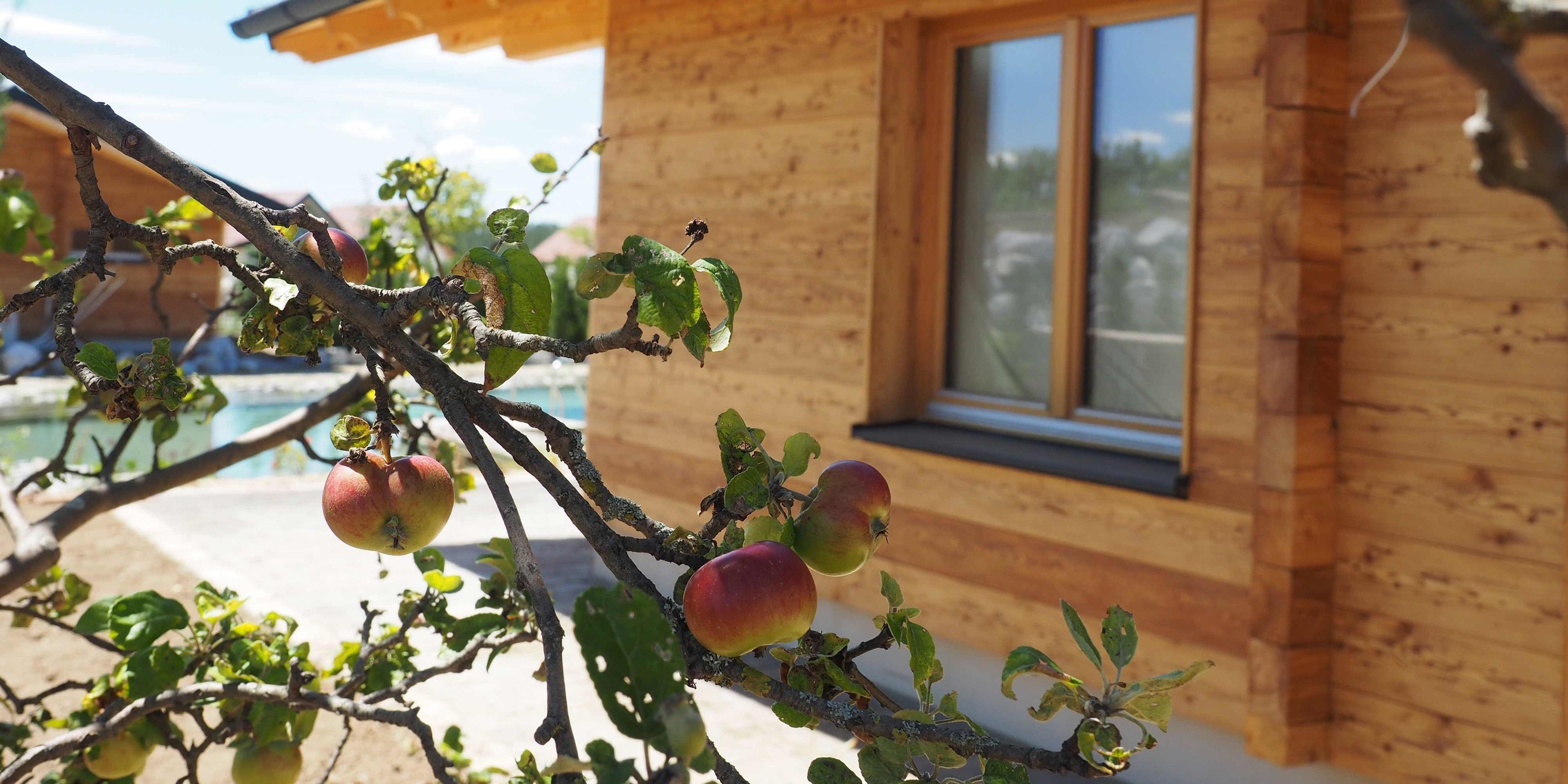 Die Landhäuser aus österreichischem Massivholz versprühen alpinen Charme. Das wohlige Gefühl des Holzes wird durch die angenehmen Farben weiter vertieft. Hier können bequem 4 Erwachsene ihren Urlaub genießen. Unsere Landhäuser bieten einen 43 Zoll TV, zwei Schlafzimmer mit Doppelbett, sowie zwei Bäder mit Regendusche und Toilette. Eine Küche mit 4 flammigen Herd, Mikrowelle mit Heißluft und Grillfunktion, Kühlschrank samt Gefrierfach, Geschirrspüler, Kaffeemaschine, Wasserkocher, hochwertigem Geschirr, Weingläsern ausgestattet lädt zum gemeinsamen Kochen ein. Natürlich sind unsere Landhäuser voll klimatisiert. Der private Garten bietet viel Platz zur Erholung und Entspannung. Wer möchte, kann hier seinen grünen Daumen beweisen. Unsere GärtnerInnen geben gerne hilfreiche Tipps und Sie können diese auch gemeinsam in die Tat umsetzen. Entspannen Sie in der privaten Sauna oder in der heiße Badewanne unter freiem Himmel. Oder genießen Sie einfach auf der Terrasse die wärmenden Sonnenstrahlen, grillen gemeinsam und lassen Ihren Blick über den Gartensee hinein ins weite Land Niederösterreich schweifen, wo sich Stift Göttweig und der Ötscher von ihrer schönsten Seite zeigen