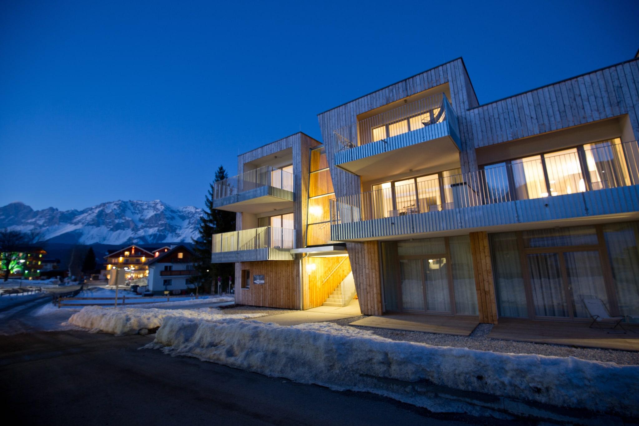 "Velkommen til ditt ideelle tilfluktssted i Alpenrock Schladming! Denne sjenerøse 90 m² store leiligheten har plass til opptil 6 gjester, og tilbyr en perfekt blanding av moderne komfort og fantastisk naturskjønnhet i Schladming-Dachstein-regionen. Nyt den vakre 35 m² møblerte terrassen, en ideelt sted for å slappe av og nyte de pittoreske omgivelsene. Leiligheten ligger kun 200 meter fra skibakken, og tilbyr enkel tilgang til vintersport og utendørsaktiviteter. Leiligheten har to koselige soverom, hvert innredet med en komfortabel dobbeltseng for å sikre en god natts søvn. I tillegg gir en dobbel sovesofa i stuen ekstra soveplass. Det stilige badet har badekar, perfekt for å slappe av etter en dag med eventyr. Det åpne kjøkkenet er fullt utstyrt for å imøtekomme alle dine kulinariske behov, inkludert en keramisk kokeplate, stekeovn, oppvaskmaskin og kjøleskap med fryserom. Essensielle kjøkkenutstyr som bestikk, kokekar, brødrister, vannkoker og kaffemaskin tilbys også. Ved ankomst vil et lite startsett være klart, inkludert oppvaskmaskinfaner, oppvaskmiddel, en svamp, søppelsekker, en rengjøringsklut og et kjøkkenhåndkle. Hovedbygningen har også et velværeområde med badstue og avslapningsrom, samt et fellesrom for sosialt samvær. Gratis Wi-Fi og satellitt-TV er inkludert for å holde deg tilkoblet og underholdt.