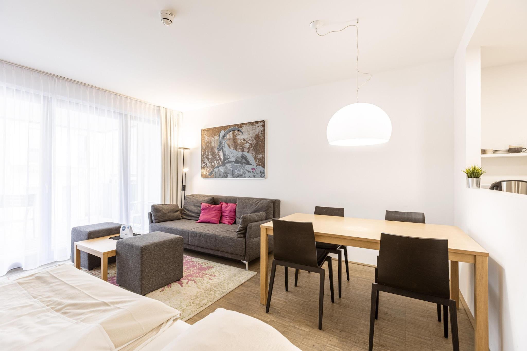 "Velkommen til ditt stilige tilfluktssted på Alpenrock Schladming! Denne moderne leiligheten på 67 m² har plass til opptil 6 gjester, og tilbyr en blanding av moderne bekvemmeligheter og alpin sjarm i den fortryllende Schladming-Dachstein-regionen. Et av høydepunktene i denne leiligheten er det møblerte taket terrasse, som tilbyr et perfekt sted for å nyte den fantastiske utsikten over det omkringliggende landskapet eller slappe av i den friske alpine luften. Leiligheten har en praktisk beliggenhet kun 200 meter fra skibakken, og gir enkel tilgang til vintersport og utendørsaktiviteter. Leiligheten har to innbydende soverom, hvert innredet med en komfortabel dobbeltseng for å sikre en god natts søvn. For ekstra overnatting er en dobbel sovesofa tilgjengelig i den romslige stuen. Det veldesignede badet har badekar, perfekt for å slappe av etter en aktiv dag på fjellet. Gå inn i det fullt utstyrte åpne kjøkkenet, hvor du finner alt du trenger for å tilberede måltider, inkludert en keramisk kokeplate, stekeovn, oppvaskmaskin og kjøleskap med fryserom. Viktige kjøkkenverktøy som bestikk, kokekar, brødrister, vannkoker og kaffemaskin er tilgjengelig Ved ankomst finner du et lite startsett som inkluderer oppvaskmaskinfaner, oppvaskmiddel, en svamp, søppelsekker, en rengjøringsklut og et kjøkkenhåndkle for din bekvemmelighet. Hovedbygningen har et velværeområde med badstue og hvilerom og fellesrom for sosialt samvær. Gratis Wi-Fi og satellitt-TV er inkludert for å holde deg tilkoblet og underholdt under hele oppholdet. Vær oppmerksom på at alle bildene er eksempelbilder, siden hver leilighet er unikt innredet for å tilby en personlig opplevelse."