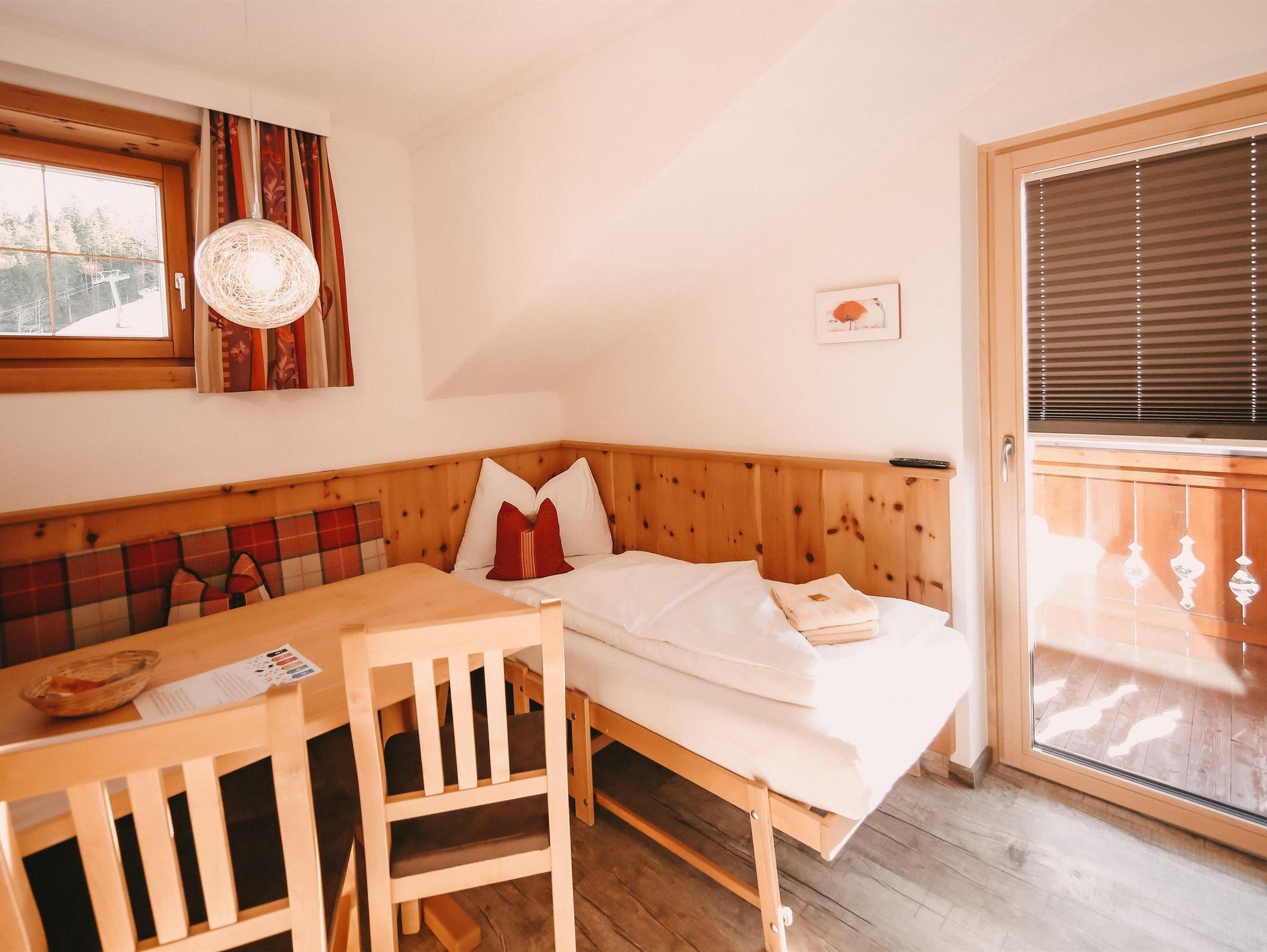 unser kleinstes Appartement im Appartementhaus mit Doppelzimmer, einer gemütlichen Küche mit Esstisch und Einzelsofa. Gerne wird das Appartement als Doppelzimmer genutzt, aber auch zu dritt findet man hier Platz. Der Balkon nach Süden lässt die Sonne durch die Räume fluten.