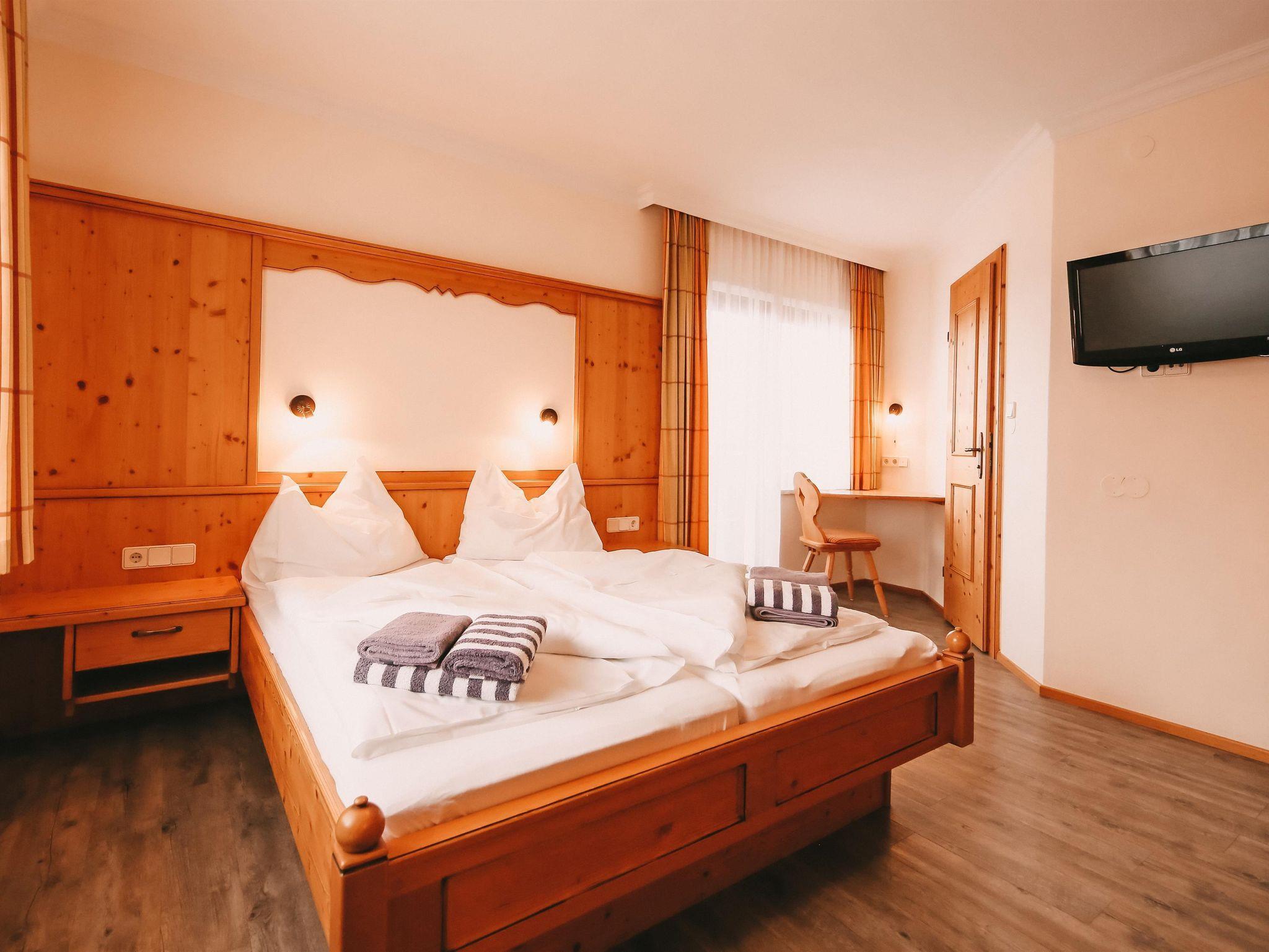 traditionelles Doppelzimmer im Stammhaus mit Balkon, Dusche und WC.