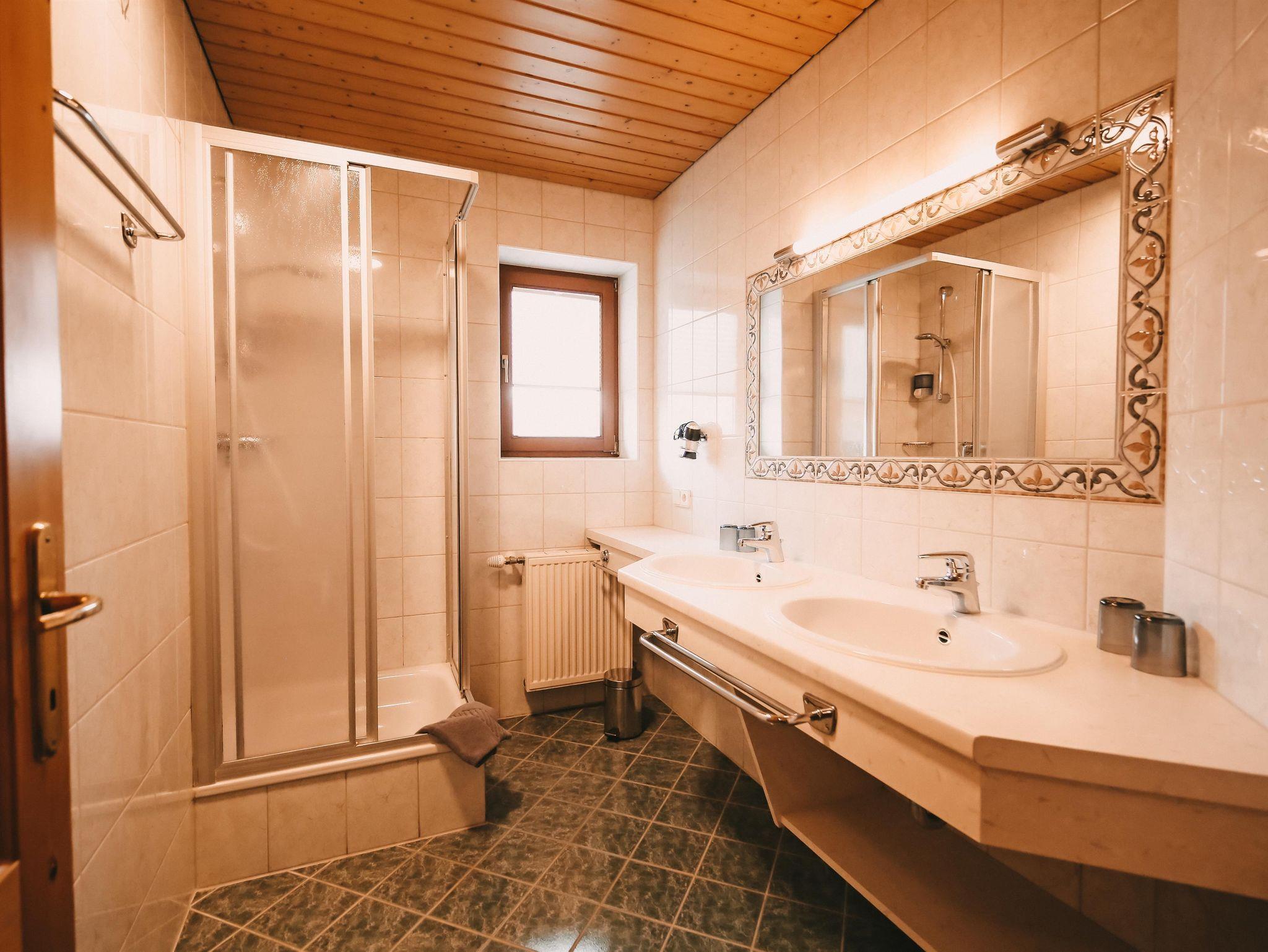 geräumiges Appartement im Stammhaus, Schlafzimmer mit Doppelbett und Einzelsofa. Wenn man das Sofa im Wohnraum mitbenützt, bietet das Silberkar platz für bis zu 5 Personen. Der Ausblick vom großzugigen Balkon (20m²) schenkt einen herrlichen rundumblick auf das Dachsteinmassiv.