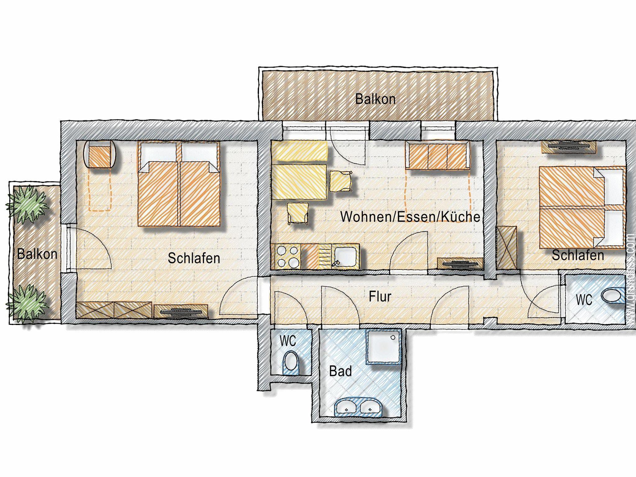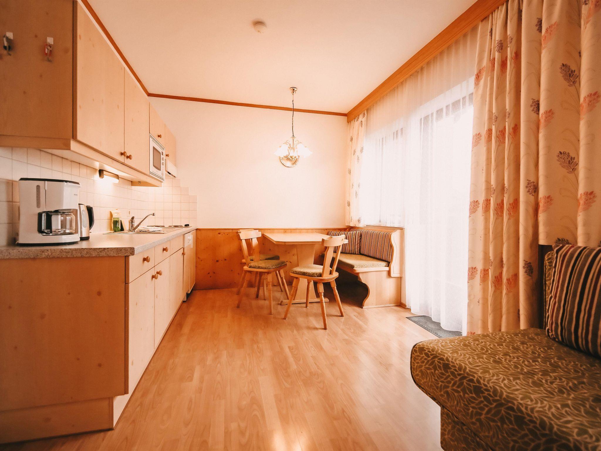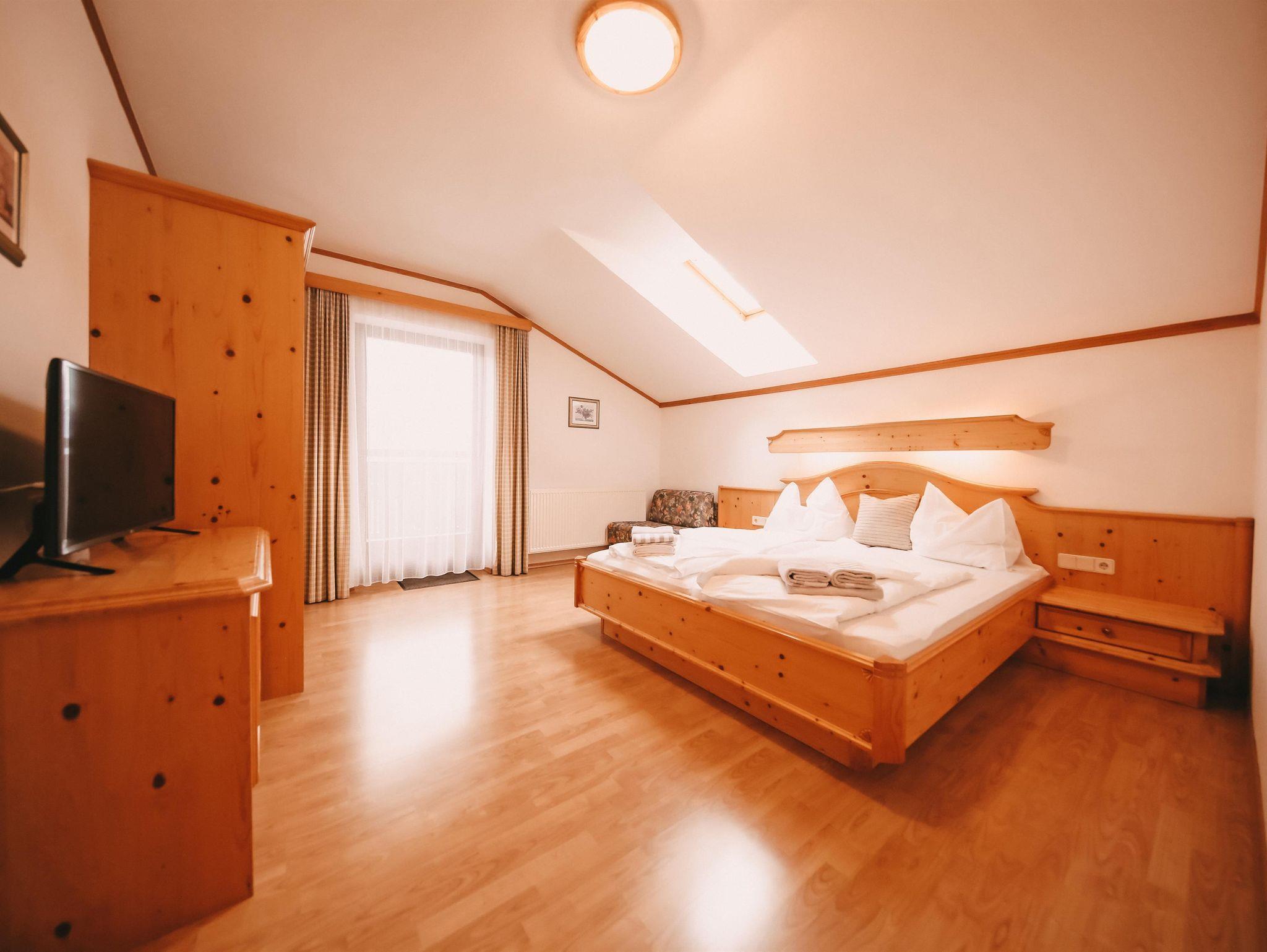 geräumiges Appartement im Stammhaus mit zwei Doppelzimmern. Wenn man das Sofa in der Wohnküche mitbenützt, bietes das Krahbergzinken platz für bis zu 6 Personen. Ein Zusatbett in einem der Schlafzimmer ist auch noch möglich. Die zwei Balkone bieten einerseits einen wunderbaren Ausblick zu den Bergketten im Osten und andererseits nach Süden ins Grüne und lässt die Sonne ins Zimmer scheinen.